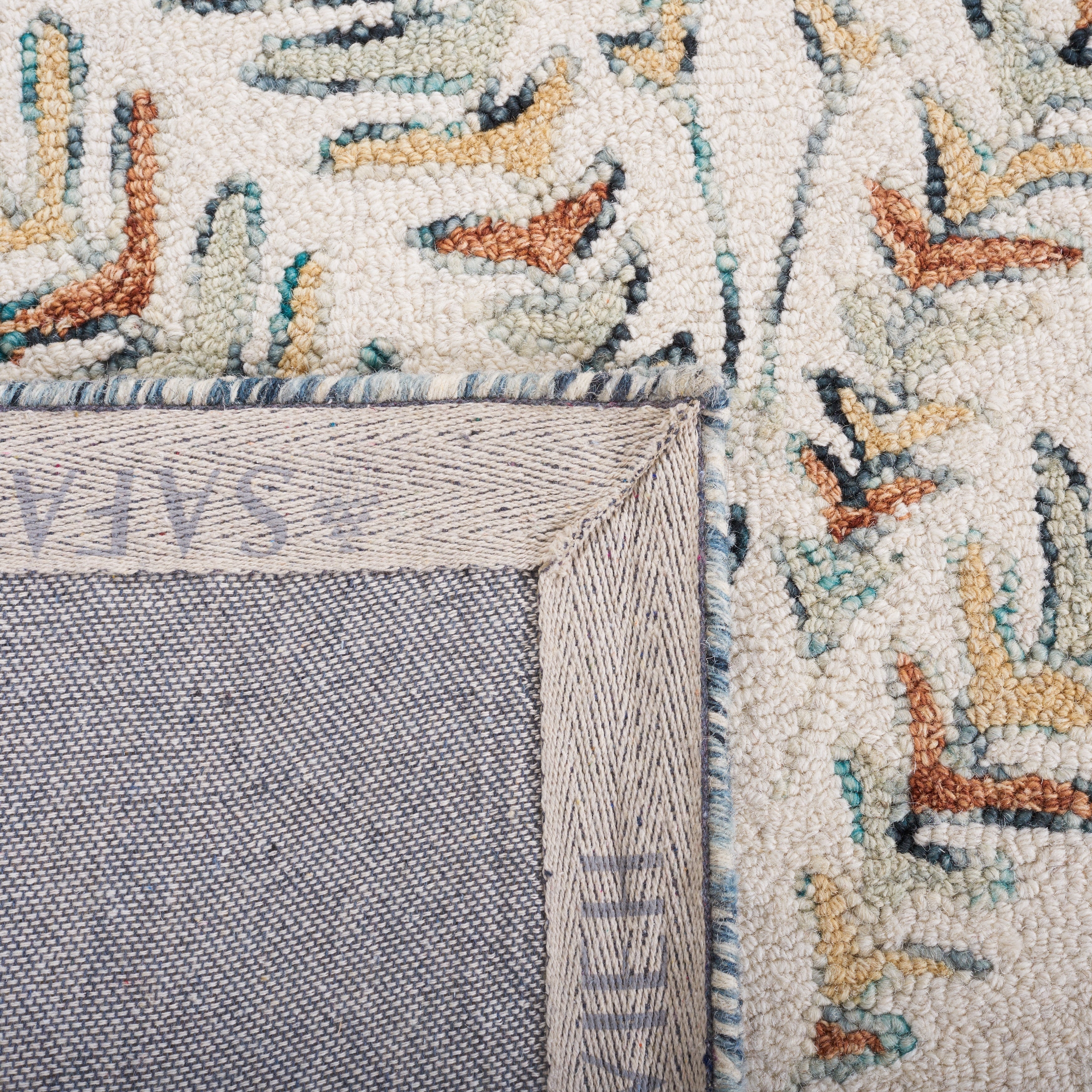 Elevate your living space with the exquisite craftsmanship of our Hand-Tufted Wool Area Rug from India. This luxurious 10' X 14' large rectangle rug, boasting a pile height of 1/4', combines timeless floral elegance with contemporary style to create a focal point in any room. ���Inspired by nature's own artwork, the rug features a serene ivory base color, blossoming with a delicate pattern of blue leaves that bring a touch of tranquility and sophistication. Made with the finest wool, this hand-tufted rug ensures a soft, plush texture that is both comfortable underfoot and durable for high-traffic areas. ���Designed to complement a variety of decor styles, the rug's floral design is versatile and offers an organic aesthetic that will harmonize with both modern and traditional interiors. The pattern in the image showcases the intricate detailing and color palette that you can expect in your own rug, making it not just a floor covering but a piece of art for your home. ���Whether gracing your living room, dining area, or bedroom, this wool area rug is a testament to skilled craftsmanship and elegant design, inviting you to sink your toes into its soft embrace. Experience the harmonious blend of beauty and practicality, and let this rug be the cornerstone of your home's decor..