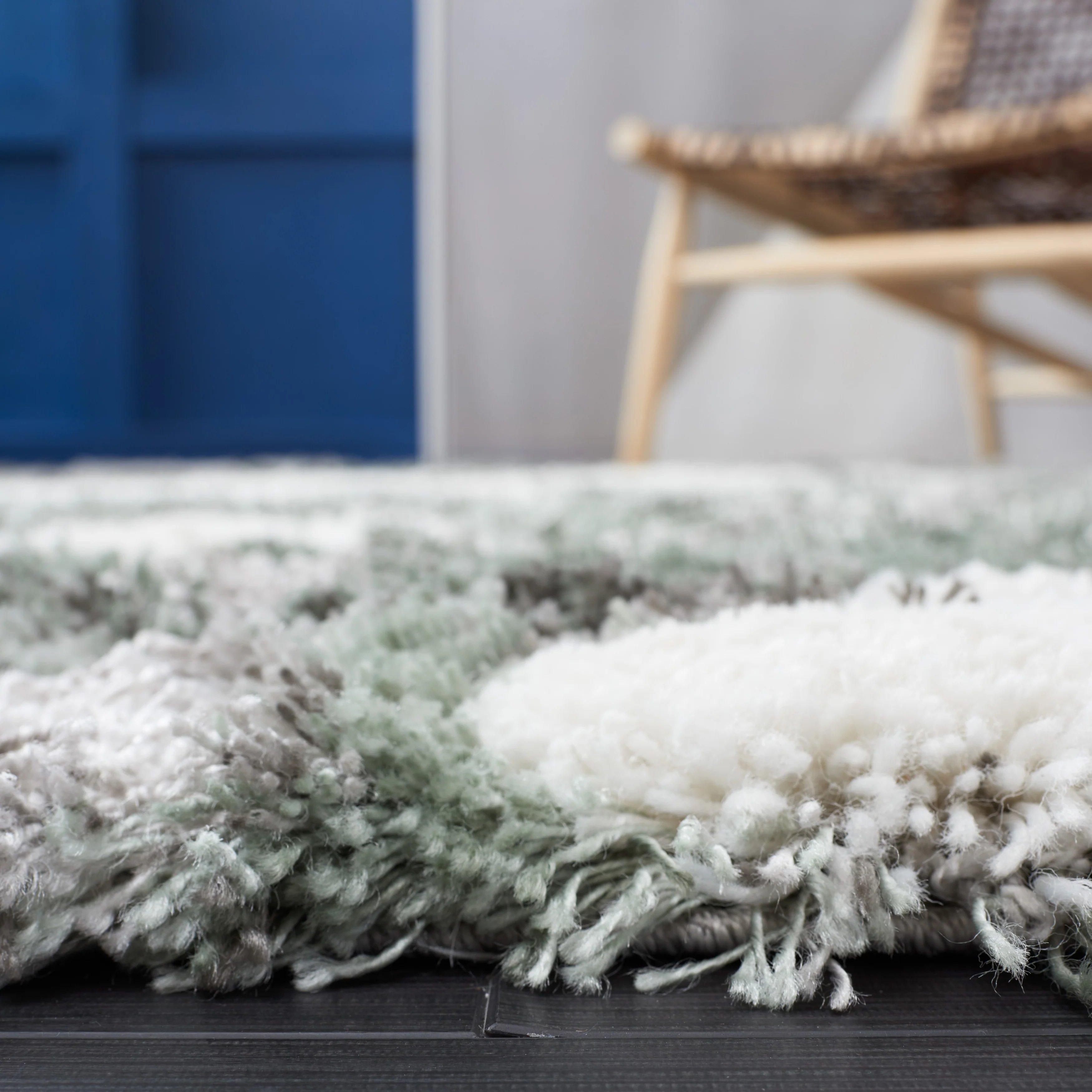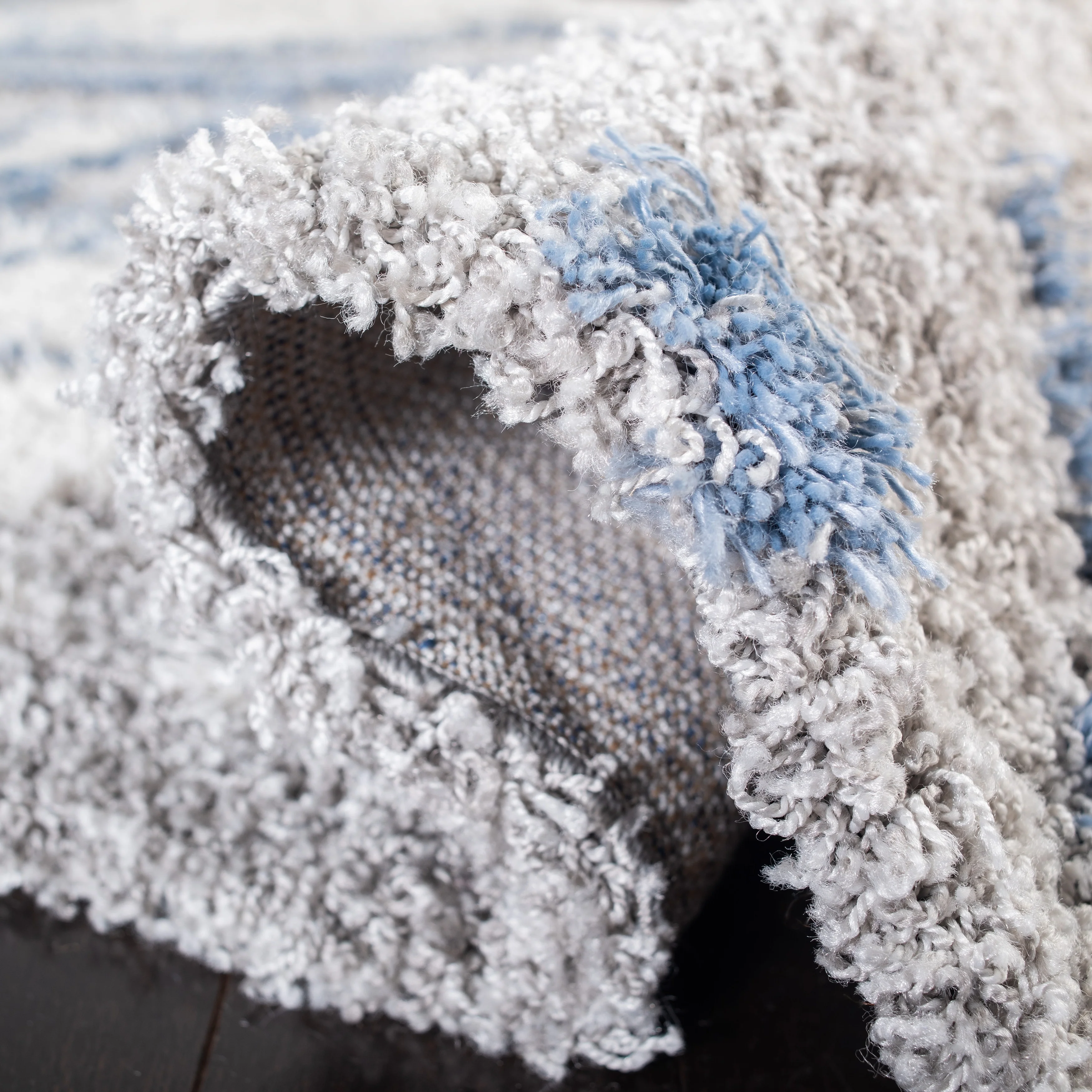 Experience the beauty of nature inside your home with the SAFAVIEH Horizon Shag Mukades Rug. This stunning rug features an abstract pattern in calming neutral colors, inspired by the earth's surface and sky. With a luxurious 2.6-inch pile thickness, it provides a plush feeling underfoot and creates flowing dimension. Crafted from durable fibers that are kid and pet-friendly, it can withstand high-traffic areas without shedding.