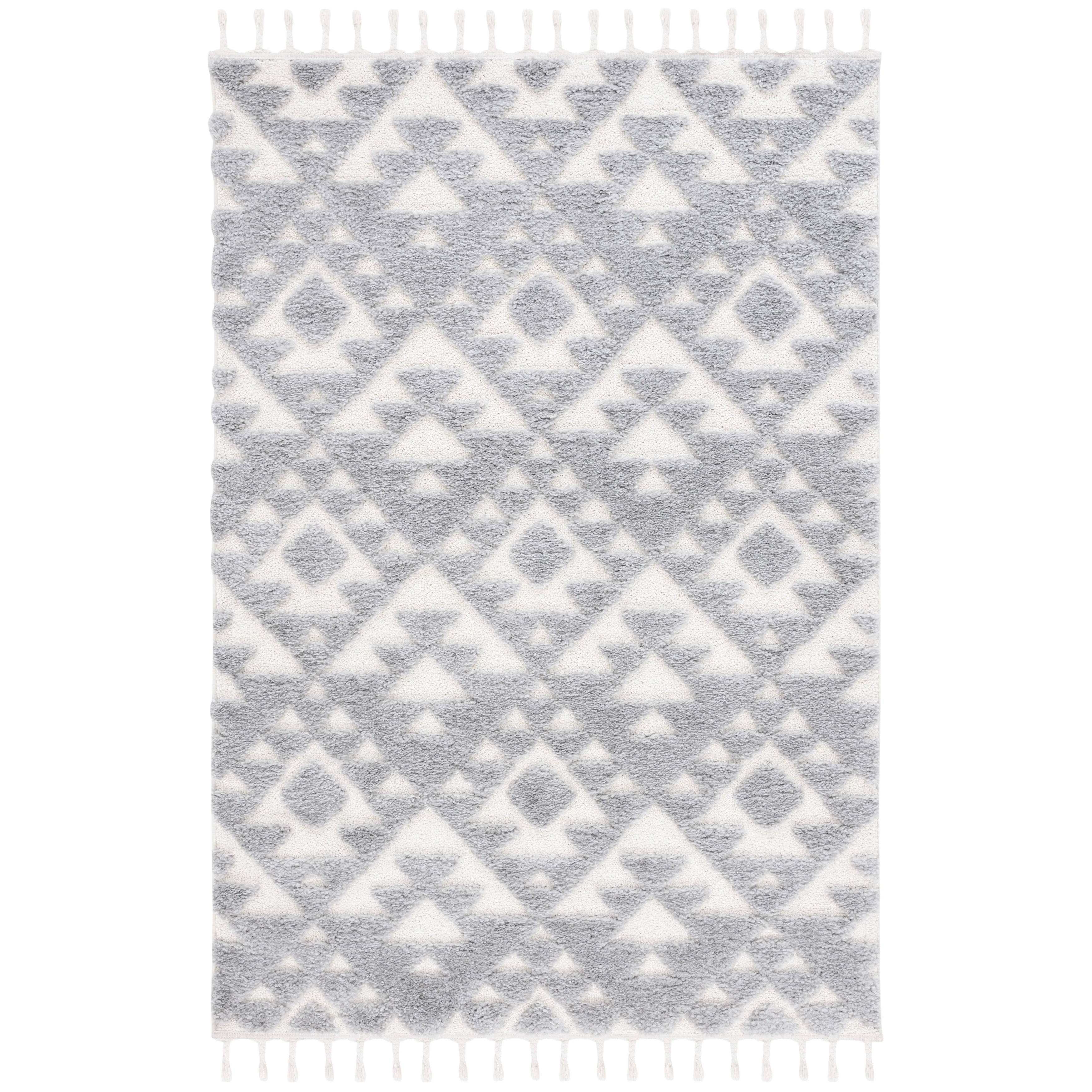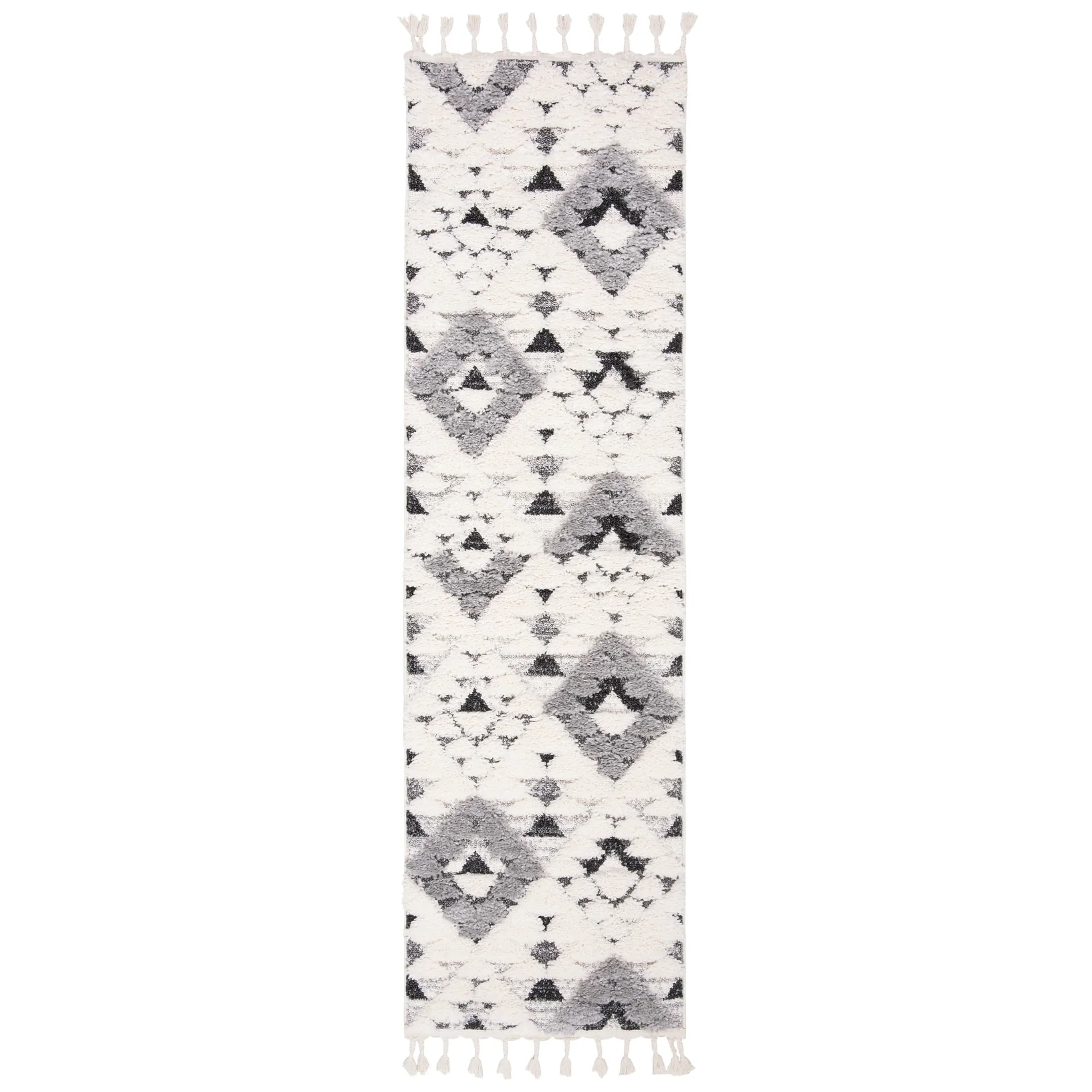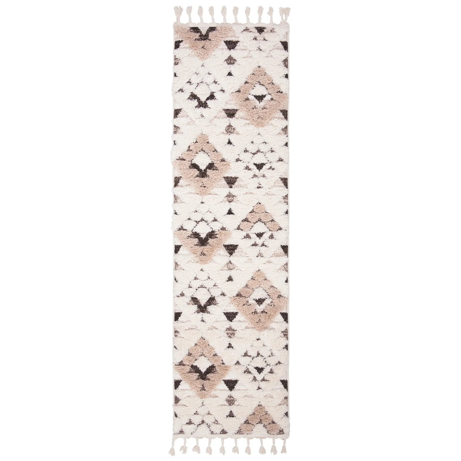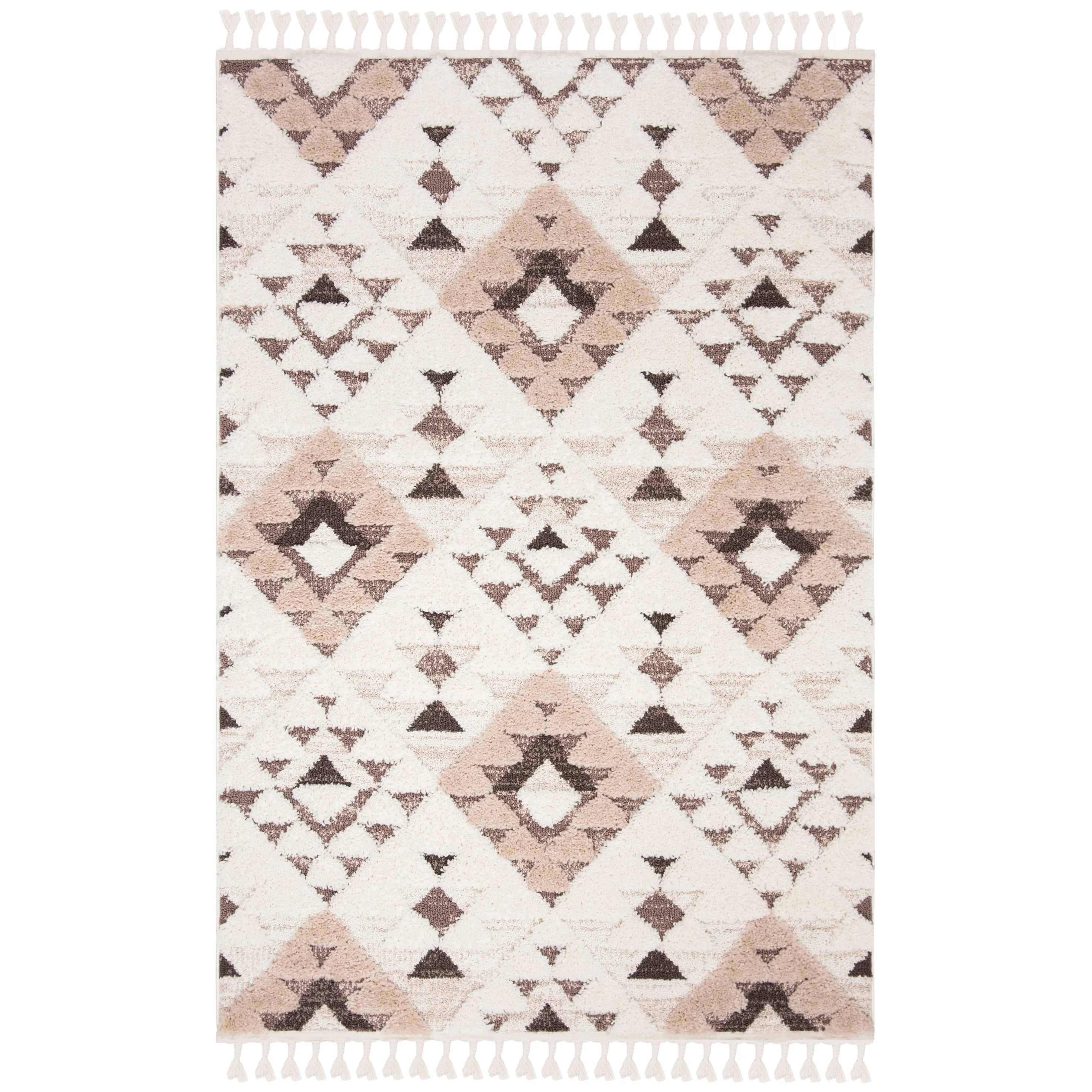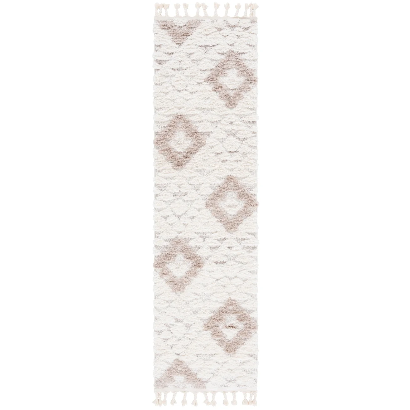 Add a plush and stylish touch to your home with this SAFAVIEH Moroccan Tassel Shag Kobi rug. The classic Moroccan diamond trellis and abstract patterns in neutral colors create a contemporary statement piece that complements any decor. The 2-inch pile thickness provides a soft and cozy feel underfoot, while the non-shedding synthetic fibers ensure long-lasting durability. The chic braided tassels add bohemian flair to the overall design. Perfect for any room in your home, this machine-made rug is part of SAFAVIEH's Moroccan Tassel Shag Collection.