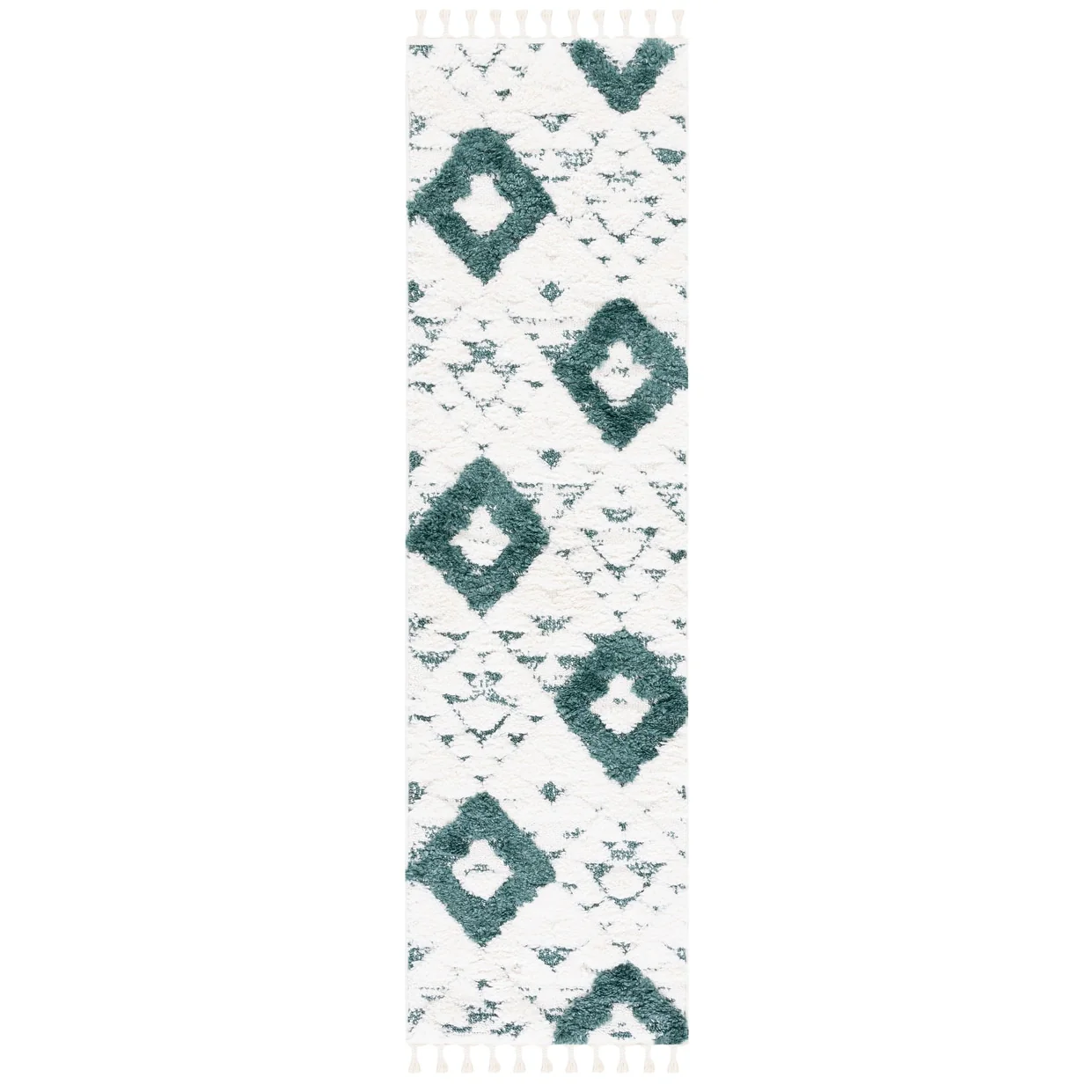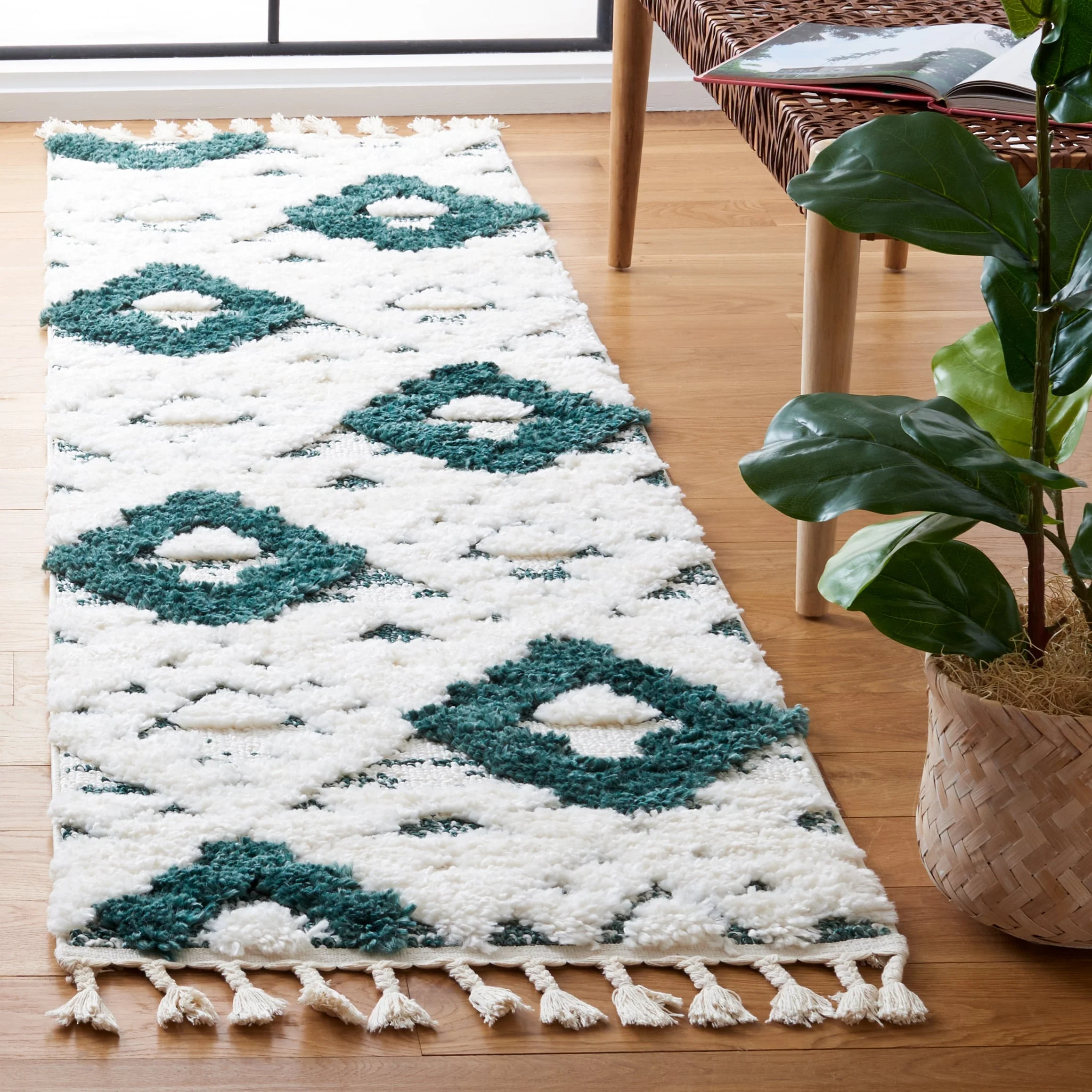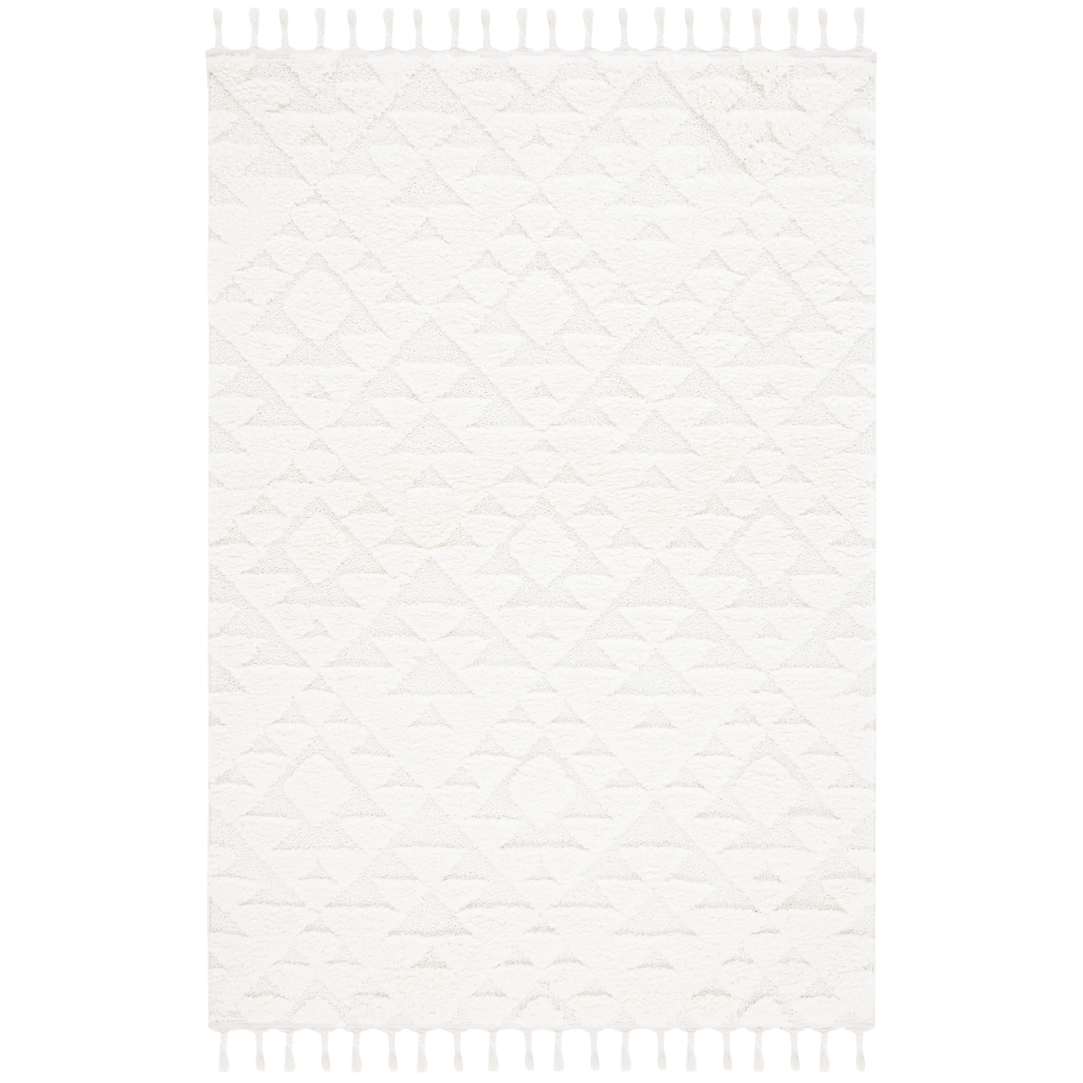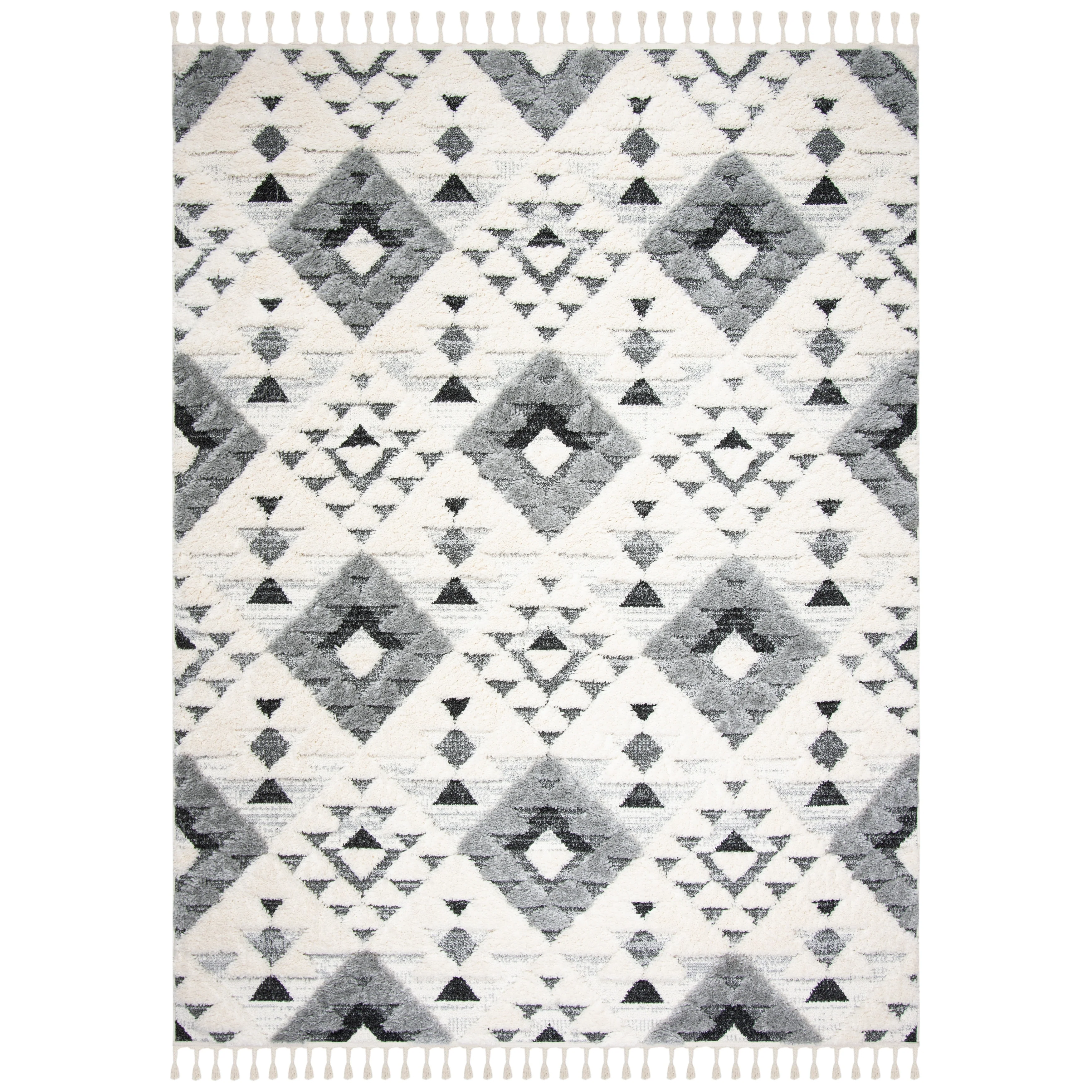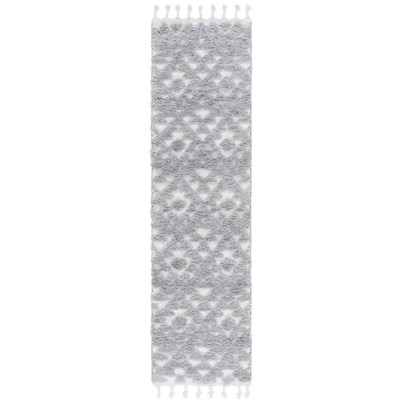Add a plush and stylish touch to your home with this SAFAVIEH Moroccan Tassel Shag Kobi rug. The classic Moroccan diamond trellis and abstract patterns in neutral colors create a contemporary statement piece that complements any decor. The 2-inch pile thickness provides a soft and cozy feel underfoot, while the non-shedding synthetic fibers ensure long-lasting durability. The chic braided tassels add bohemian flair to the overall design. Perfect for any room in your home, this machine-made rug is part of SAFAVIEH's Moroccan Tassel Shag Collection.