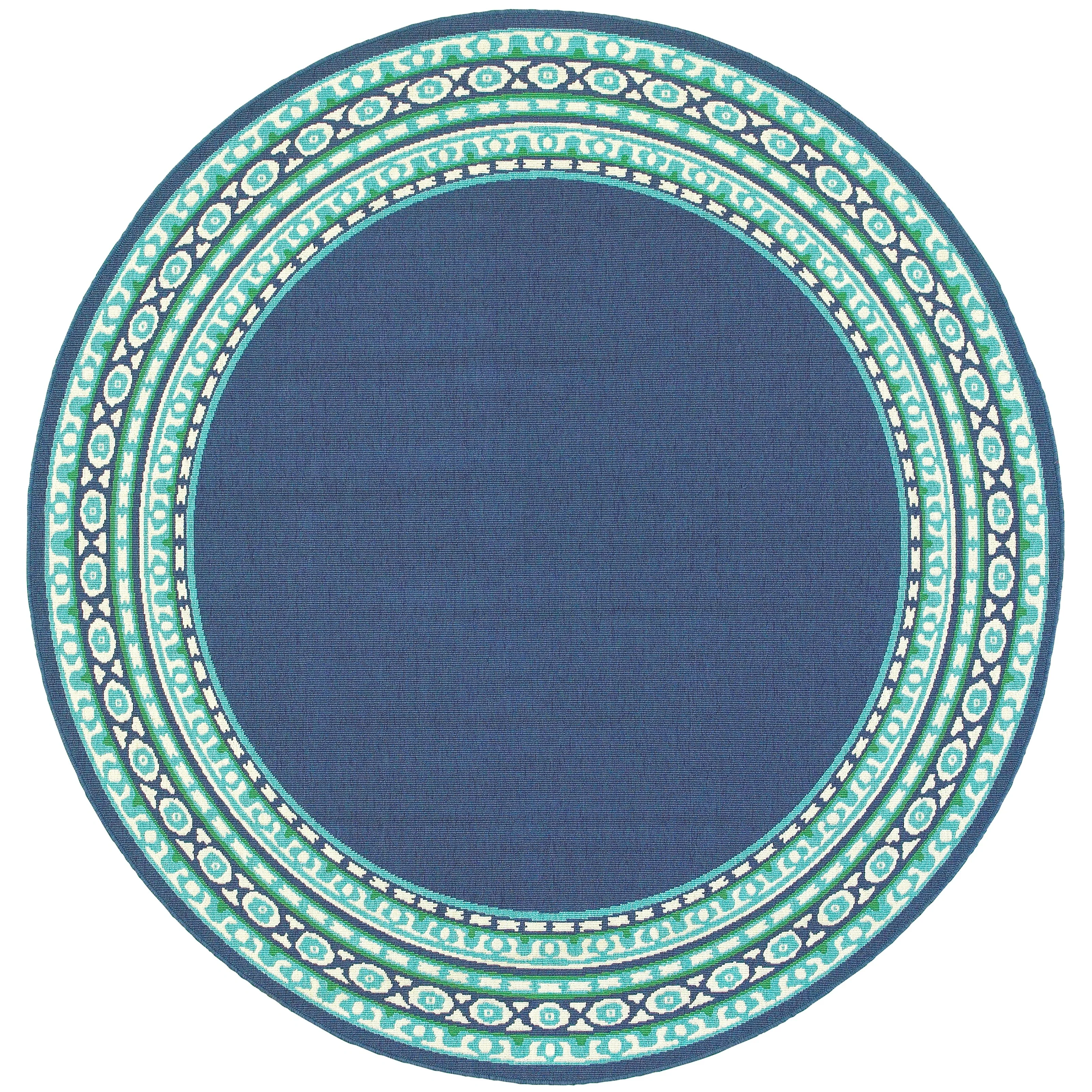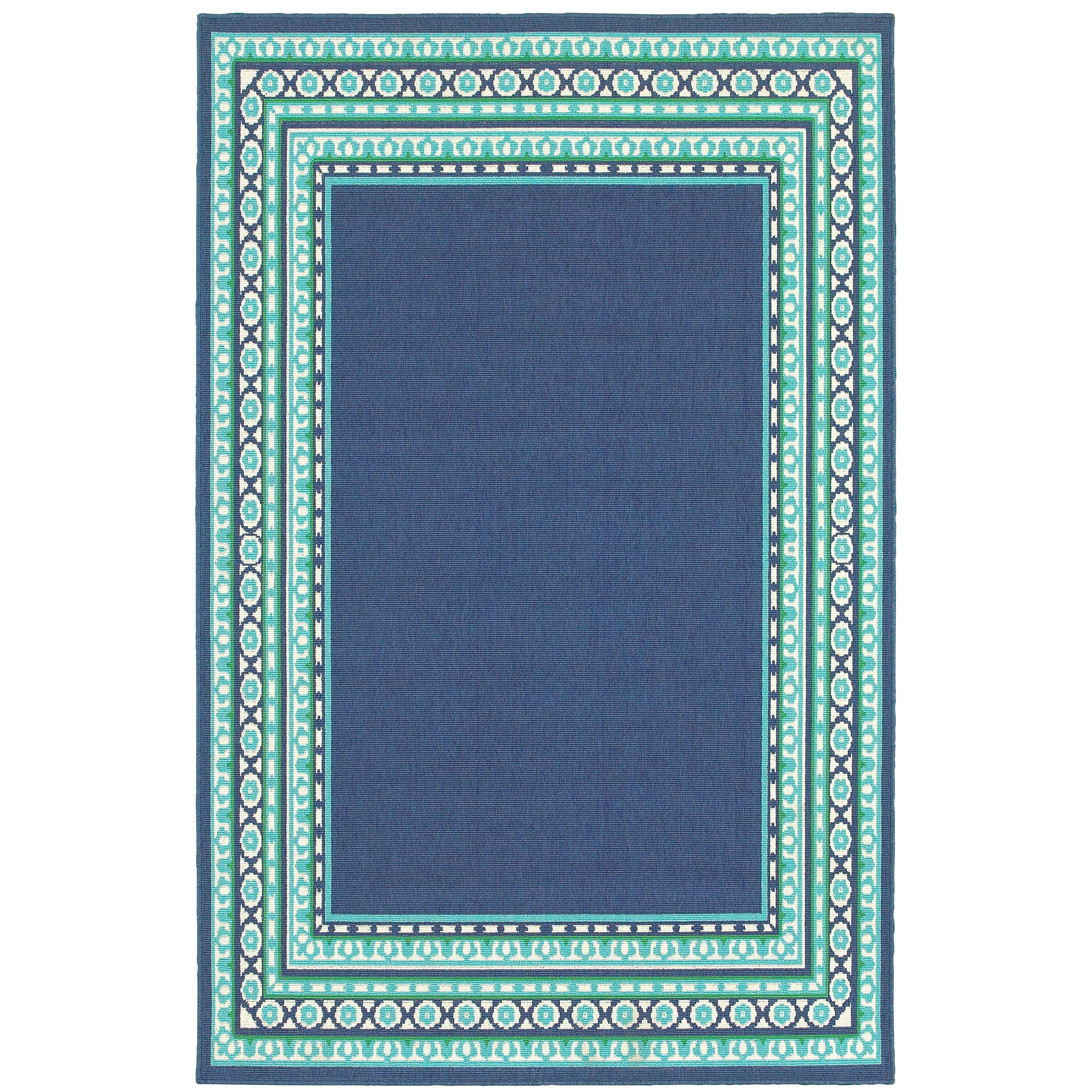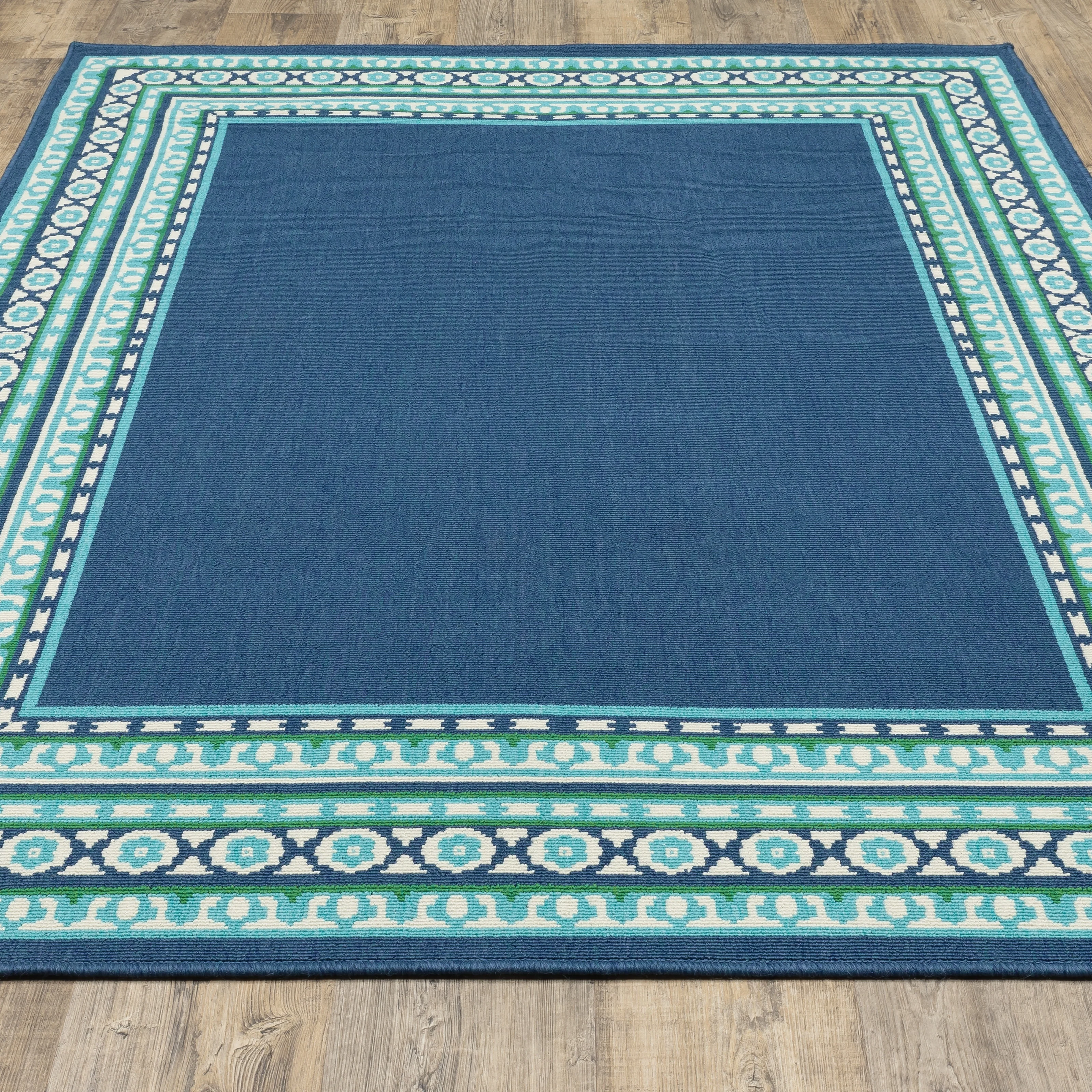 Bring both style and durability to your indoor or outdoor space with this Martinque Green Bordered Navy Area Rug by Style Haven. The solid navy center and intricate green border pattern create a stunning visual, while the low pile adds durability and makes it perfect for placing beneath furniture. Made of weather-resistant polypropylene, this rug is ideal for high-traffic areas and resists water, stains, fading, and wear. Choose from multiple sizes to fit any space.~