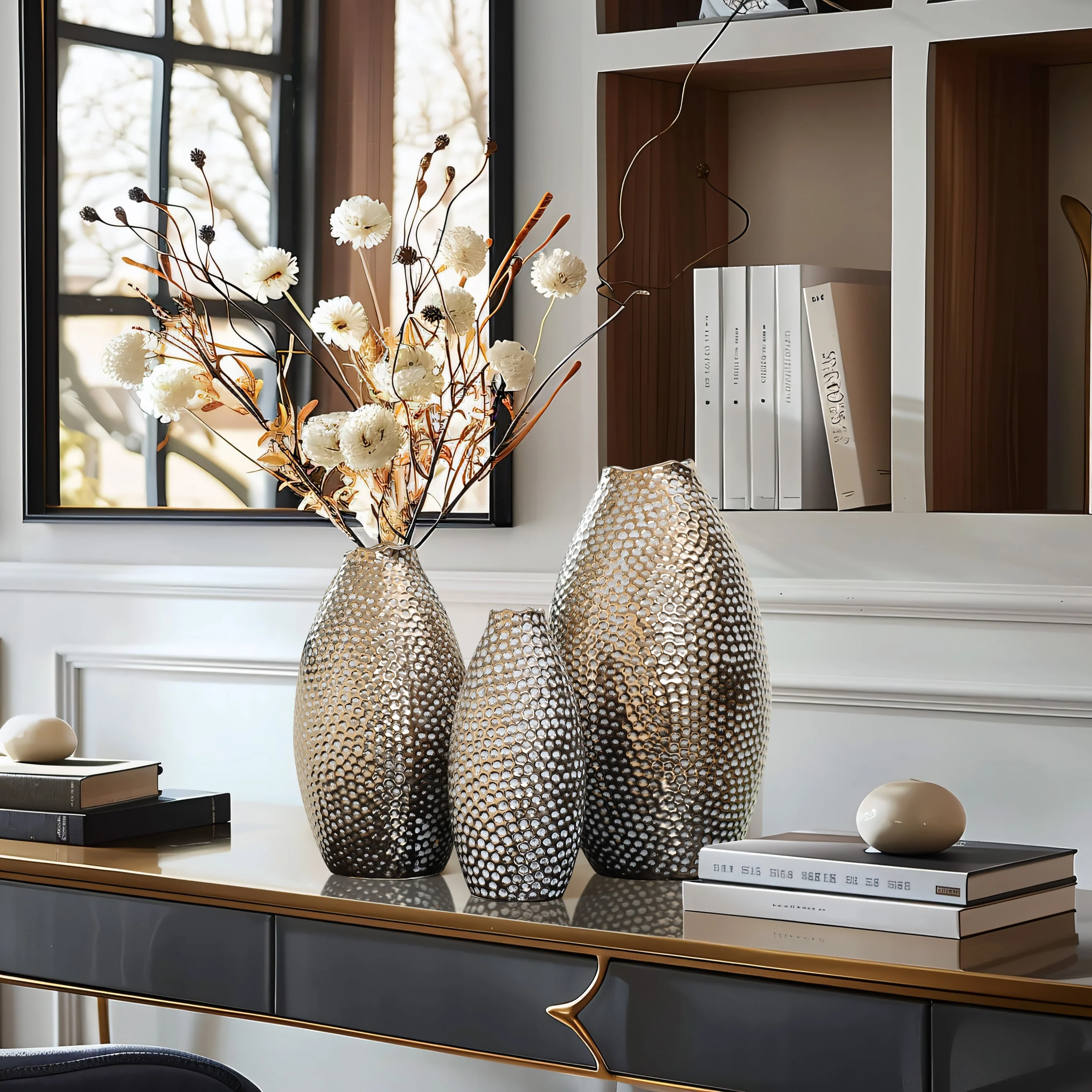 Antique Gold Dimpled Tall Terracotta Vase (Single)