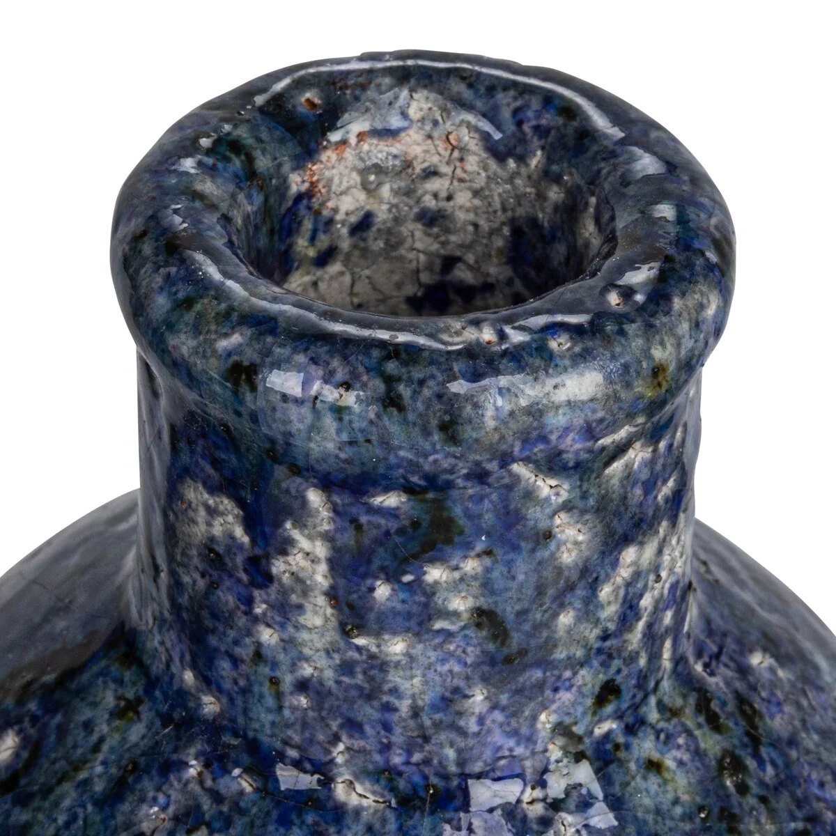 This set of decorative terra-cotta vases with a crackle glaze and navy color is a unique and beautiful addition to any home. The vases have a round shape and narrow opening, with a cracked and glossy surface created by the crackle glaze. The navy color gives the vases a vibrant and elegant look. They can be used to display flowers, plants, or branches, or as decorative accents. Place them on tables, shelves, mantels, or windowsills, and create a cozy and inviting atmosphere in the home. These vases are suitable for coastal, beach, garden, French country, or farmhouse styles, adding elegance and charm to any space. Each vase will vary slightly in color and texture due to the crackle glaze process.