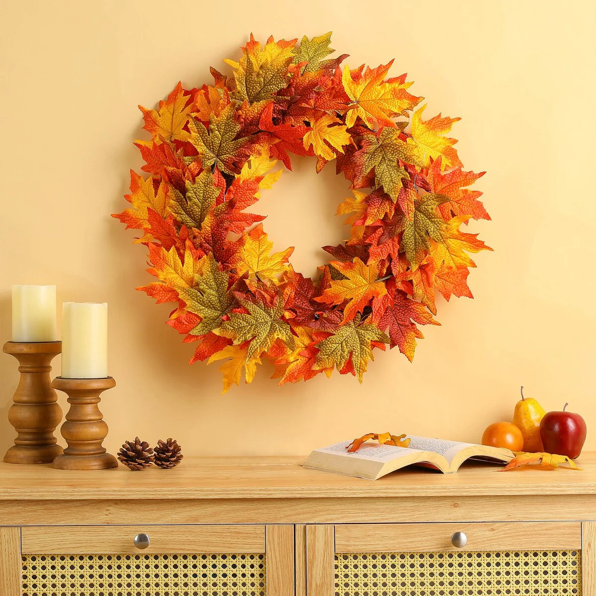 What would the harvest season be without a festive garland? Celebrating the colors of fall, our handcrafted Faux Leaves Wreath welcomes the cool breeze and crunching leaves. Pair it with the matching wreath and garland for a total autumnal makeover.
