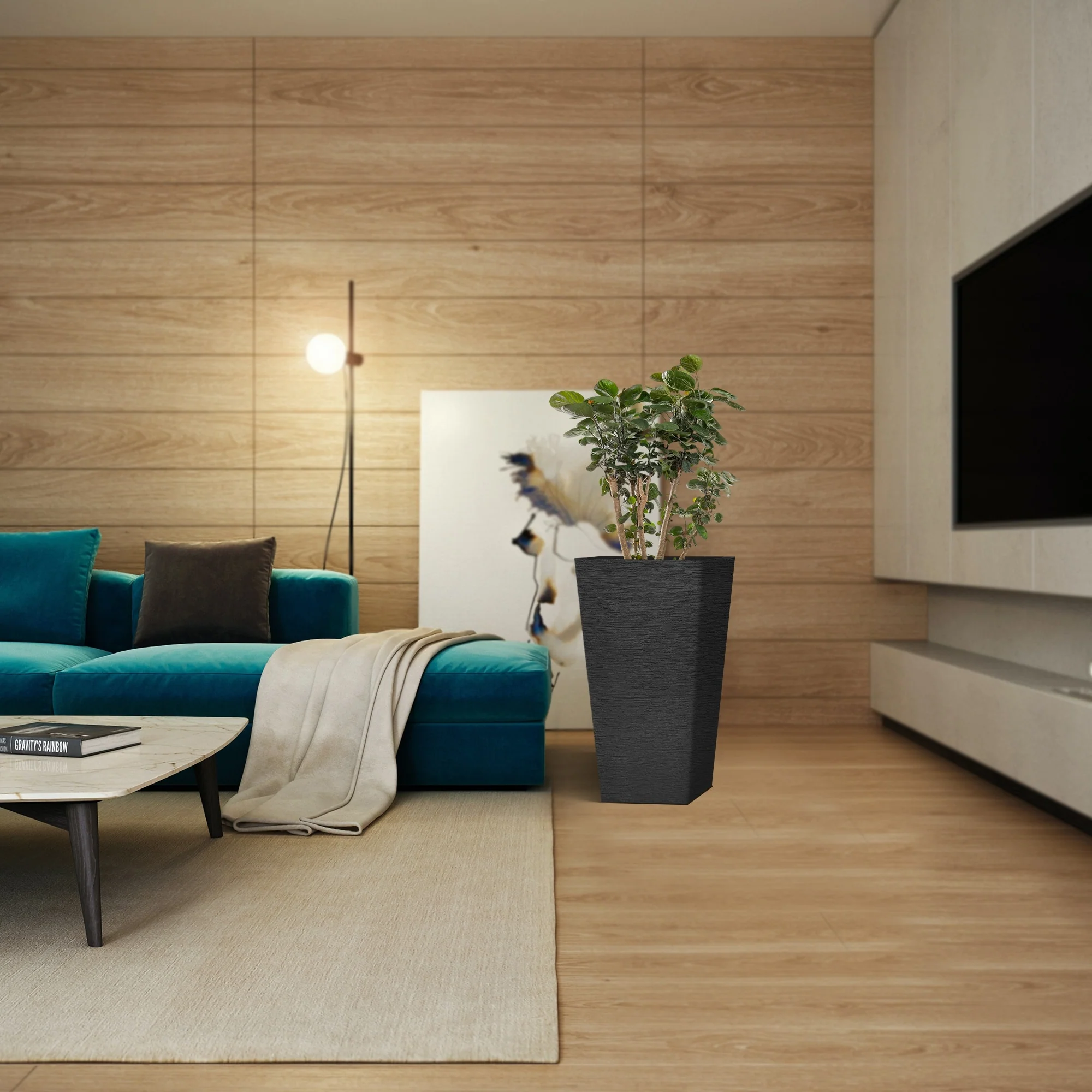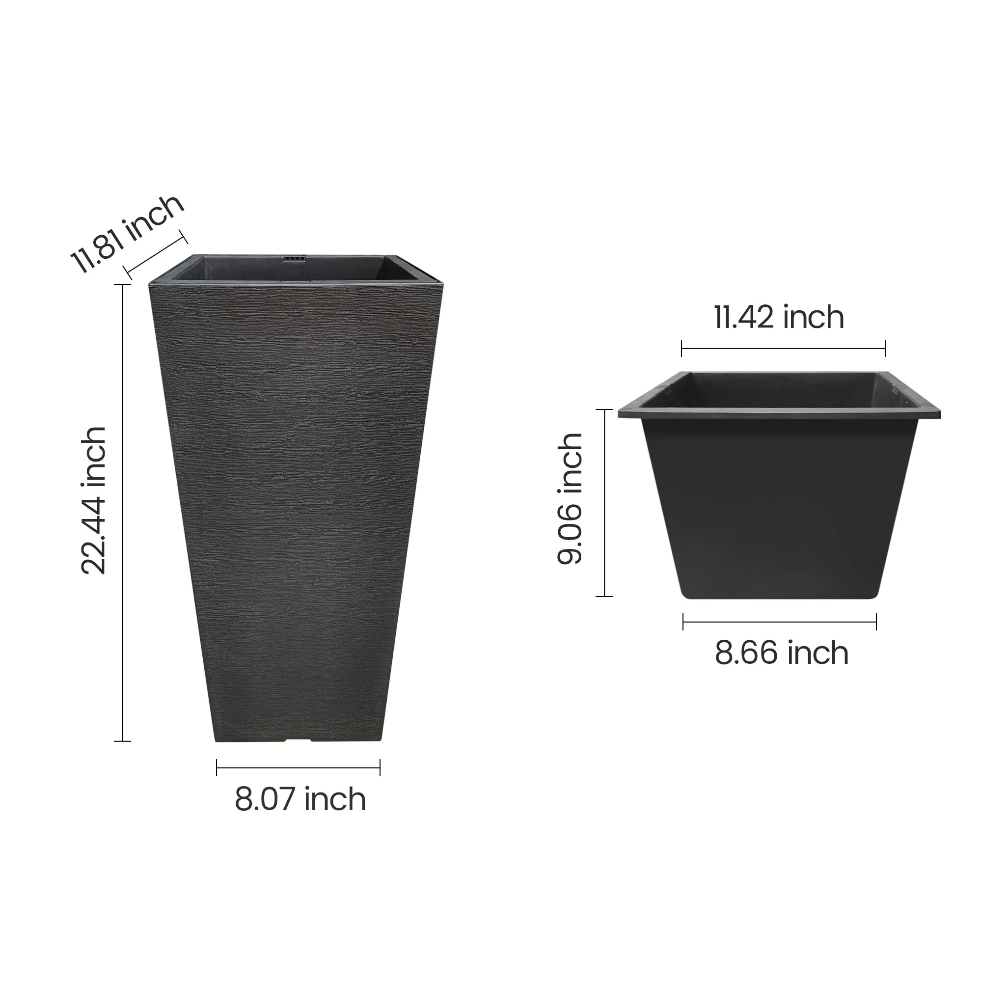 Enhance the aesthetic appeal of your outdoor and indoor spaces with the Kante 22 Inch Tall Planter Set of 2. These large taper planters are designed to elevate your garden, patio, front door, or any other area that needs a touch of elegance and greenery. Crafted with meticulous attention to detail, these planters boast a premium quality construction that ensures durability and long-lasting performance. The sleek black color adds a contemporary and sophisticated touch to your surroundings, blending with any decor style effortlessly. The tapered design of these planters exudes modernity, providing a visually pleasing contrast to your plants' vibrant colors and textures. Not only are these planters aesthetically pleasing and functional but they are also designed with ease of use in mind. They are lightweight, making them easy to handle and move around as desired.