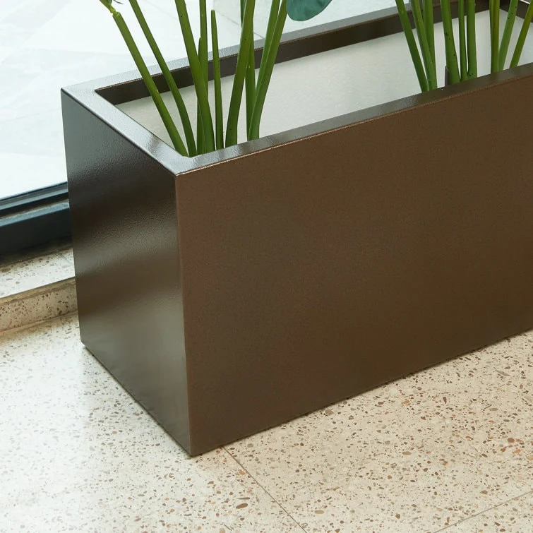 Whether it’s your room, your patio, or the lackluster entrance wall of your home, this Metallic Series Indoor/Outdoor Box Planter—with its perfect balance of design, durability, and convenience—features a low modern design that is the perfect fit for elevating your outdoor decor or residential and commercial settings to a whole new level. It is crafted from fully seam welded, thick gauge powder-coated galvanized steel with a furniture-quality finish, which gives the planter its flexible, impact, crack, and scratch-resistant qualities. To top it off, it is equipped with an optional drainage hole to drive out excess water easily.