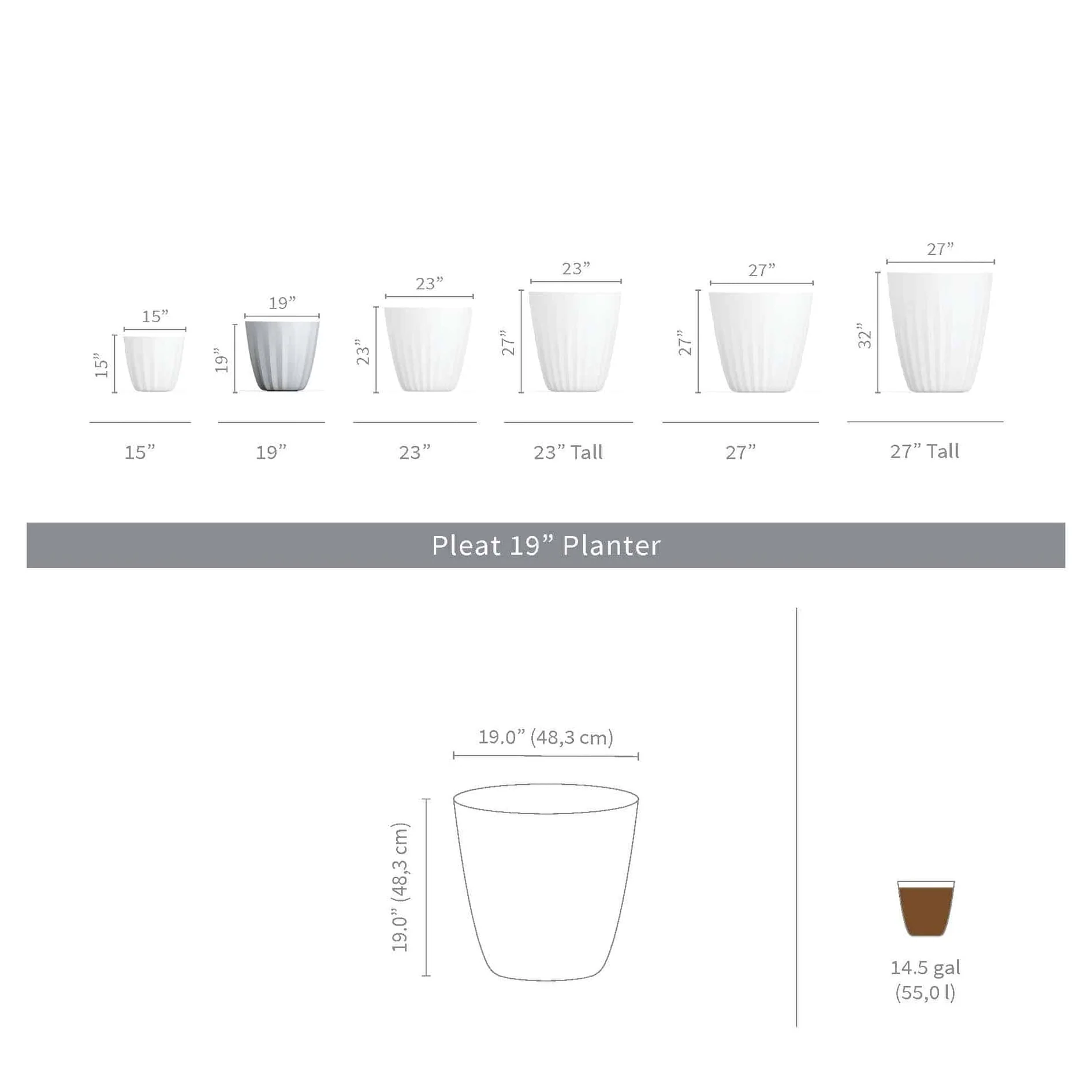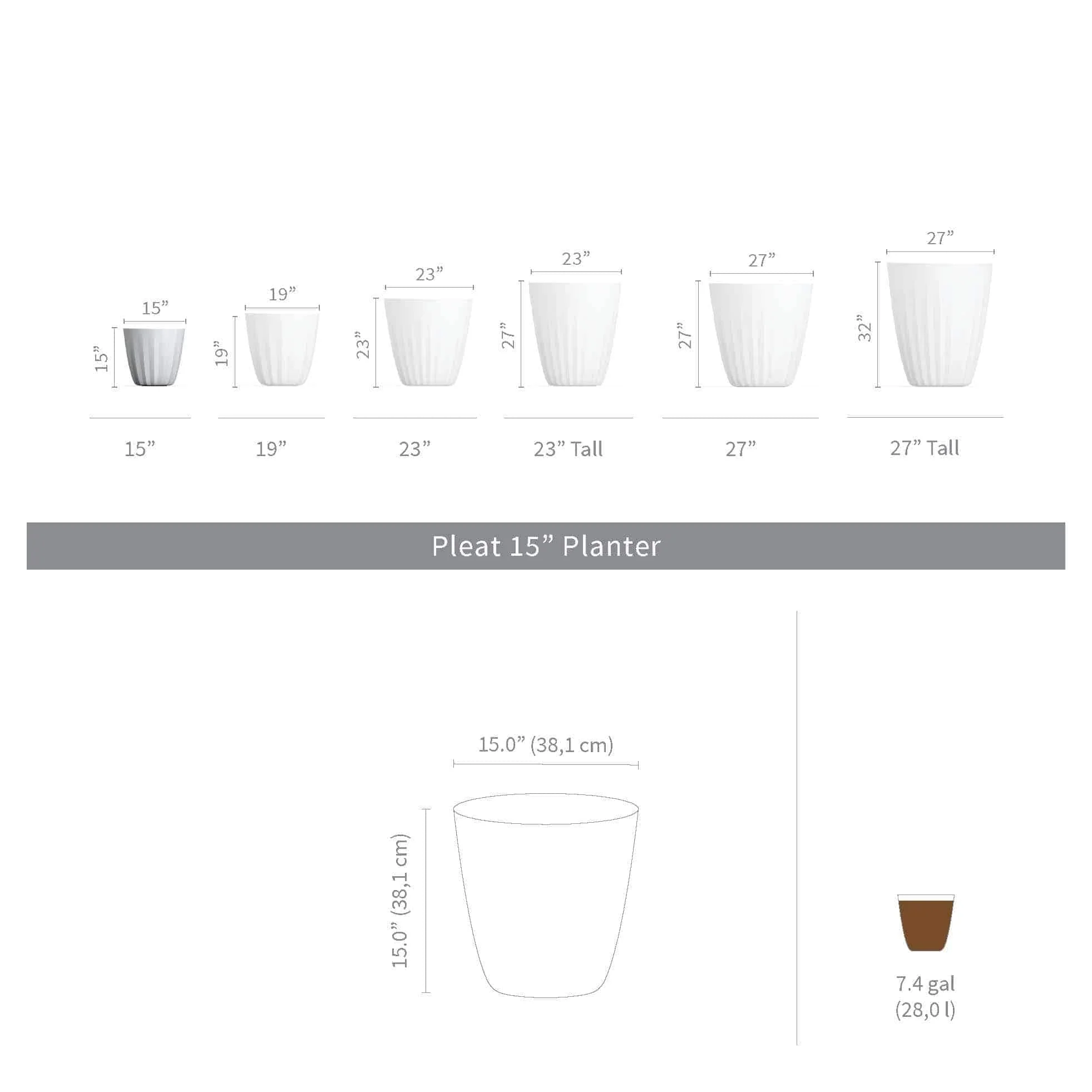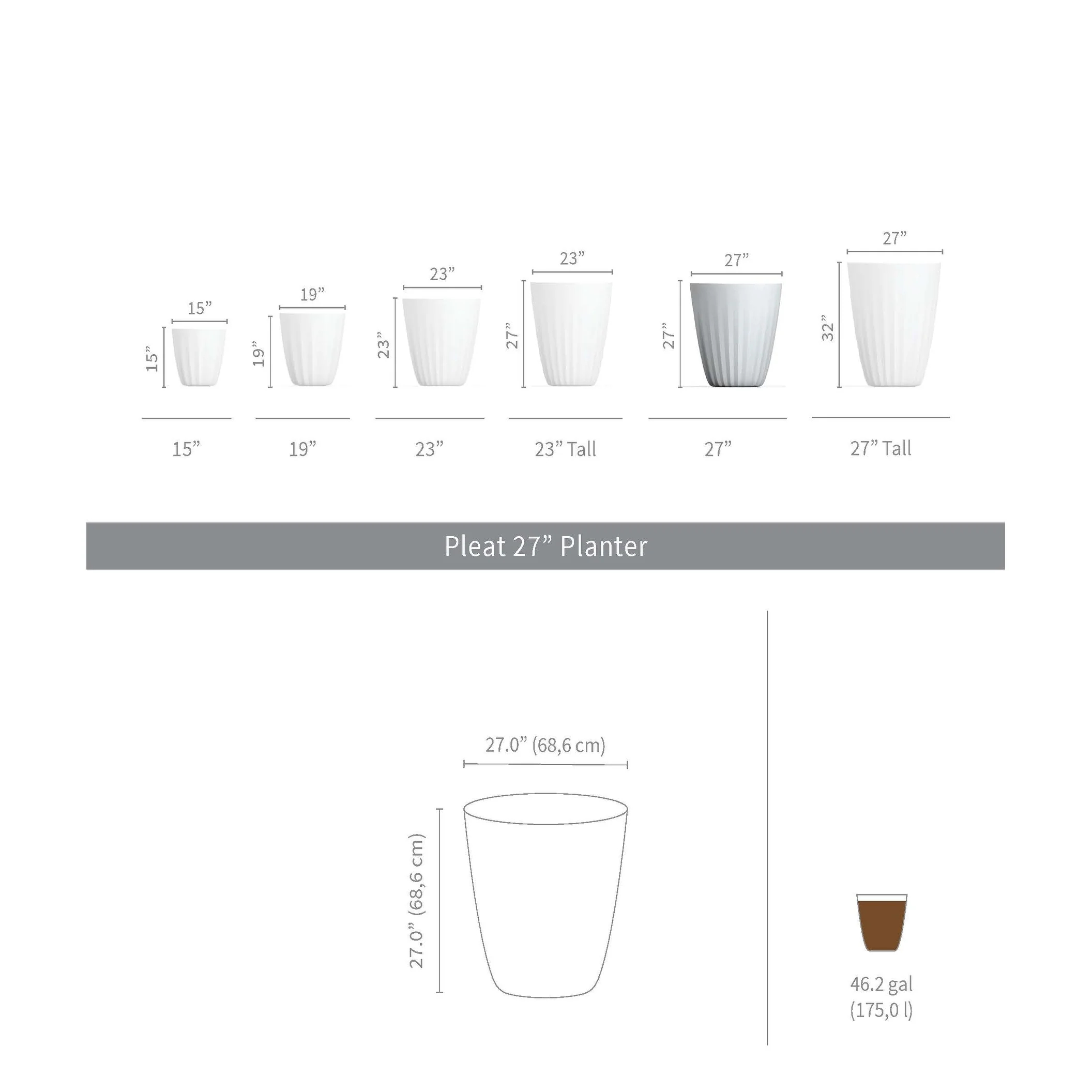The Pleat modern indoor and outdoor planter offers a unique design that will enhance your plant display. These high-volume large planters are lightweight, yet highly durable and designed to last all seasons with its weather-resistant structure. Crescent Garden's rotomolded planters are built with 100% recyclable polyethylene and come with 10-years limited warranty. With a variety of sizes and colors that can be used in clusters, rows or individually, the Pleat planters will enhance any indoor or outdoor space, residential or commercial.