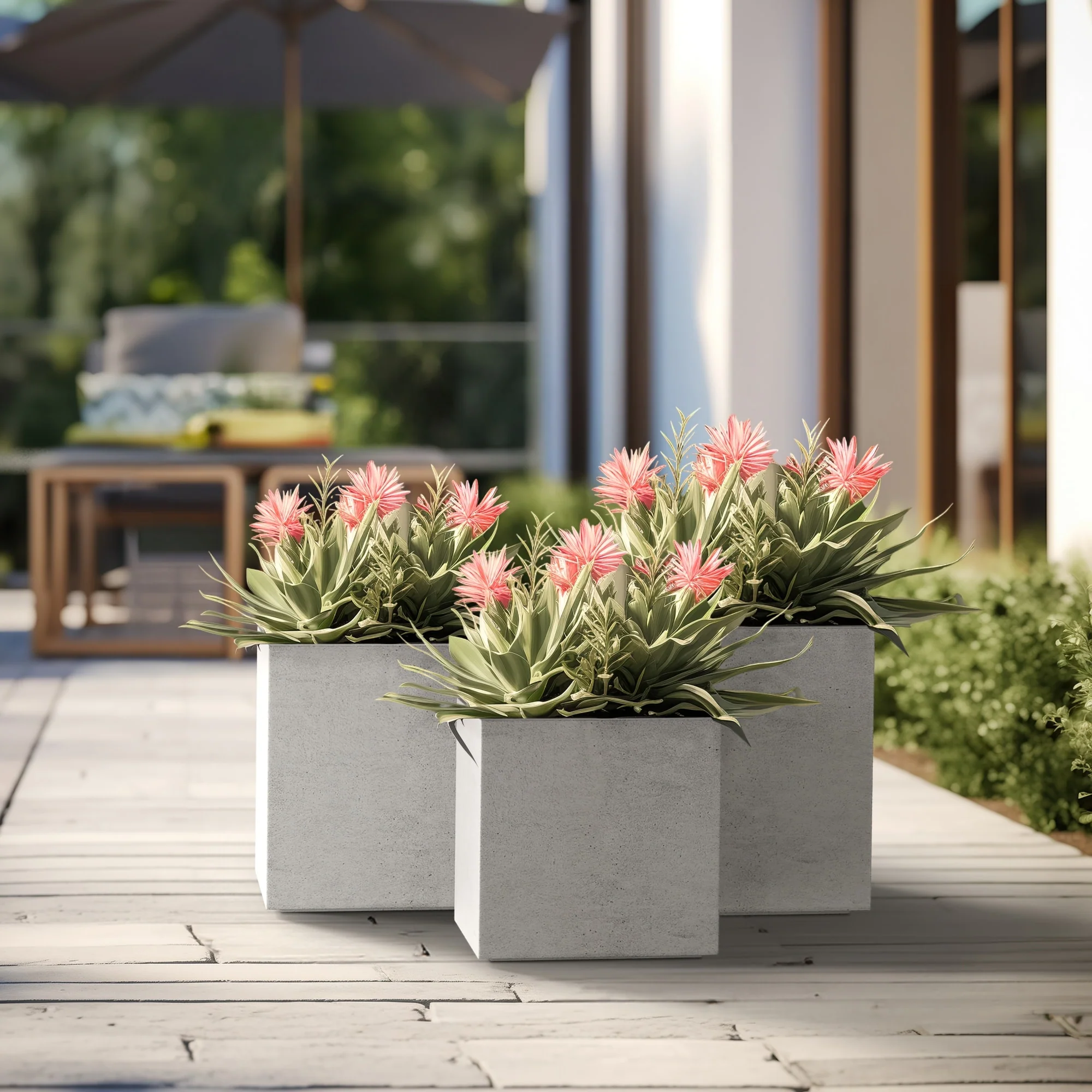 *Weather Resistant: Engineered to withstand the elements, these planters maintain their integrity and appearance through seasons of rain, wind, and sun