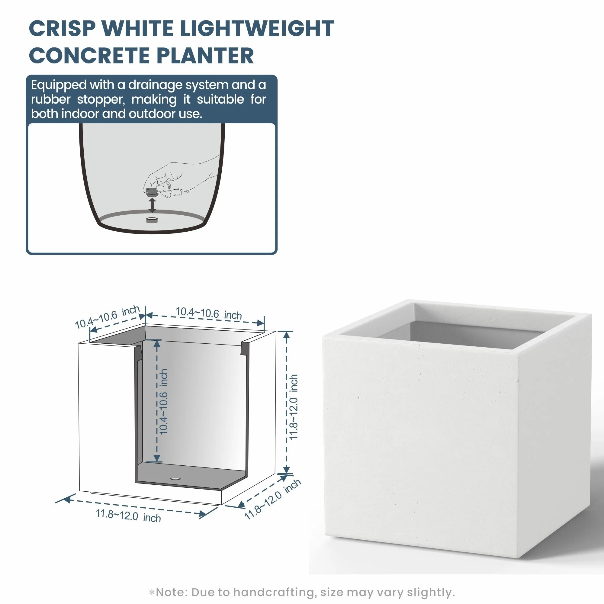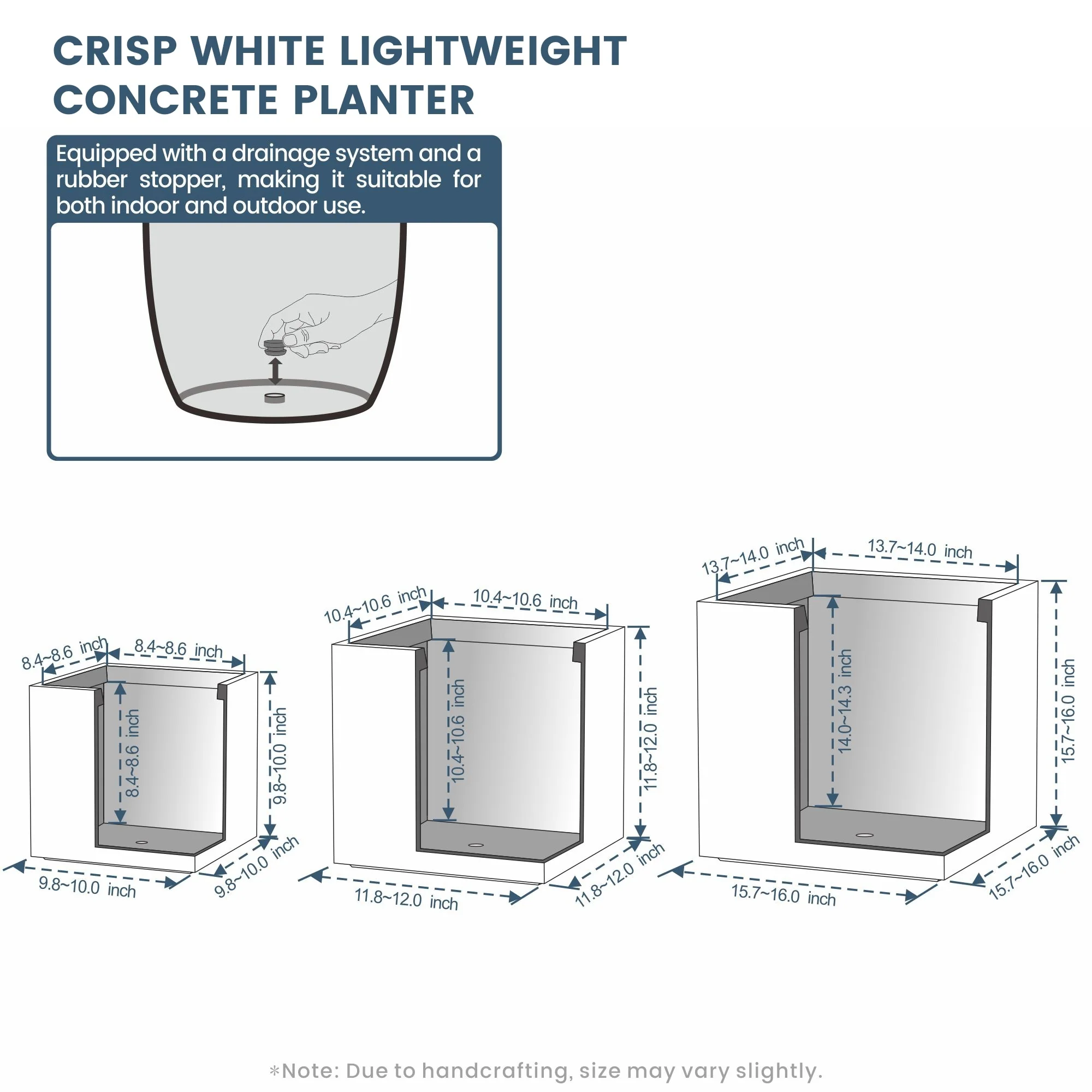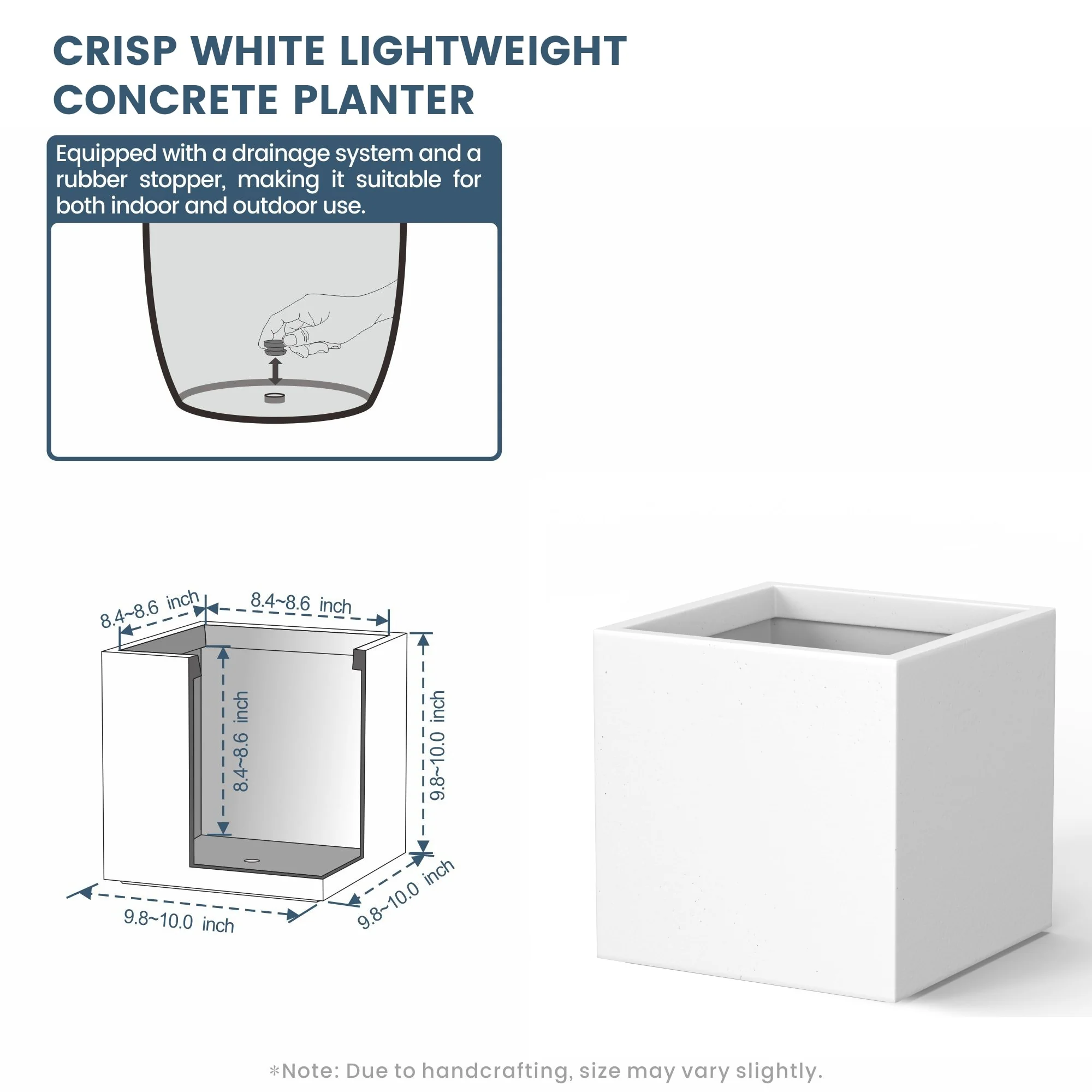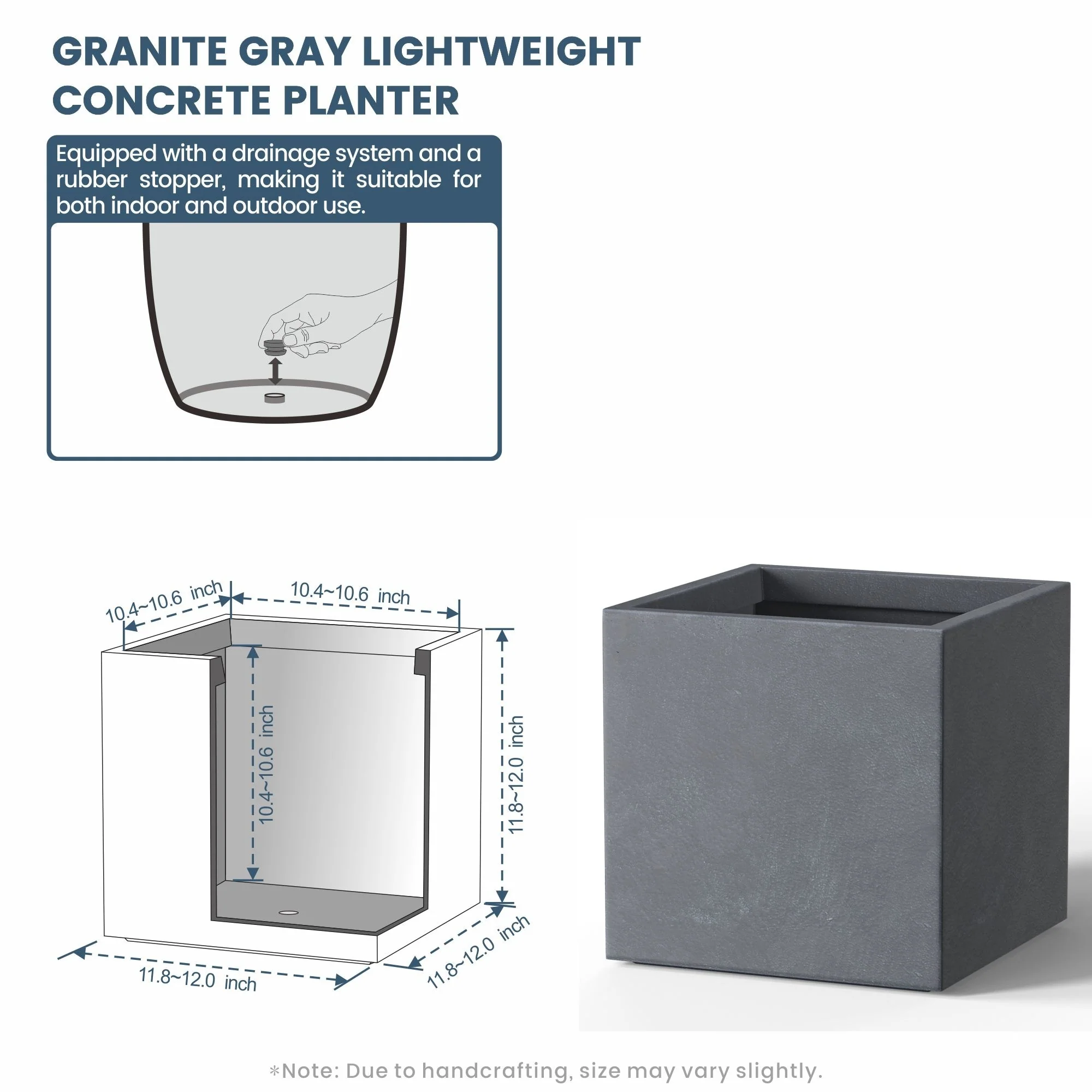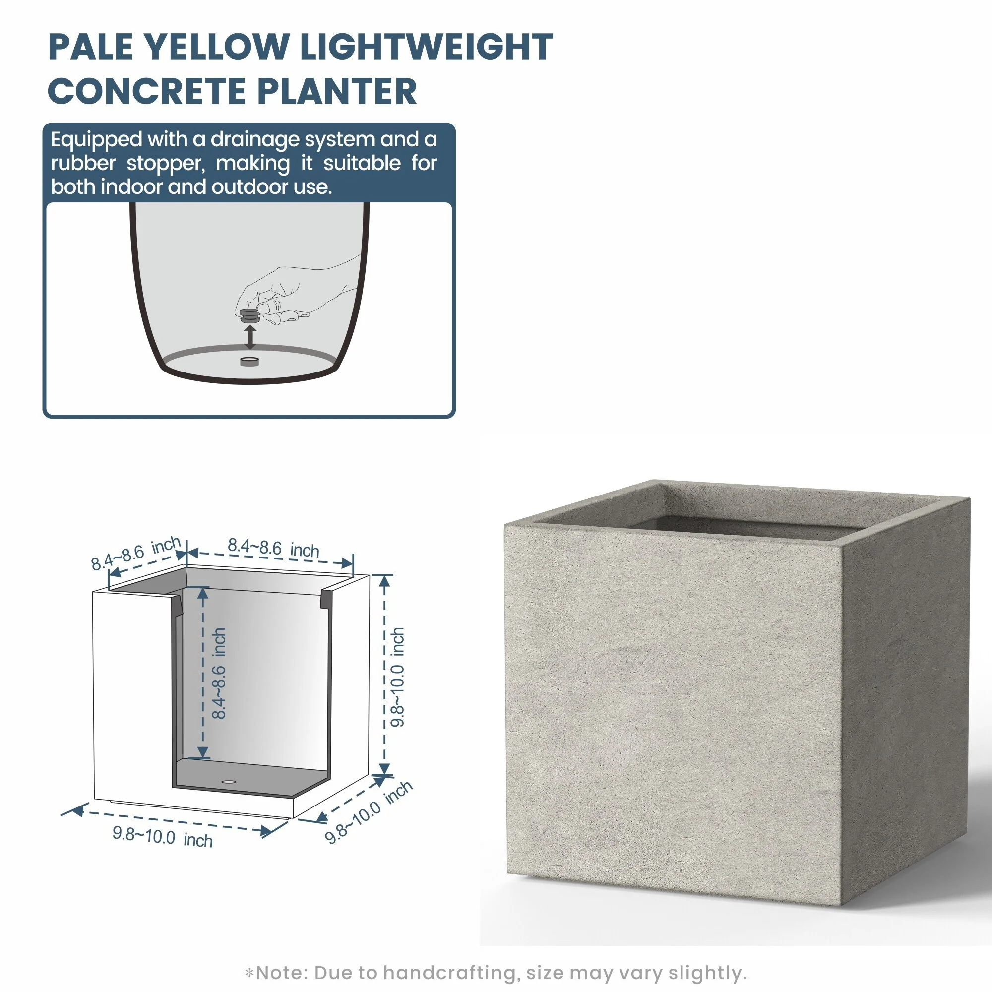 *Rust Resistant: With no metal parts to worry about, these square cement planters resist rusting, ensuring a pristine look through all weather conditions