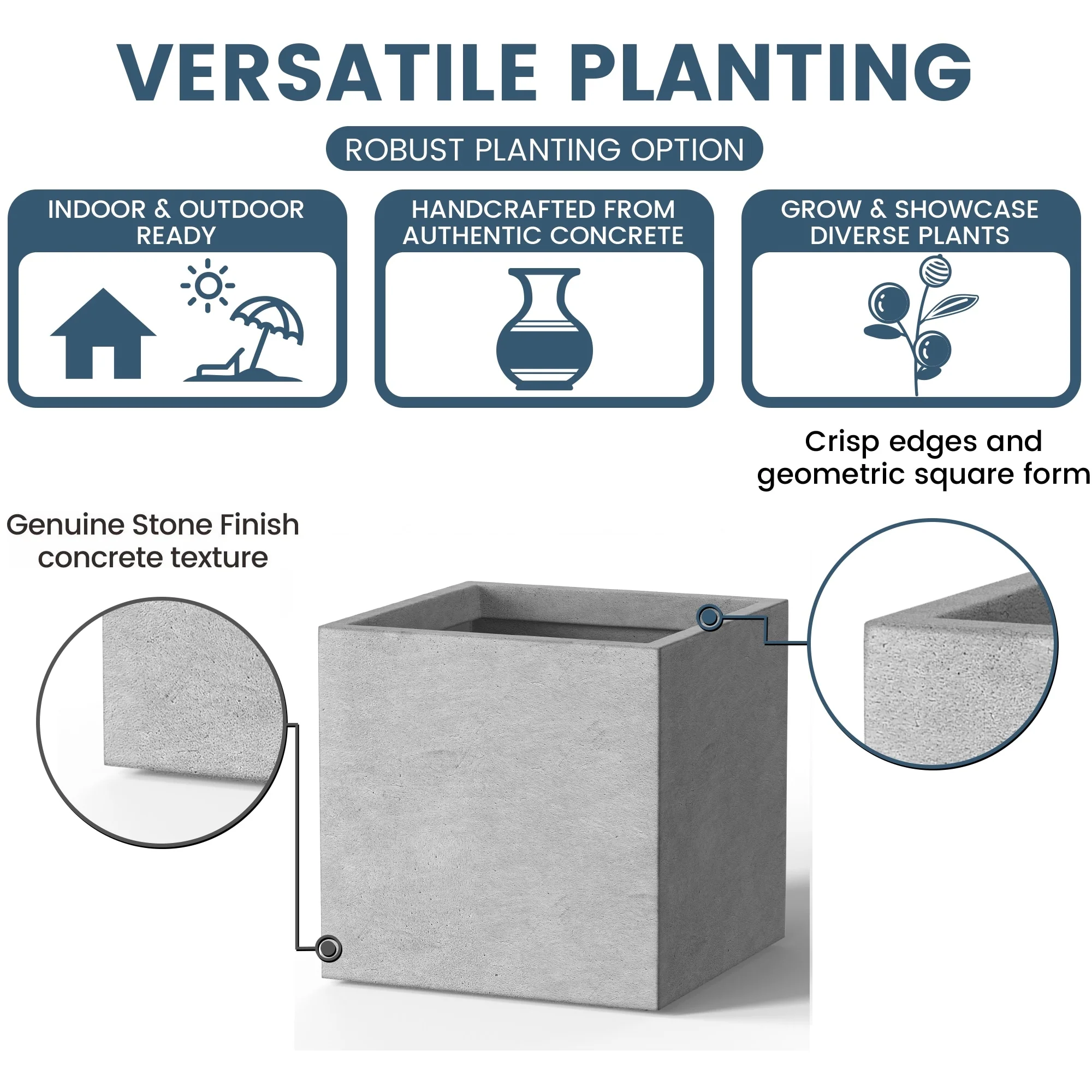 *Durability with Modern Flair: Our cement planter varieties are designed to last and complement the contemporary decor of any North American dwelling, with both stone and inspired concrete finishes that resonate with style