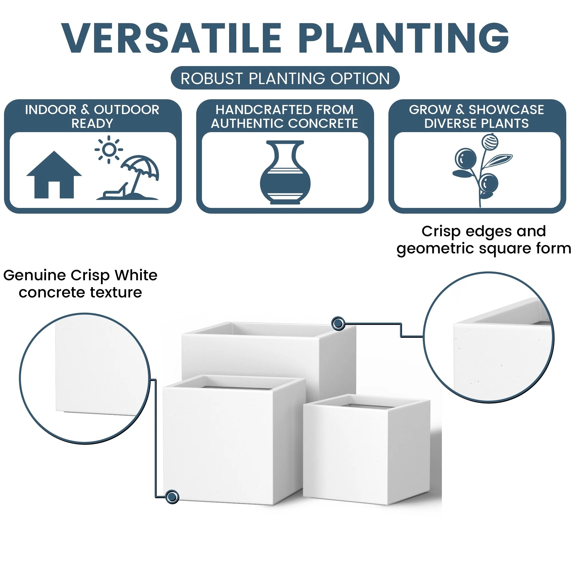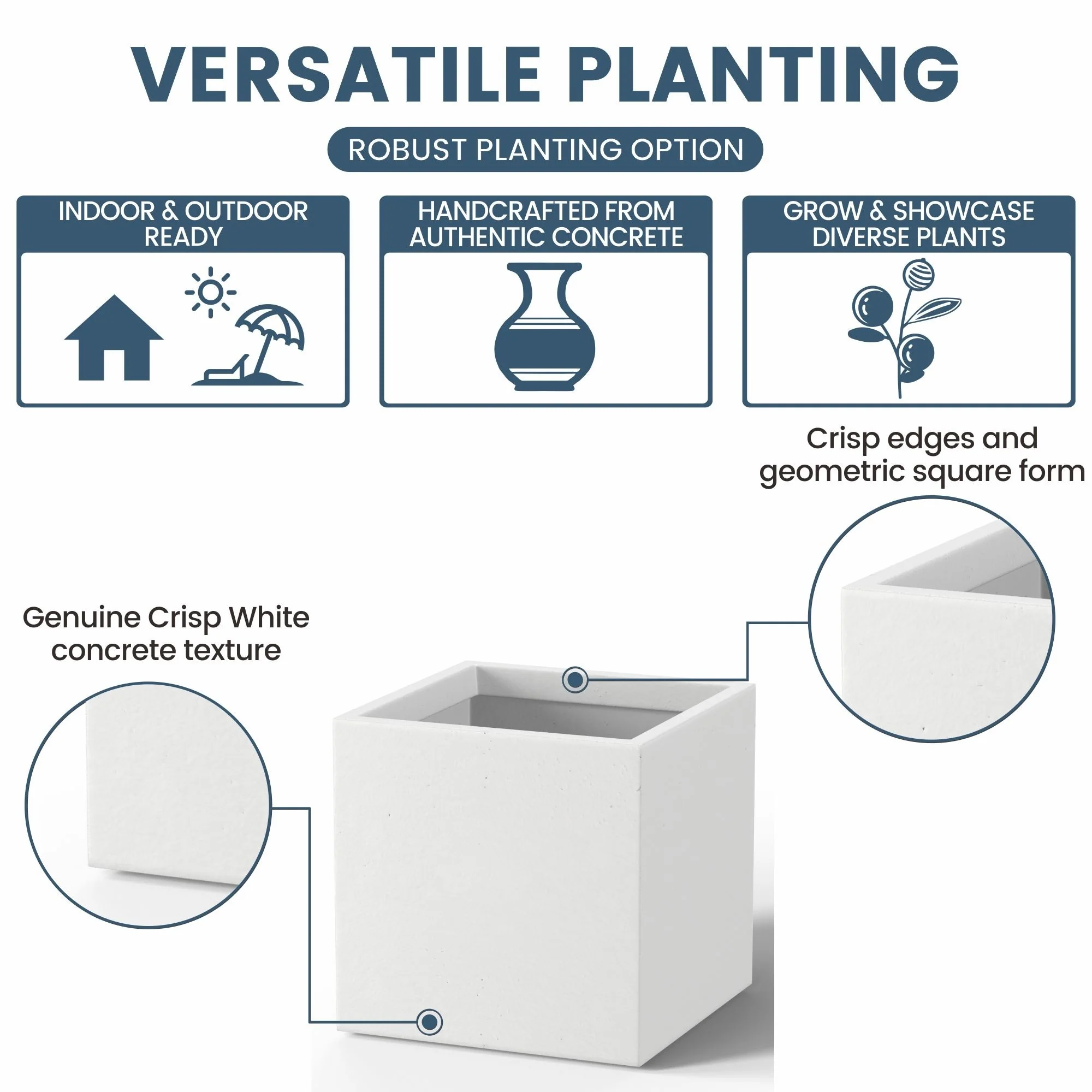 *Cultivate Your Indoor Sanctuary: Durx-litecrete caters to the indoor plant enthusiast with planters for indoor plants that range from the substantial large indoor plant pot to the space-efficient small plant pots. Our square planter brings a unique geometric edge to your indoor greens