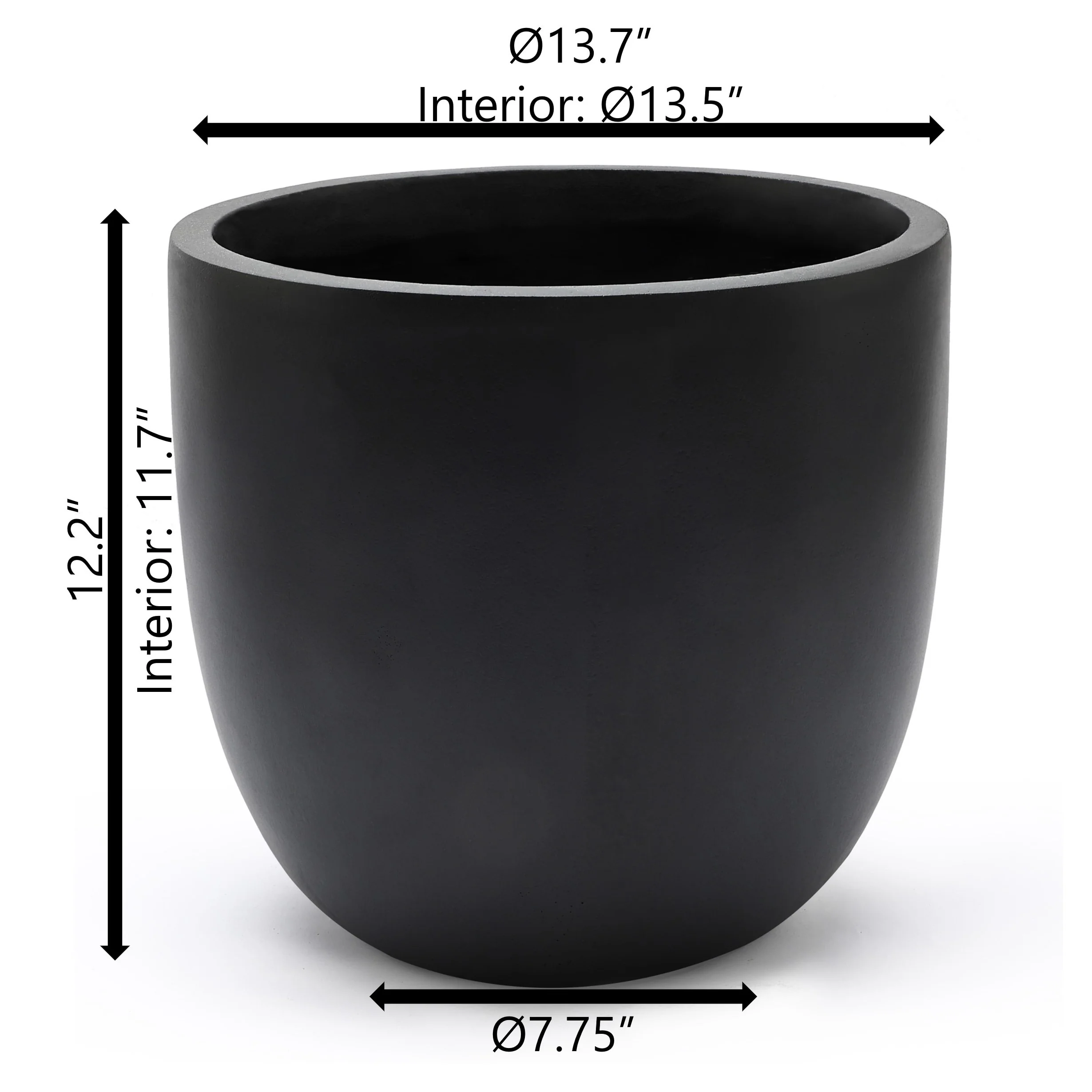 - Medium planter size: 12.2'H x 13.7'D; base size: 7.75'D; interior size: 11.7'H x 13.5'D; weight: 12.2 lbs; capacity: 332 oz; drainage hole: 0.8-1'D