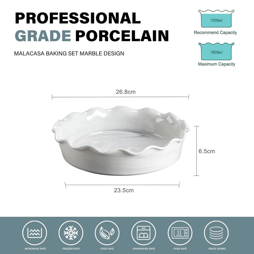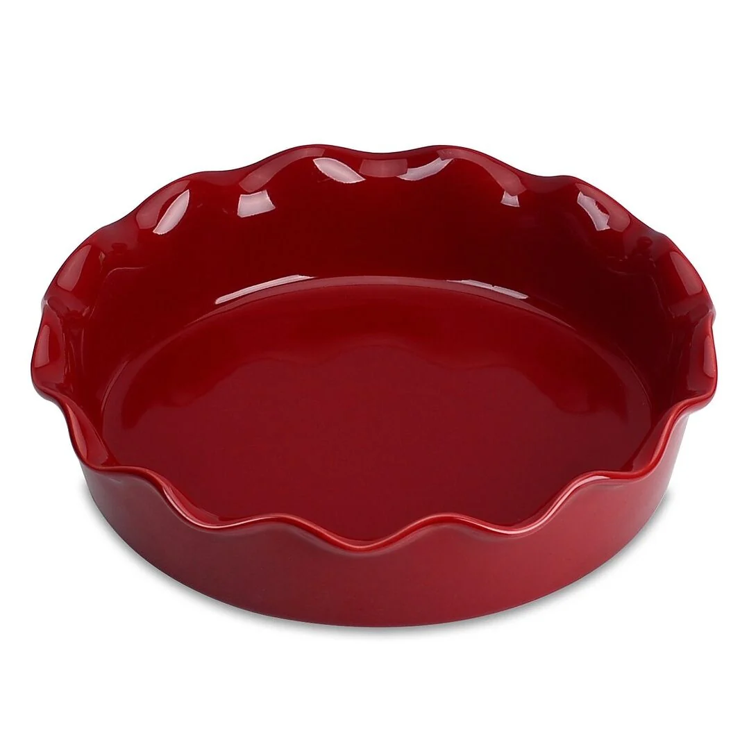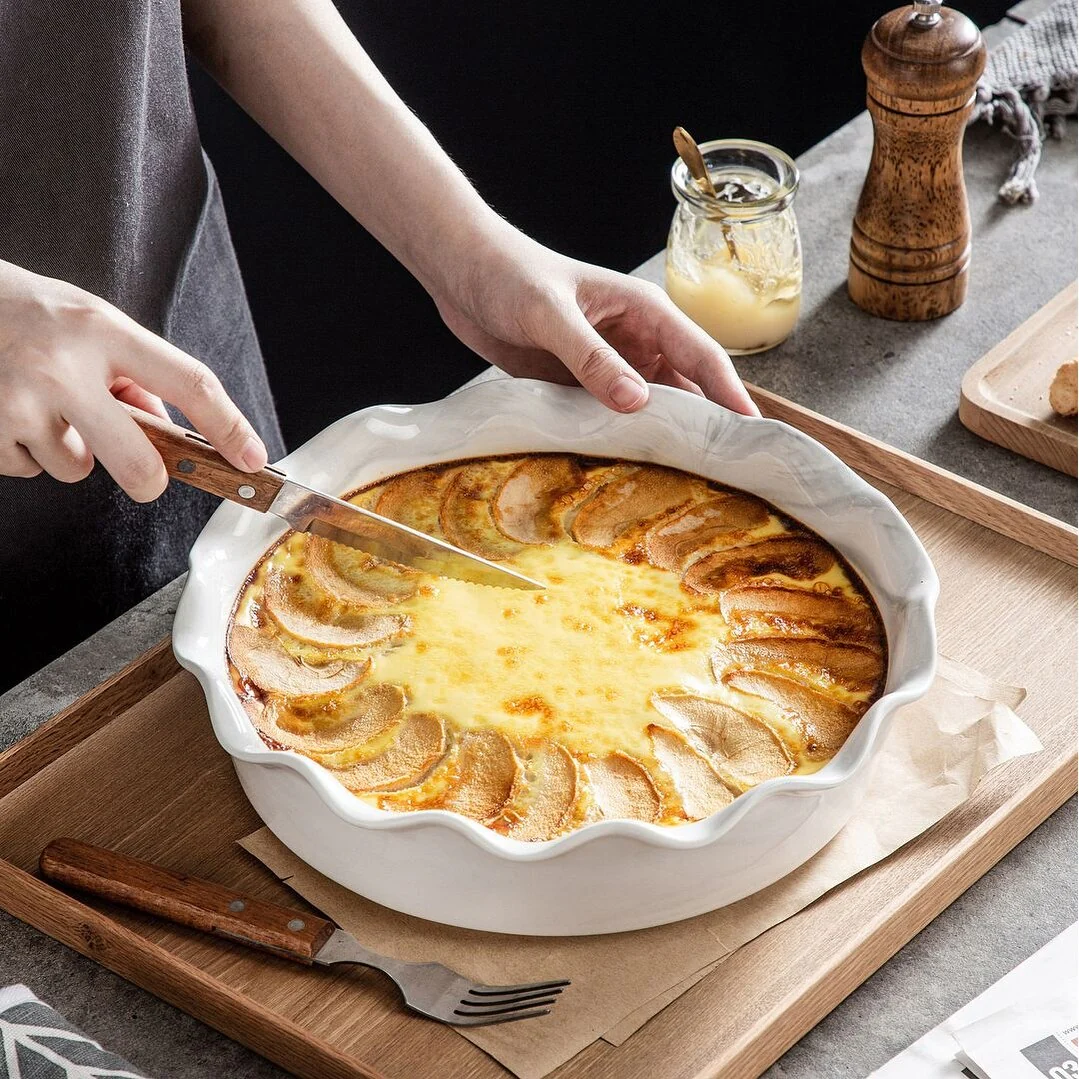 MALACASA Blossom 10.5' Stoneware Pie Pan. Crinkle rim is not only in modern design, but also help guide fingers when fluting crusts, making room for you to grab the pan, even while wearing the bulkiest oven mitts.