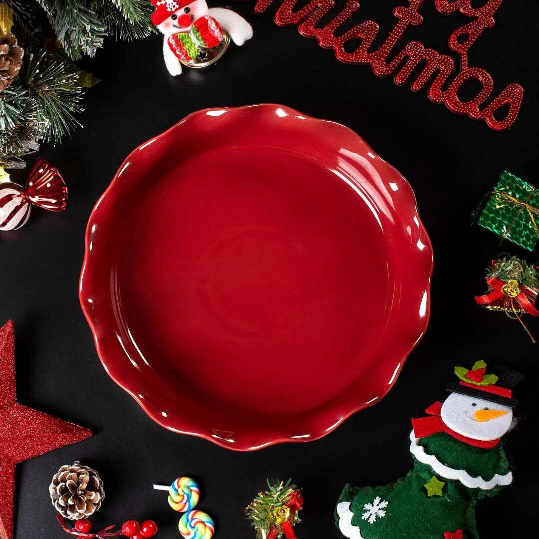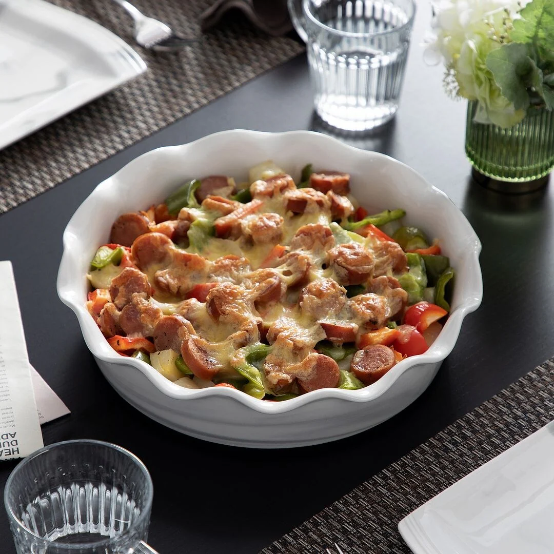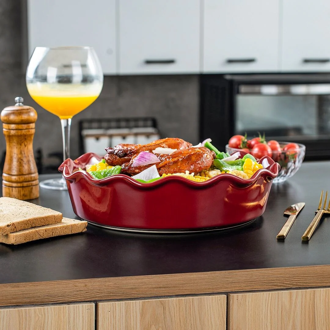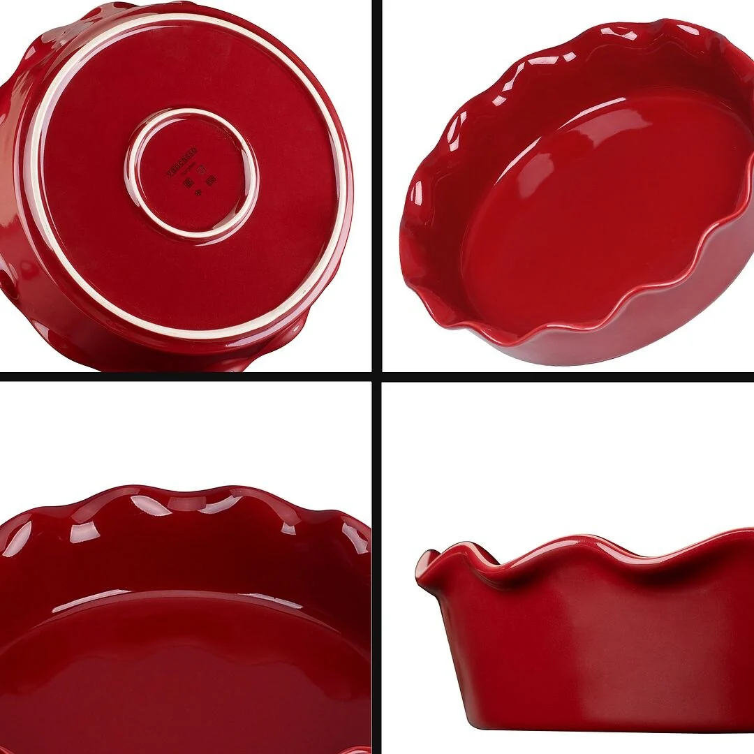 MALACASA Blossom 10.5' Stoneware Pie Pan. Crinkle rim is not only in modern design, but also help guide fingers when fluting crusts, making room for you to grab the pan, even while wearing the bulkiest oven mitts.