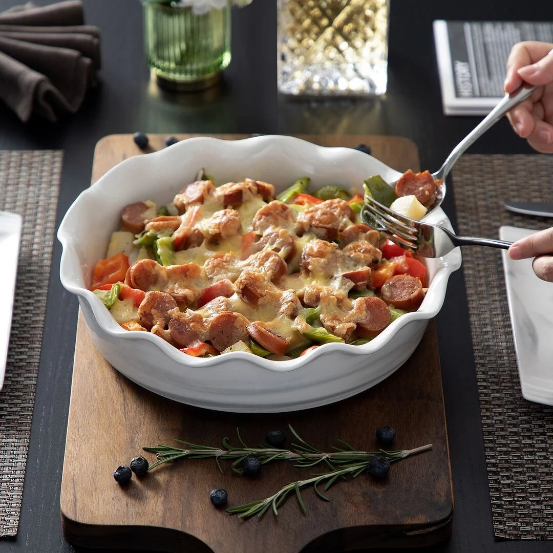 - Good for all kinds of pies, tarts, cheesecake, quiche, versatile enough to be used for roasting, casseroles or any other bakes.