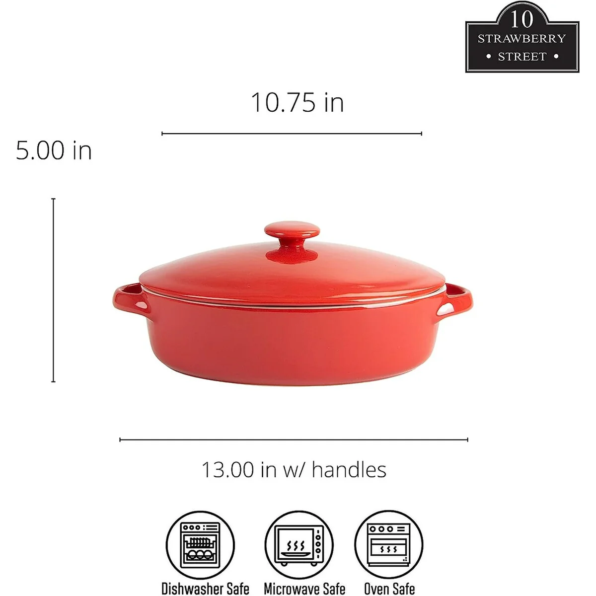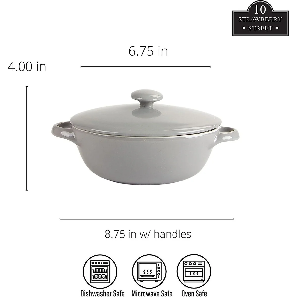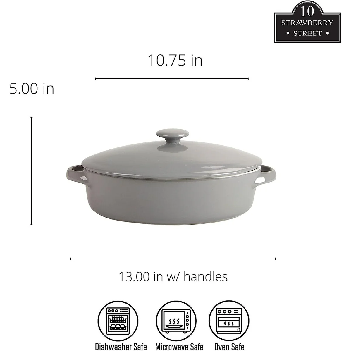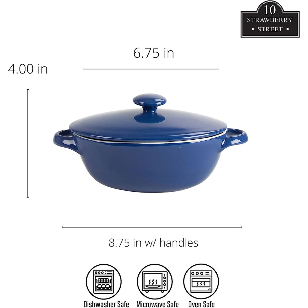 Prep, cook, serve, and store all in one container! This set of 2 covered casserole dishes is made of durable stoneware that is microwave, oven, and dishwasher safe and will not absorb odors or flavors, making them a must-have for every kitchen. Featuring a two-tone color scheme and knobbed lids, you'll love baking your favorite dishes and serving your guests with this great bakeware set from 10 Strawberry Street.