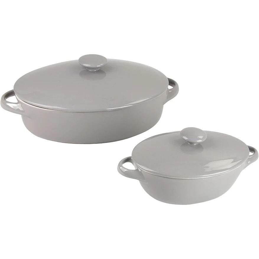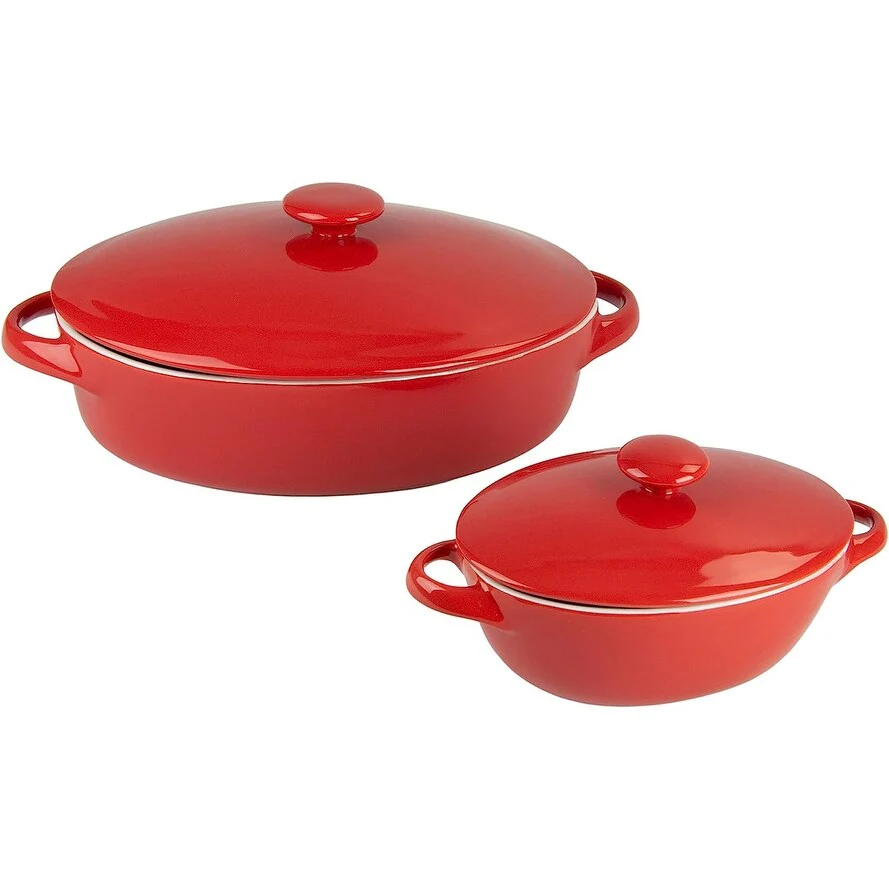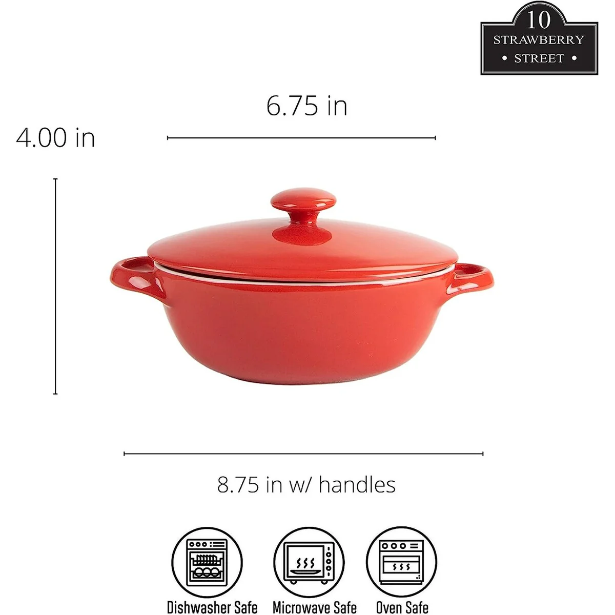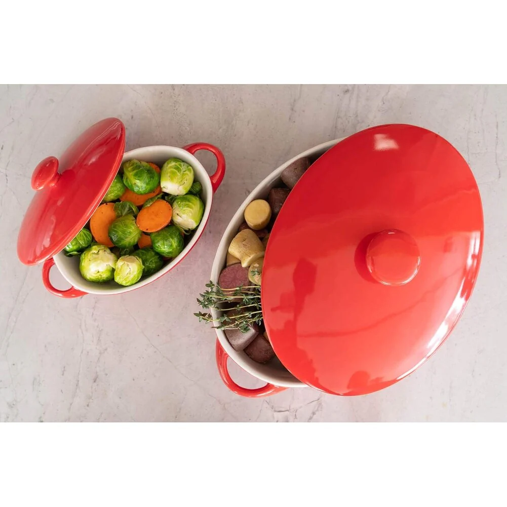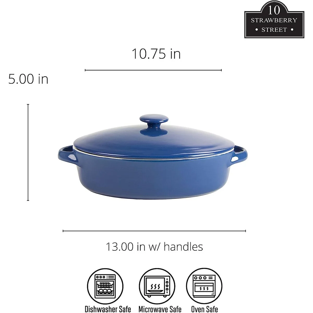 Prep, cook, serve, and store all in one container! This set of 2 covered casserole dishes is made of durable stoneware that is microwave, oven, and dishwasher safe and will not absorb odors or flavors, making them a must-have for every kitchen. Featuring a two-tone color scheme and knobbed lids, you'll love baking your favorite dishes and serving your guests with this great bakeware set from 10 Strawberry Street.