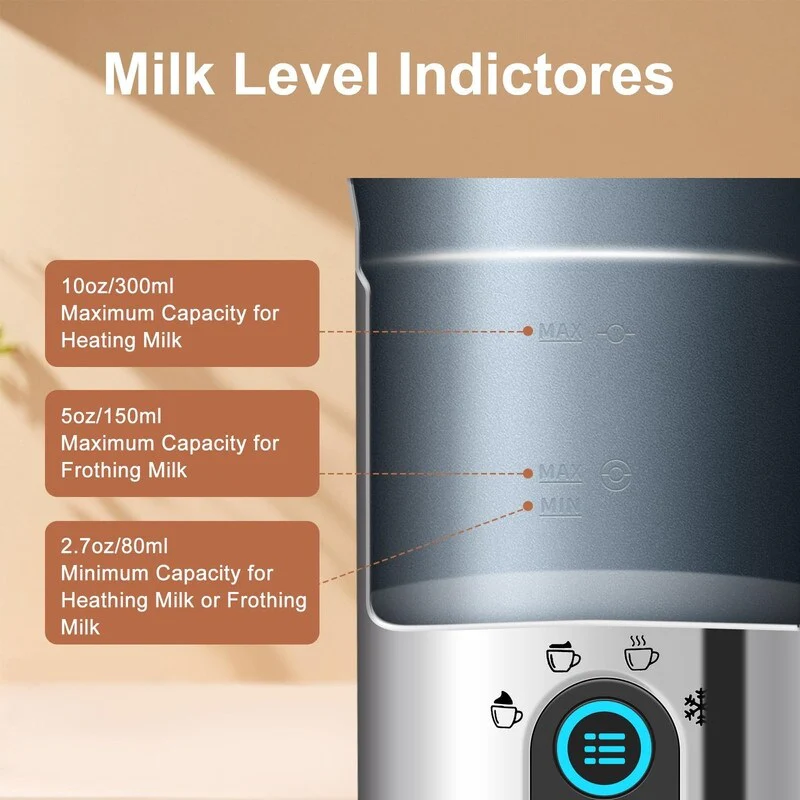 • 4 in 1 Electric Stainless Steel Milk Steamer,10.2oz/300ML Automatic Warm&Cold Milk Foamer