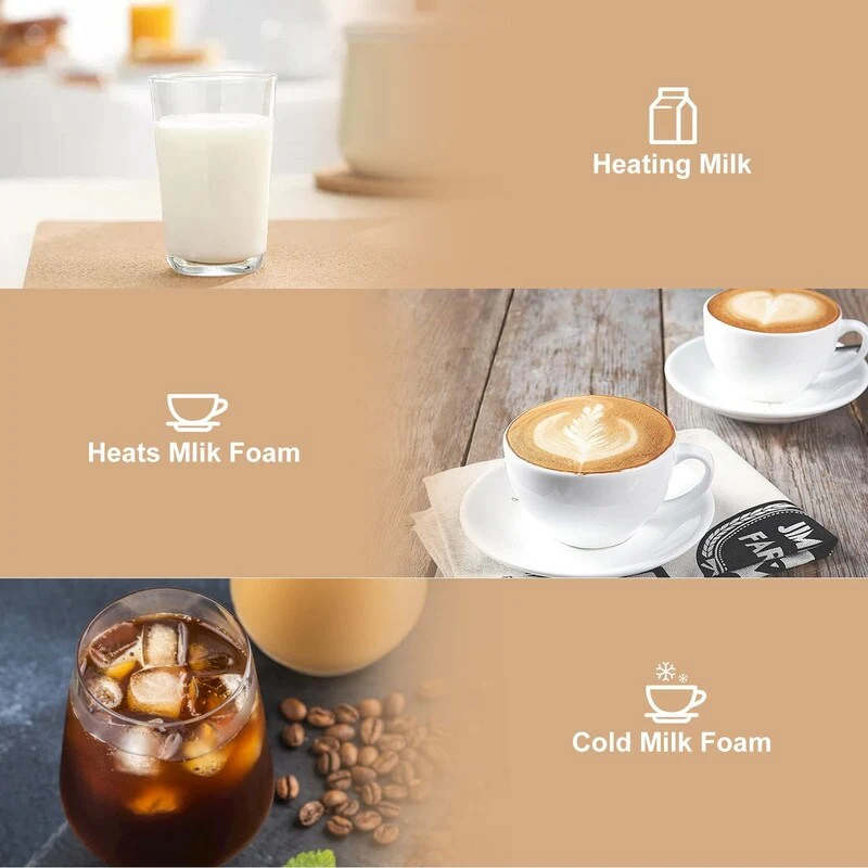 4-in-1: Comes with four functions, one-touch button selection, which can cool, heat, hot milk foam, and dense hot milk foam. It is recommended to choose milk with a fat content greater than 3% for better results.