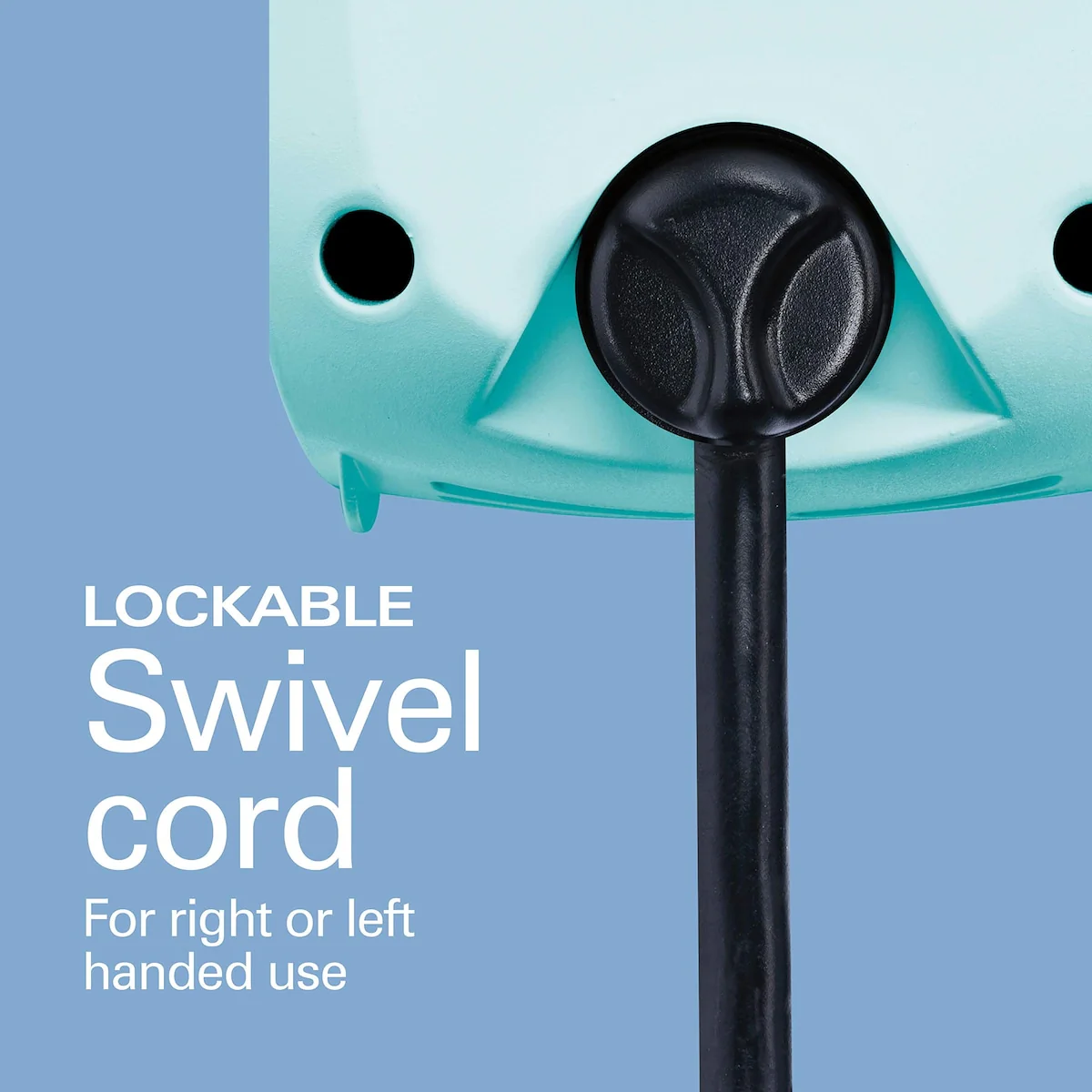 Swivel cord for right or left handed use. Cord adjusts and locks into place to stay out of your way.