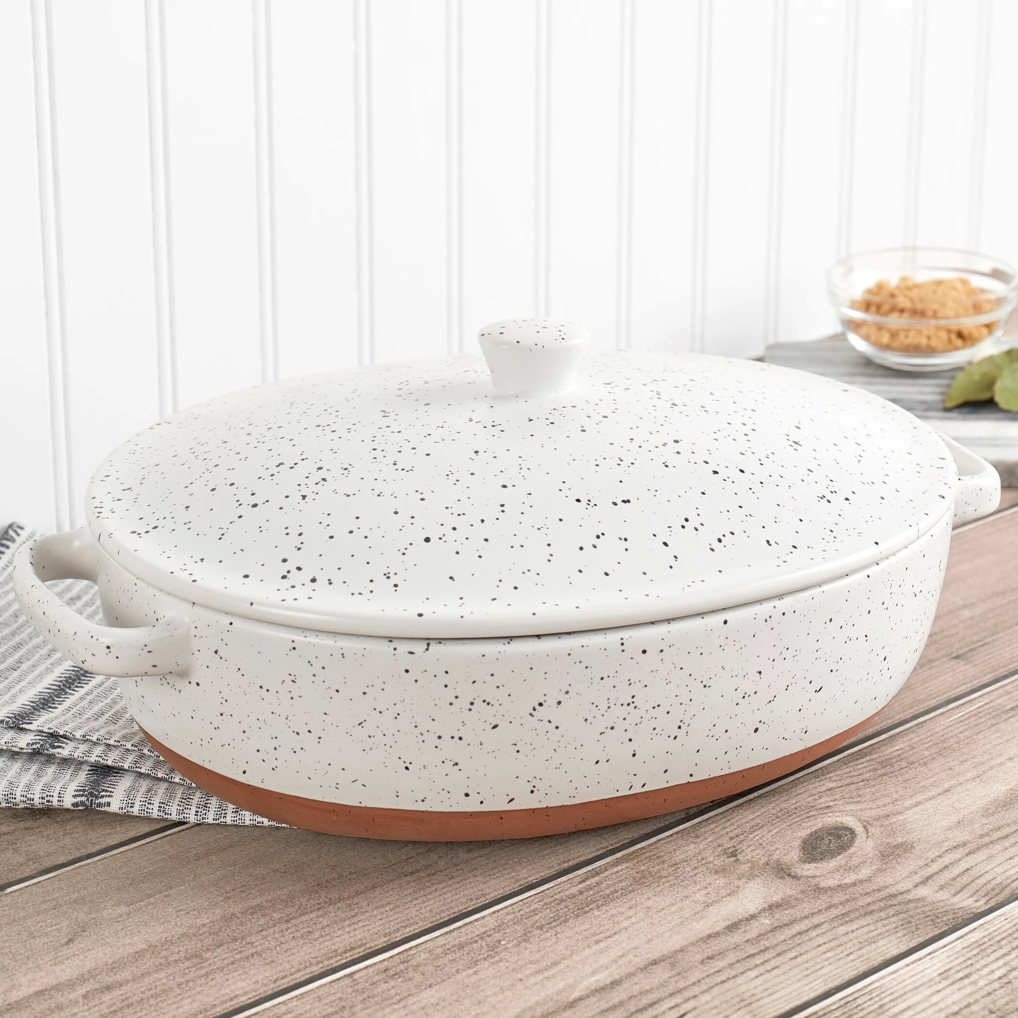 The Speckle Collection from Denmark Tools for Cooks blends modern simplicity with rustic elegance for your everyday kitchen. They have a unique, sleek speckle design, perfect for casual or formal occasions. These baking dishes, crafted from high-quality stoneware, offer excellent heat retention and even cooking, resulting in perfectly cooked dishes. The wide handles are comfortable and secure, providing balance and stability for easy maneuvering. The beautiful non-stick surface is non-porous, non-reactive, and scratch-resistant, with rounded corners to ensure your meals slide off the surface effortlessly with less time spent cleaning stubborn food residues and tedious scrubbing sessions. Perfect for savory casseroles or sweet cobblers, these versatile baking dishes have you covered. Don't miss out on the ultimate addition to your kitchen!