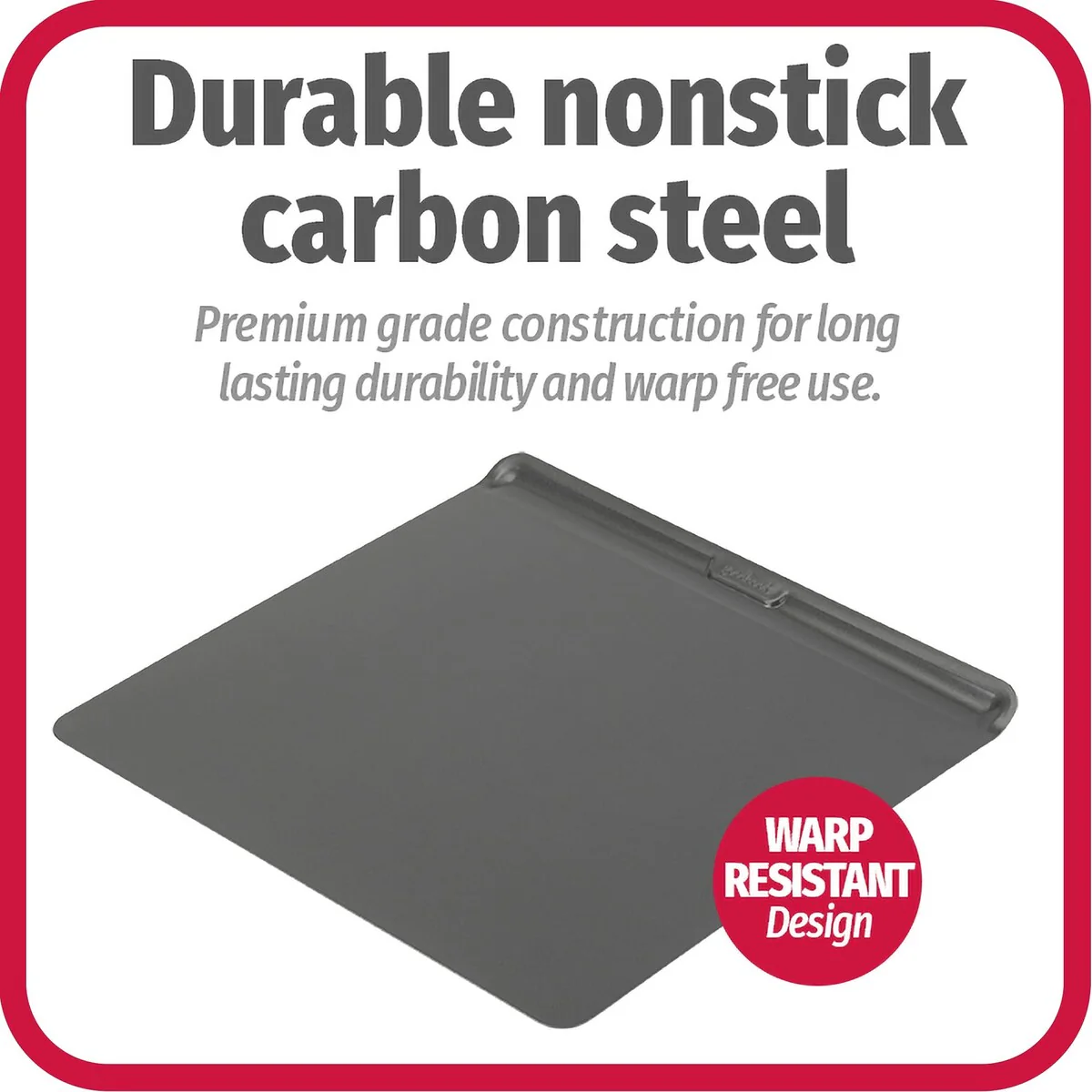 Bring high-quality bakeware and baking tools to your home kitchen with the GoodCook Airperfect Nonstick Carbon Steel Cookie Sheet. This medium size rectangular cookie sheet conveniently offers plenty of room and great results for all your cookie baking tasks. In addition to cookies, this versatile baking tray is also ideal for baking biscuits, pastries, and various other baked goods as well as roasting vegetables, heating up pizza rolls, and much more. This cookie tray has over baking under control with its no burn insulation which circulates hot air between two layers to ensure even heating with less scorching and has a textured bottom that heats up quick while moisture is retained to prevent the top from overheating. Ergonomically designed, it features enhanced handles for a superior grip and safe handling even while wearing oven mitts as well as a nonstick surface coating that allows baked goods to slide off easily, eliminating the need for picking them up. Constructed with high-quality premium grade carbon steel, this sheet provides long-lasting durability that resists warping and is dishwasher safe for a quick and easy clean up after use. For over 30 years, GoodCook has created the tools that have made life in the kitchen easier and more enjoyable. As weve grown, we strived to stay on trend and continually incorporate more function and value into our kitchenware products. We take pride in the fact that GoodCook products are being used every day, and that our name is recognized as a helpful resource supplying products, recipes and inspiration for home cooks across America.
