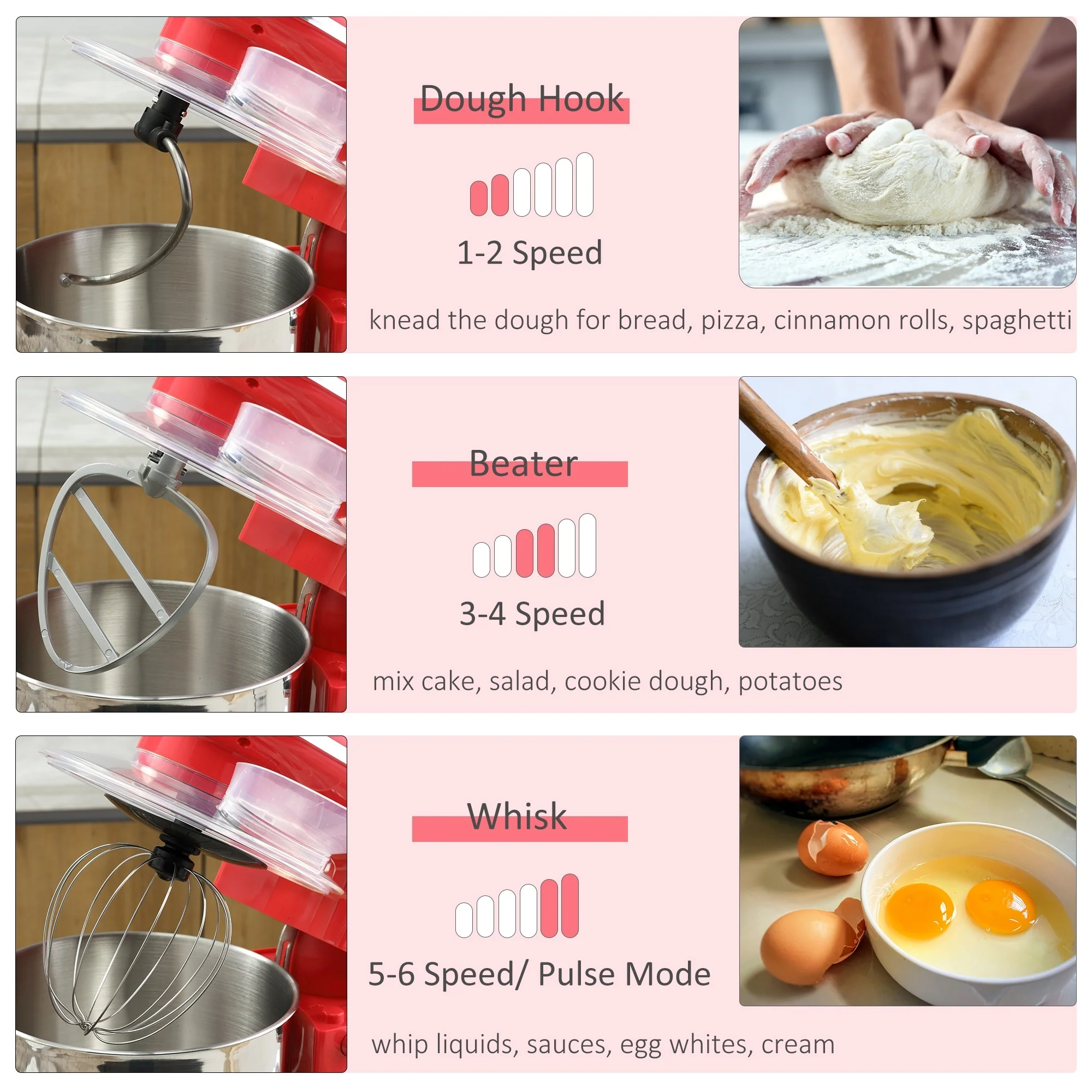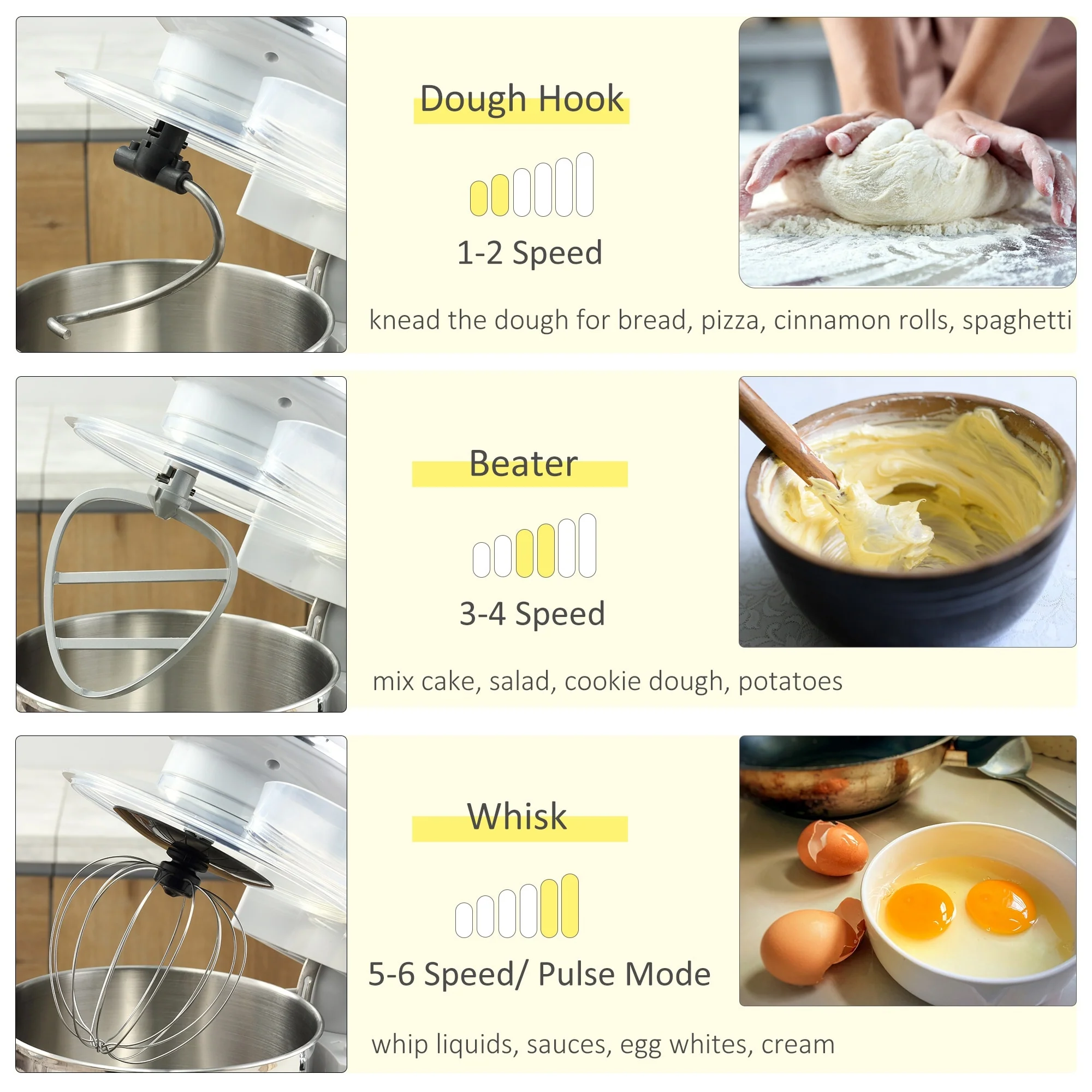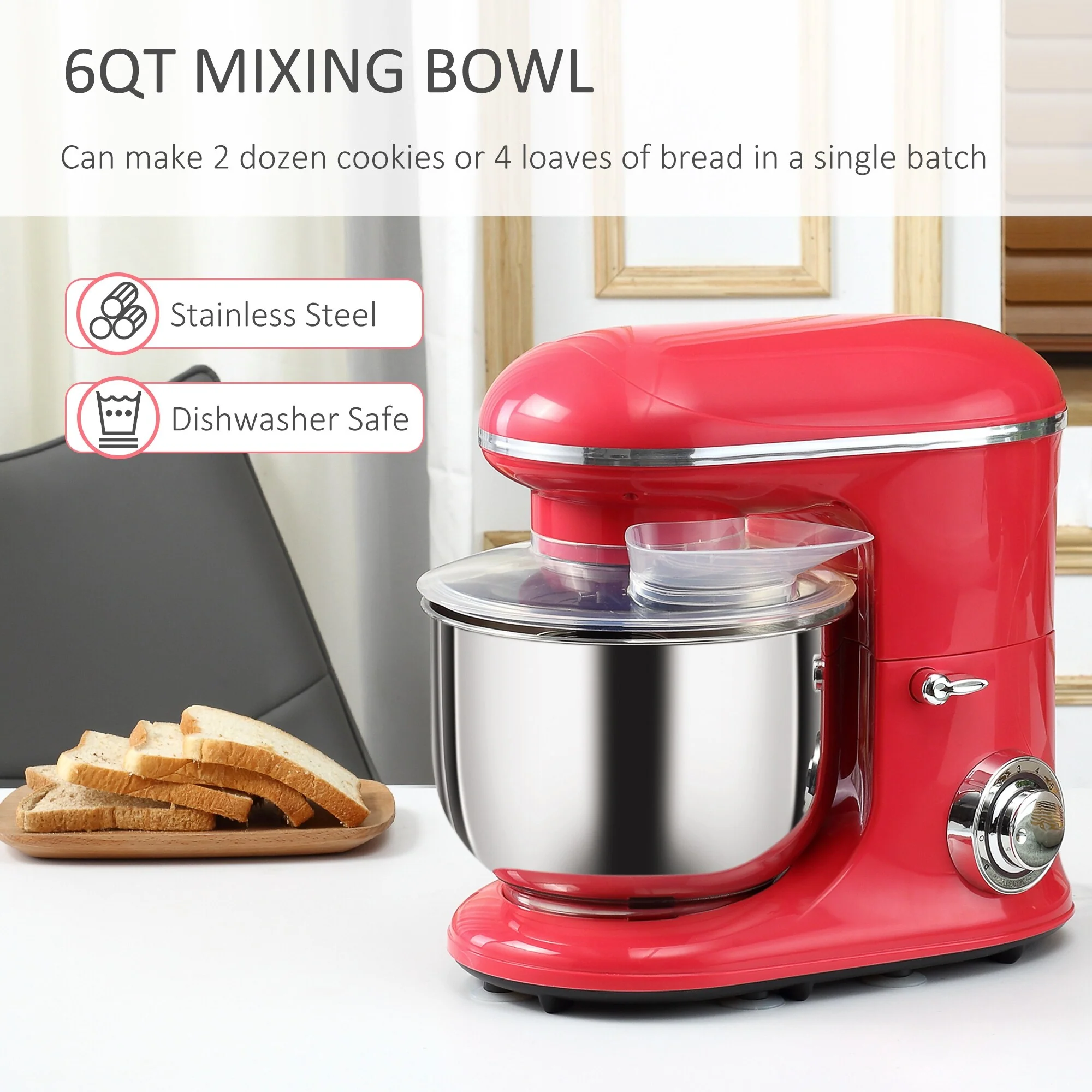 • HOMCOM Stand Mixer with Splash Guard, Electric Hand Mixer Set with 6 qt. Large Mixing Bowl - 14.5 x 9 x 14.5