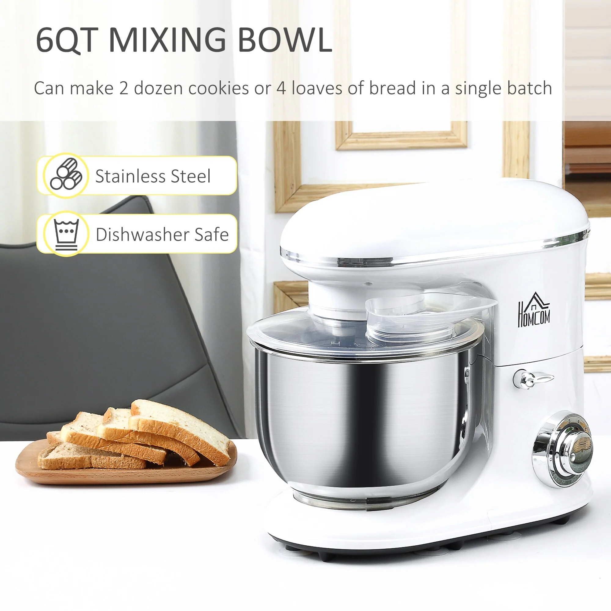 HOMCOM Stand Mixer with Splash Guard, Electric Hand Mixer Set with 6 qt. Large Mixing Bowl - 14.5 x 9 x 14.5