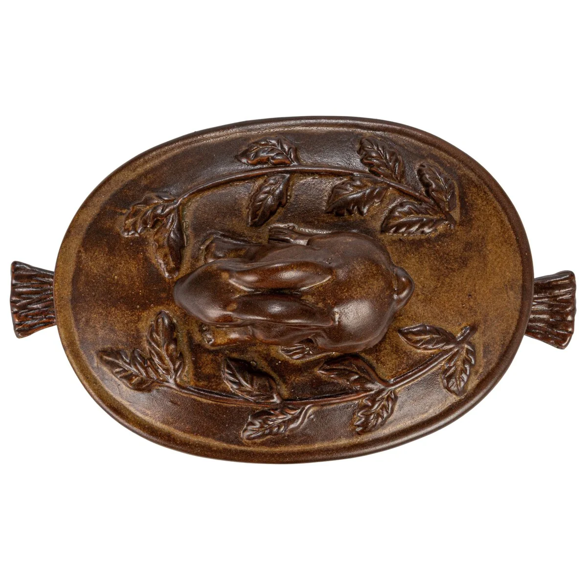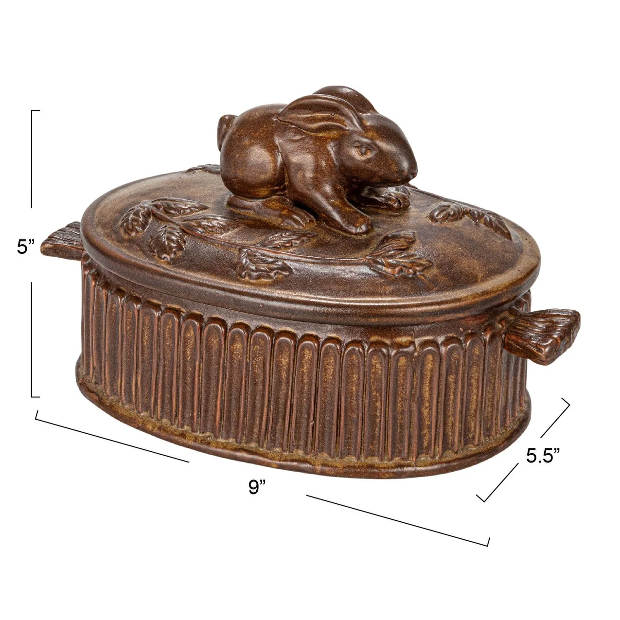 - Bake and serve any seafood dishes in this rustic stoneware baker, featuring a realistic rabbit design and a matte brown reactive glaze