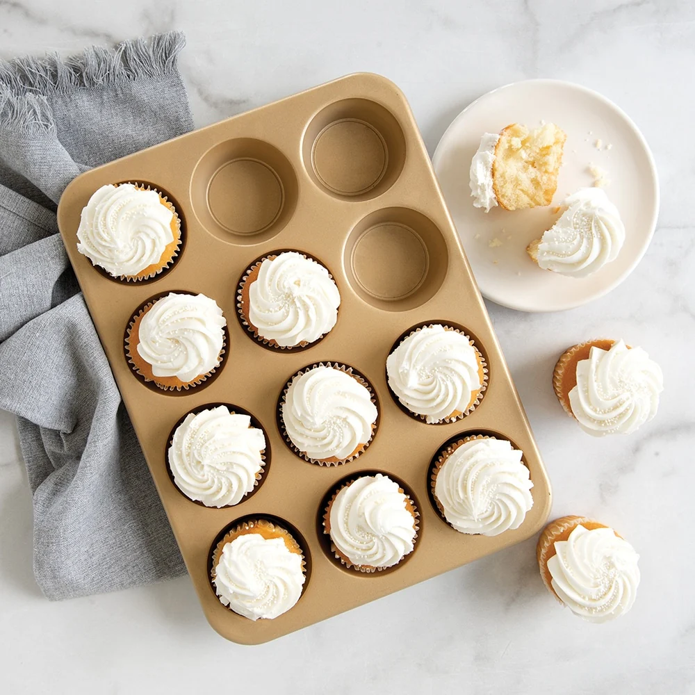 A necessity for any chef's kitchen this Nonstick Naturals Bakeware Muffin Pan is the best way to create up to 12 perfect, evenly baked muffins. It's nonstick, cast aluminum design allows for easy clean up and makes it durable enough to last for years. Proudly Made in the USA by Nordic Ware. Nordic Ware is family owned and proudly made in the USA for over 75 years. Famously known for the Bundt Pan Nordic Ware also manufacturers other high quality kitchenware products which include; everyday Bakeware, Cookware, Grilling, Microwave and Kitchen Accessories. We pride ourselves in exceeding customer expectations, so when you purchase from Nordic Ware you are buying direct from the manufacturer and any questions or concerns with your purchase will be handled directly.