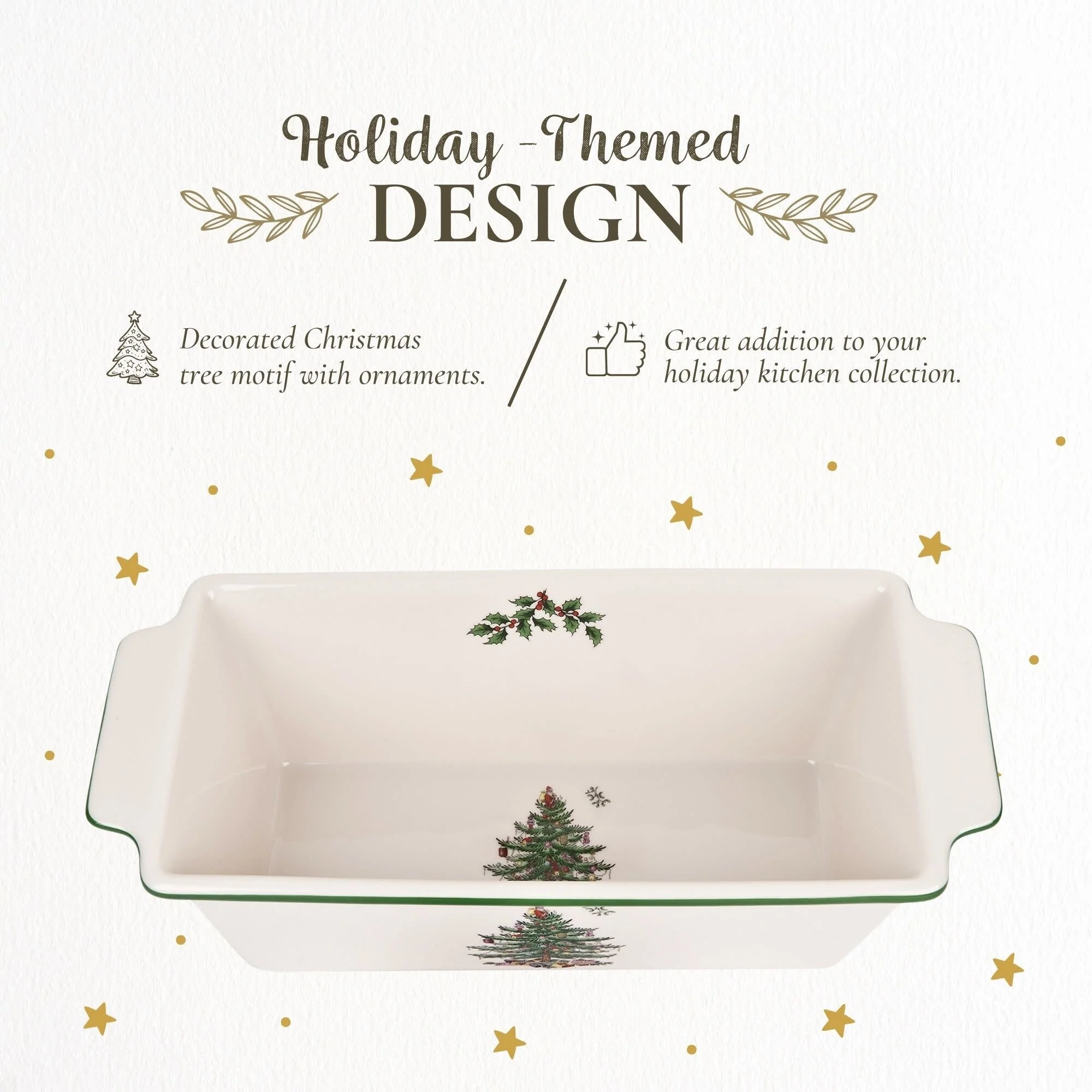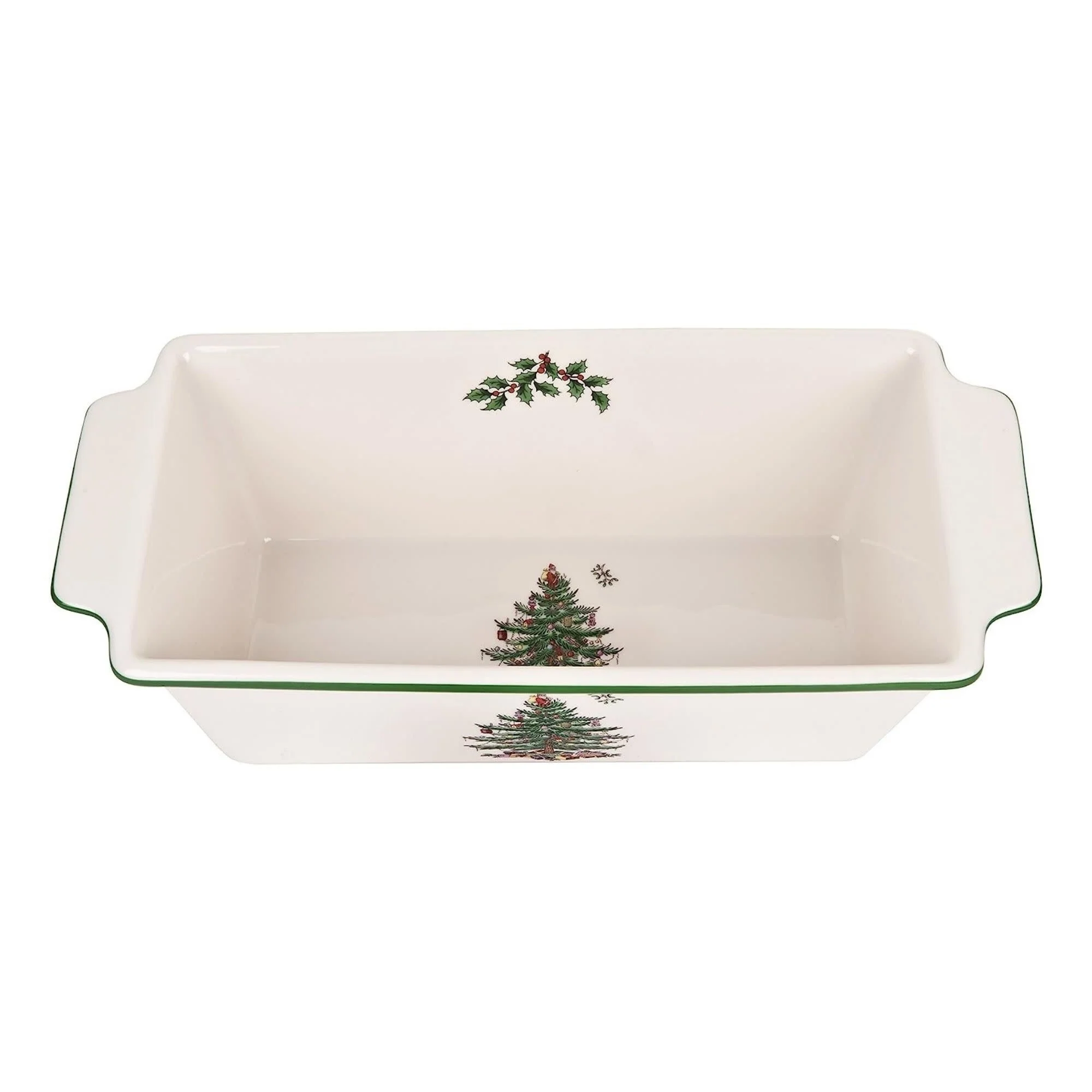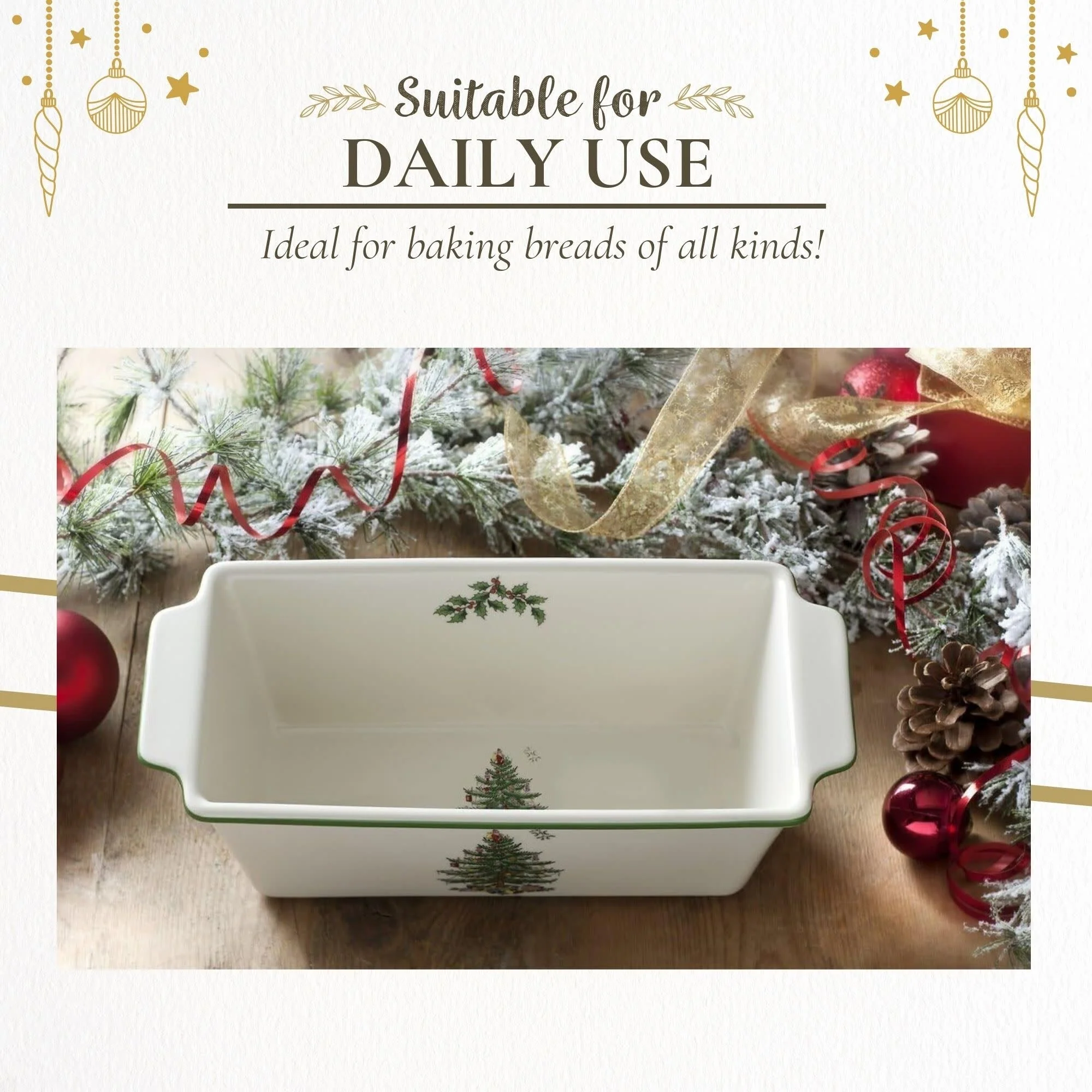 - Holiday Bakeware with Festive Design: Enhance your seasonal baking with the Spode Christmas Tree Loaf Pan, an ideal choice for crafting breads, banana bread, meatloaf, and pound cake.