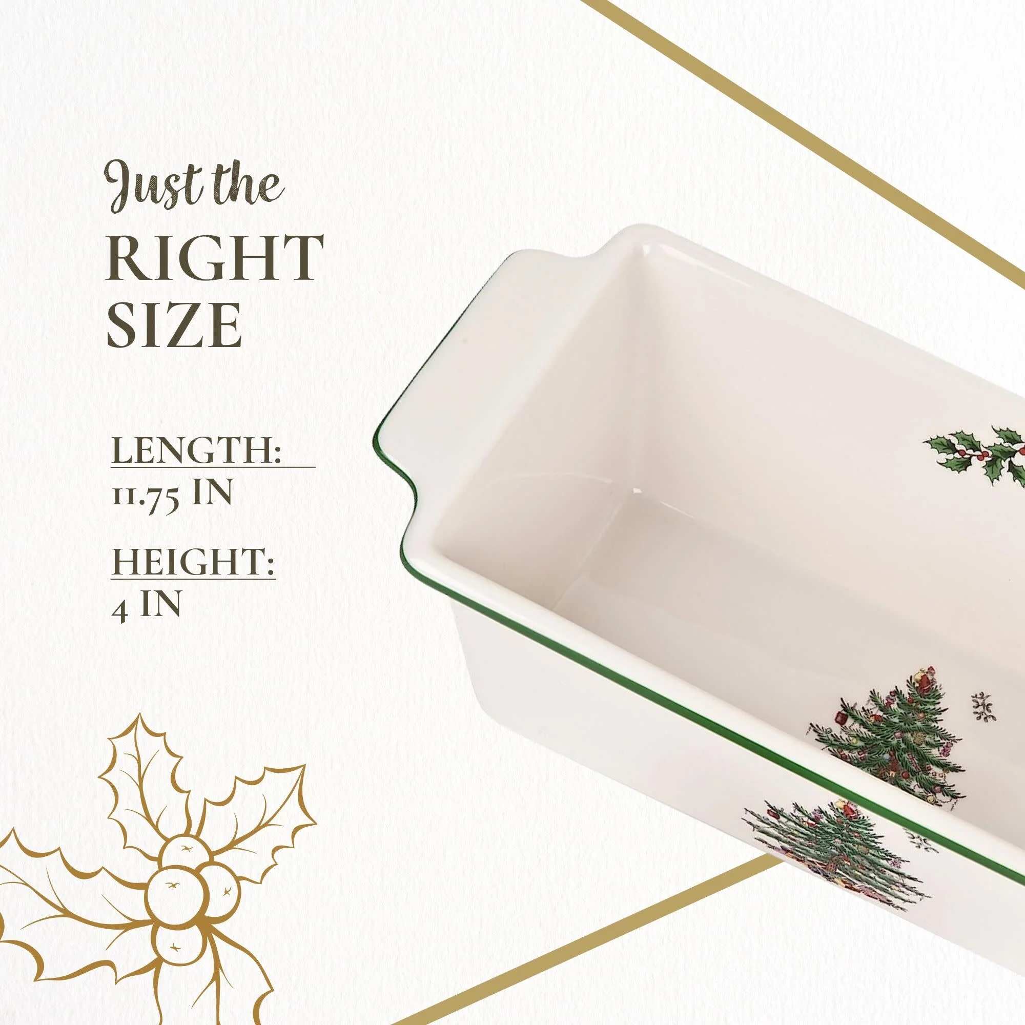 Spode Christmas Tree Loaf Pan - Non-Stick Earthenware Bread Pan for Baking, Holiday Bakeware, Banana Bread, Meatloaf, Pound Cake, Dishwasher and Oven Safe (11.75' x 5.5') - New