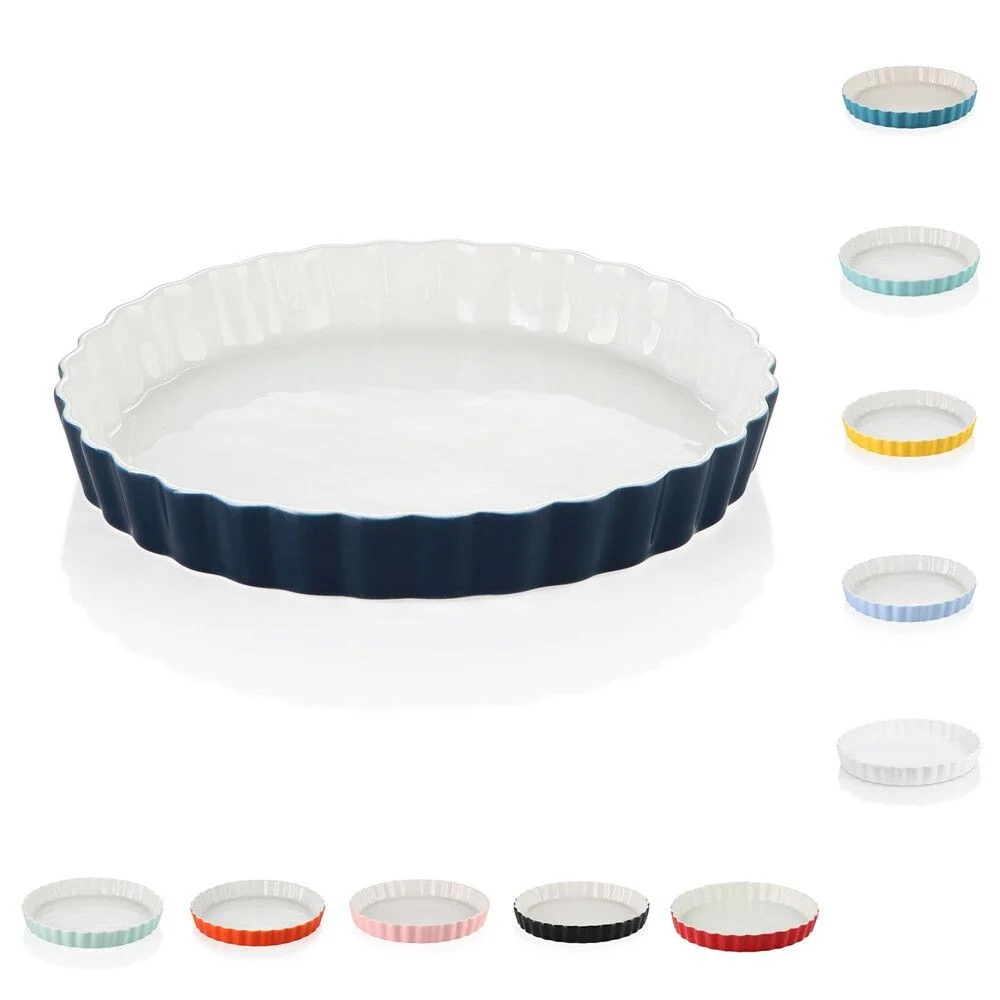 LOVECASA 11 One Piece Porcelain Round Pie Pan Quiche Pan