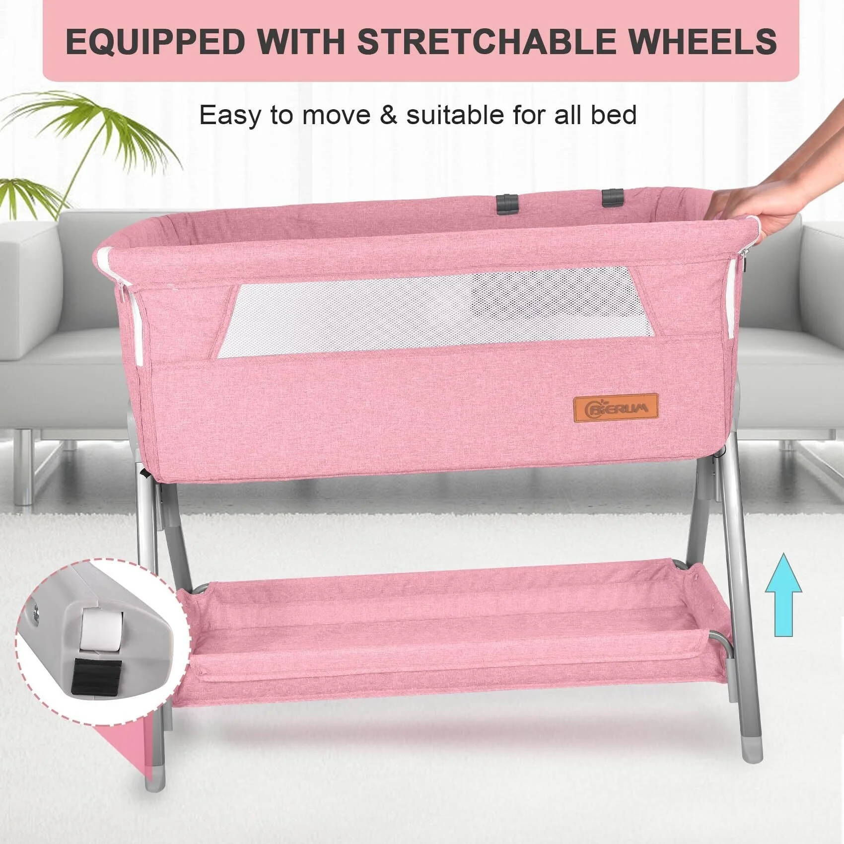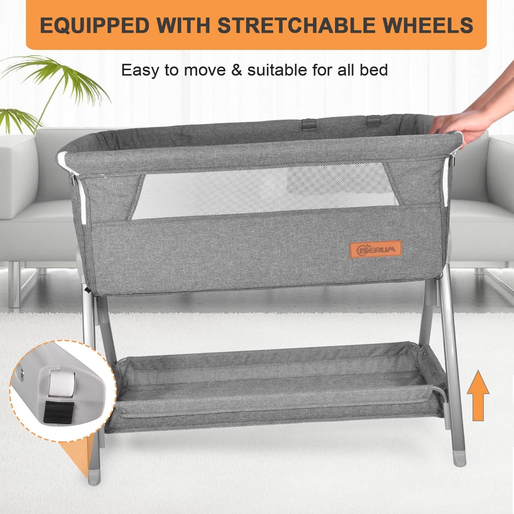 ?? Easy to Move and Clean: Our bassinet bedside sleeper has four casters. If you want to move it, you need to lift one side 10-20 degrees to push the bassinet through the wheel. Besides, the sheet and side fabric is removable by zip-off, ensuring a clean and comfortable space for your little one to rest.