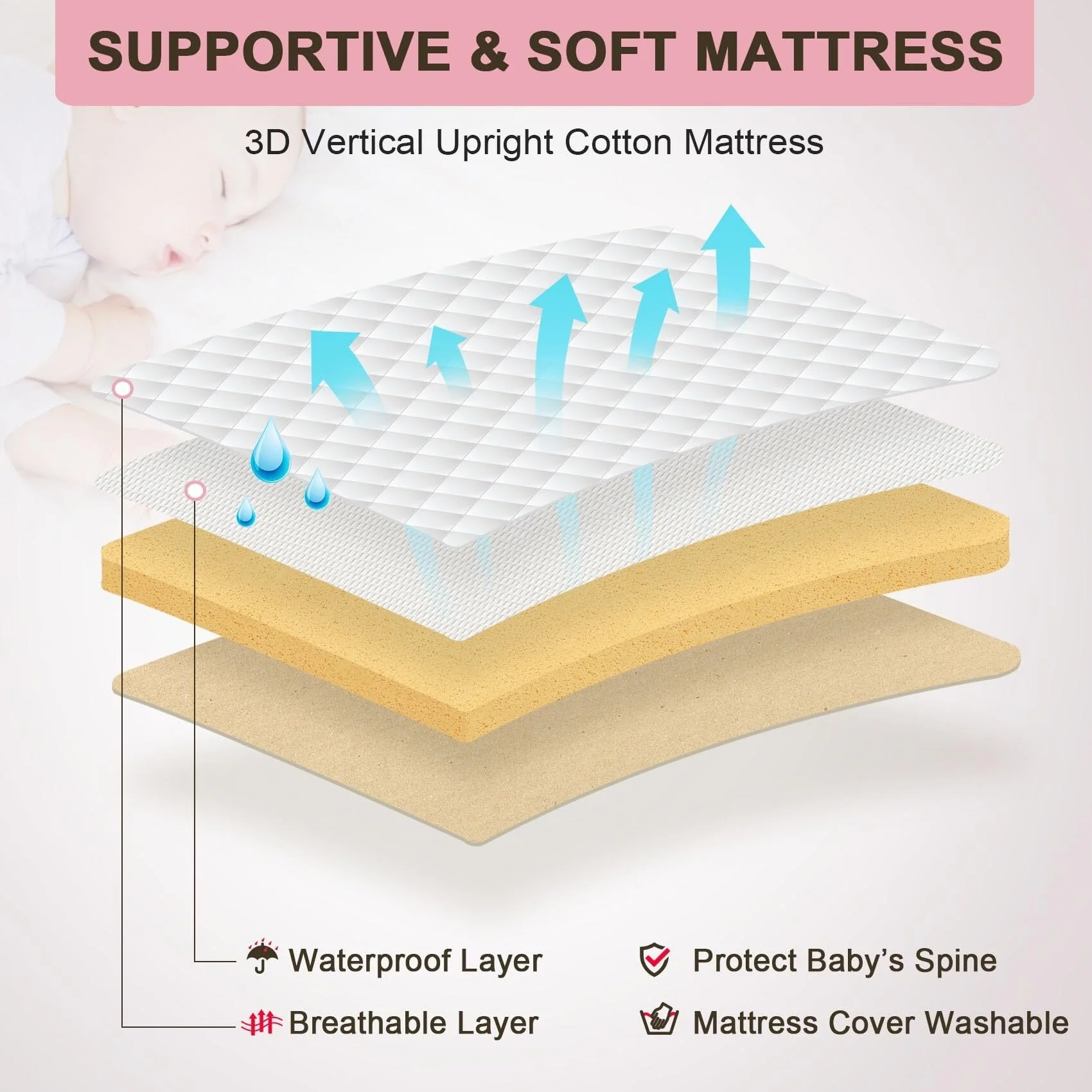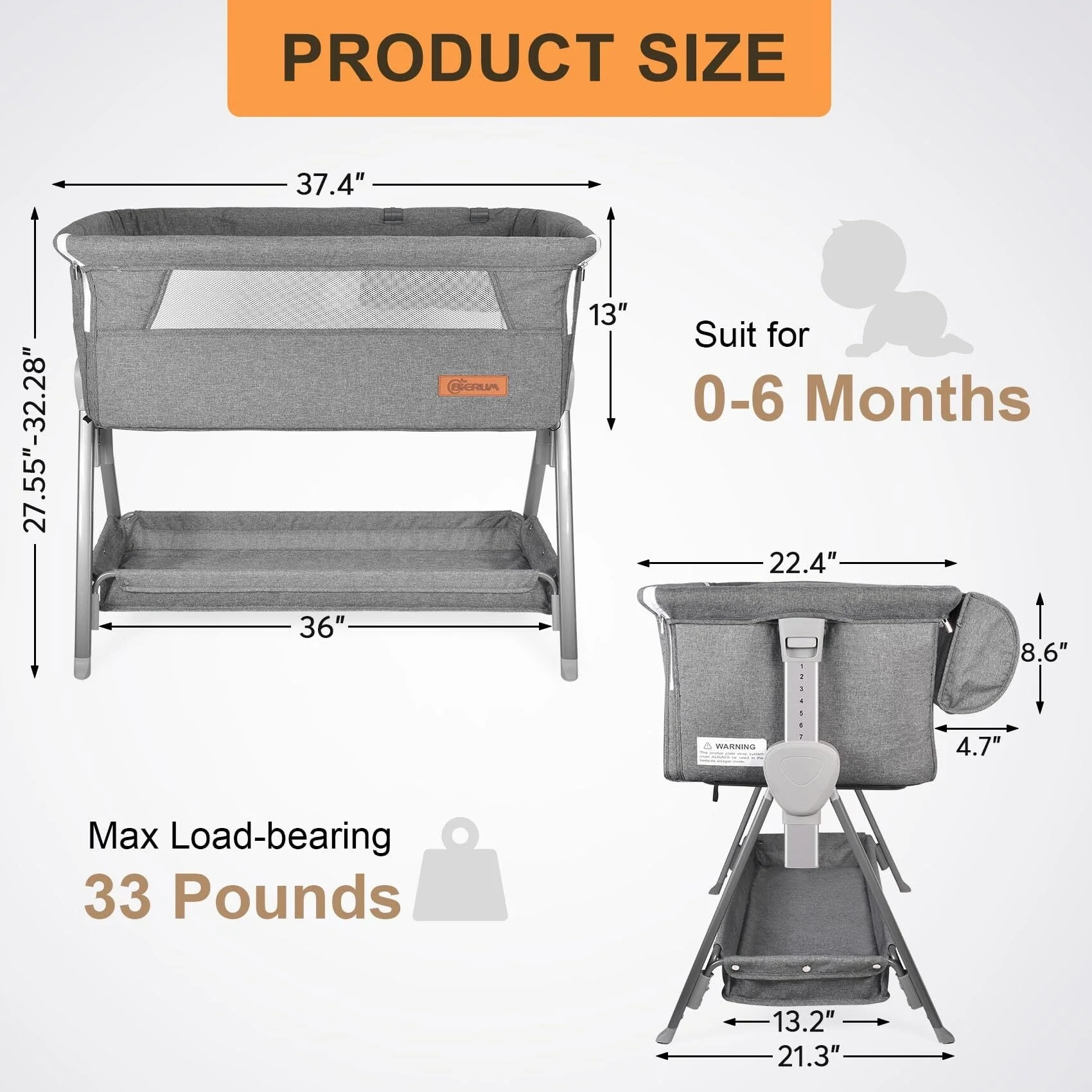 ?? 3 in 1 Baby Bassinet: Baby bedside bassinet can be used as a side-down baby bed, bedside sleeper, or stand-alone baby crib. This bassinet bedside sleeper comes with a spacious extra-thick mattress(33' L x 19.88' W x 1.18' H). The mattress composed of high-density memory foam is soft for baby sleeping, including a waterproof & breathable sheet for easy cleaning. The scientific design provided all-around support and protection for your baby's spine. Allow the baby to have a nice sleep.