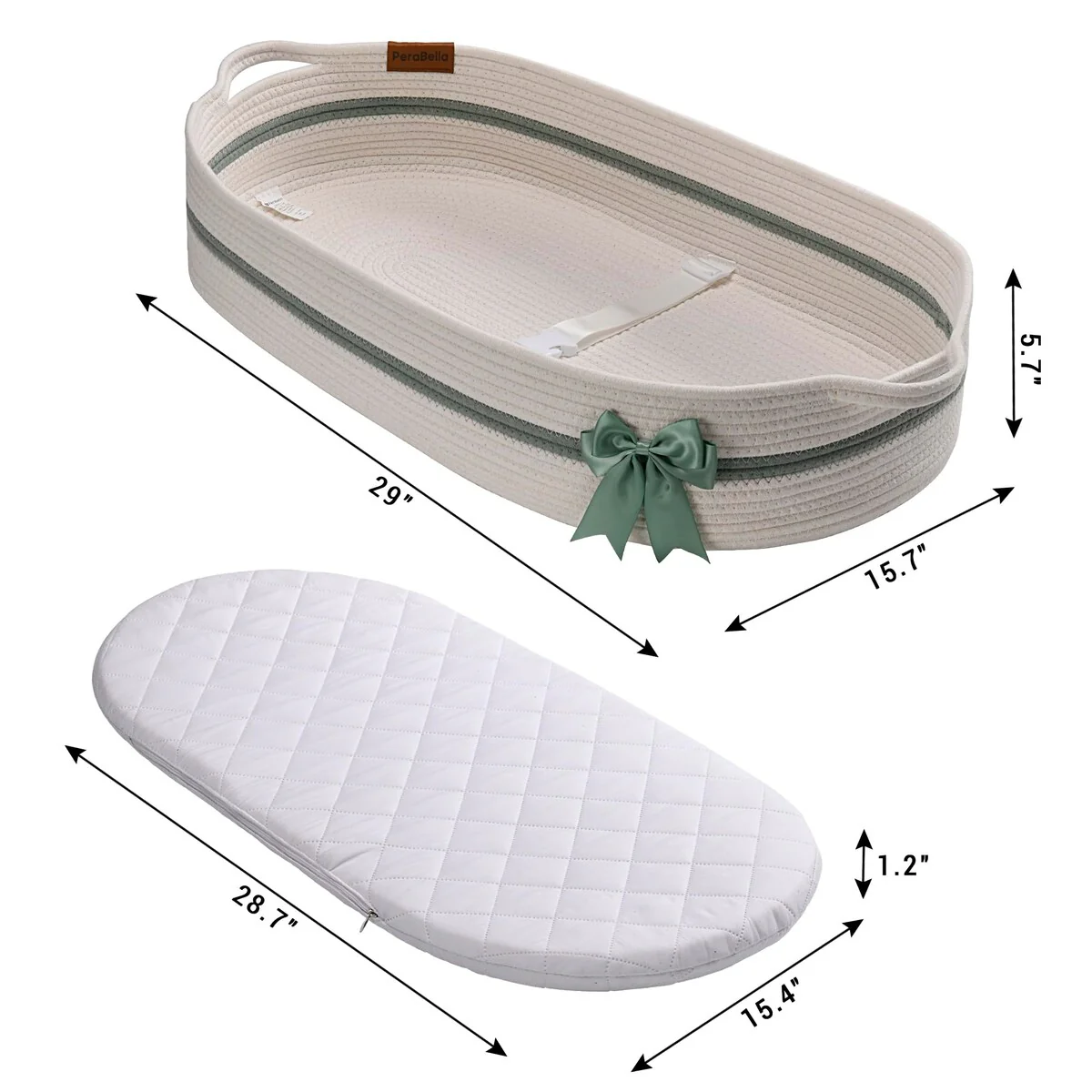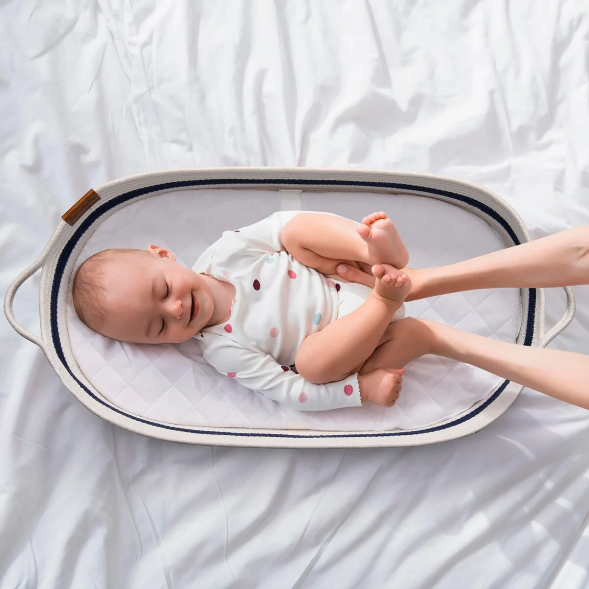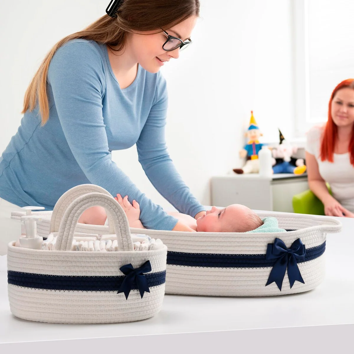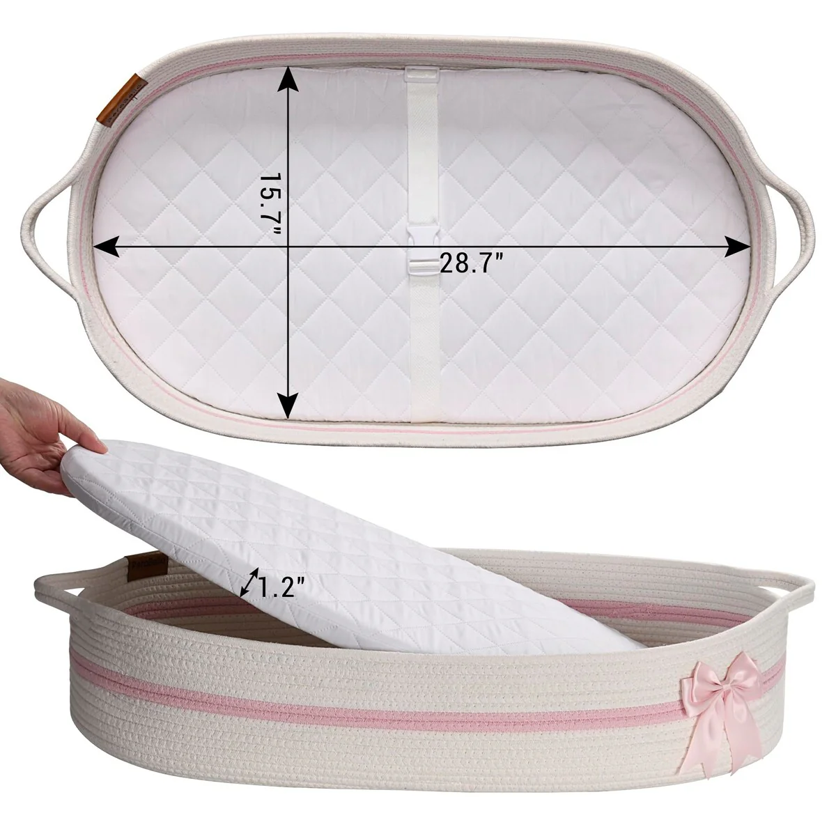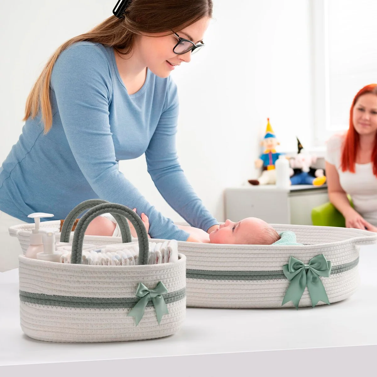 MULTI-FUNCTIONAL & EASY TO CARRY: Our diaper changing station features durable handles. It can be used on a baby changing table, dresser, bed, sofa, or car while traveling. As the baby grows, the basket can be used for toys or as a stylish storage option in any room of your home. Additionally, it can serve as photography props, laundry baskets, toys, or clothing storage organizer. See more product details