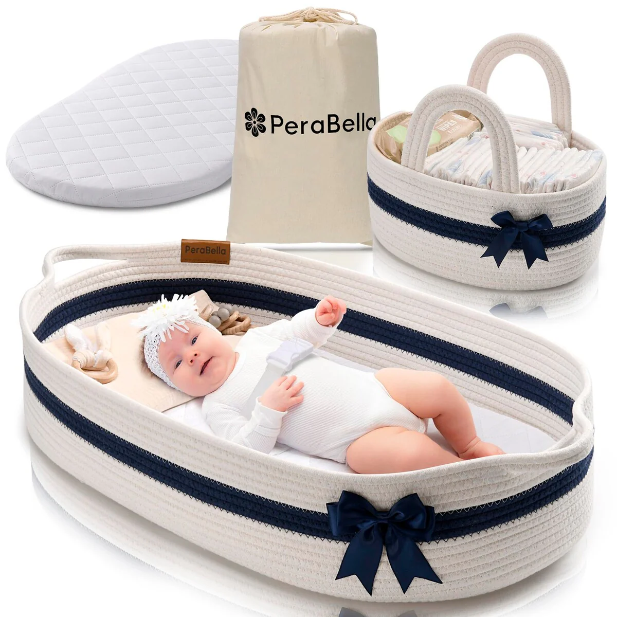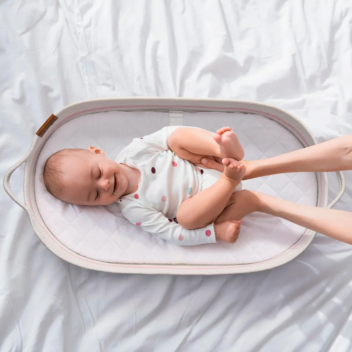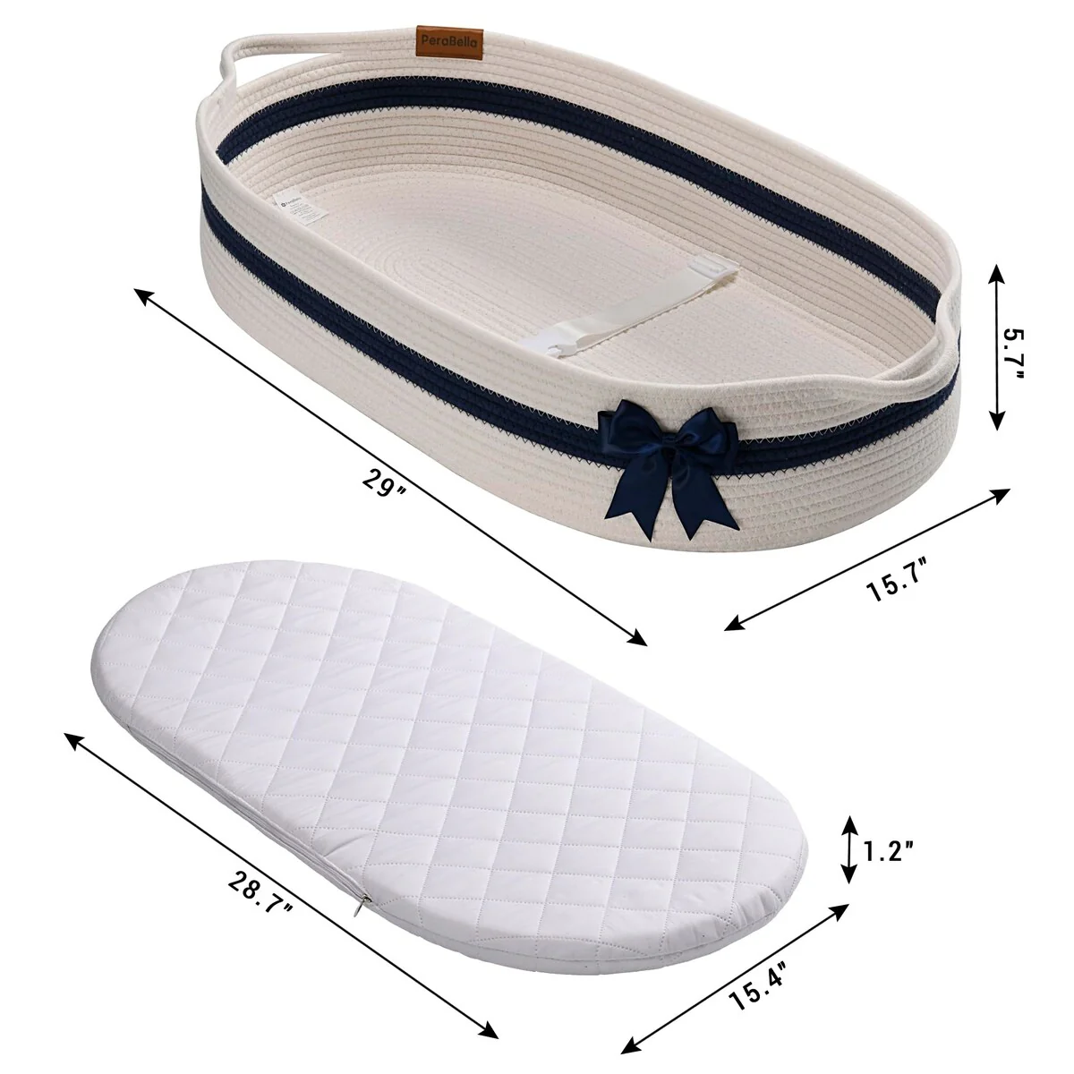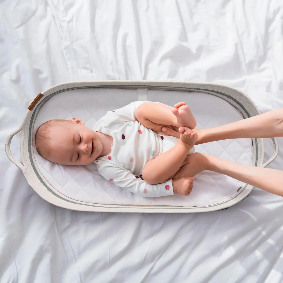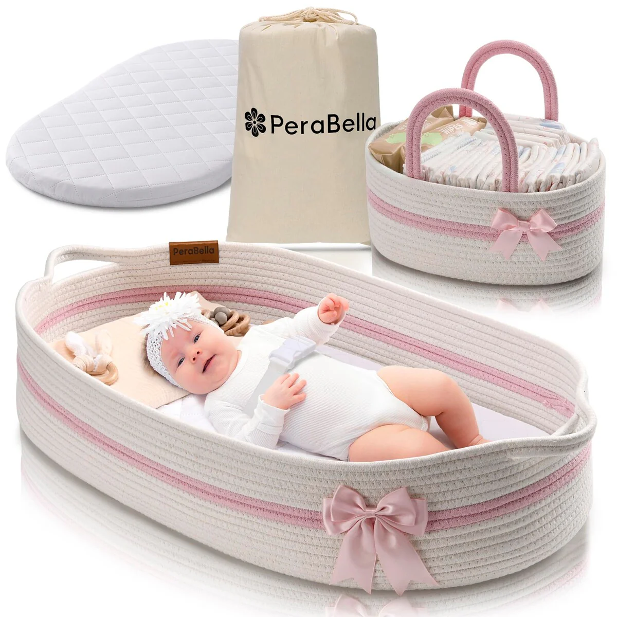 MULTI-FUNCTIONAL & EASY TO CARRY: Our diaper changing station features durable handles. It can be used on a baby changing table, dresser, bed, sofa, or car while traveling. As the baby grows, the basket can be used for toys or as a stylish storage option in any room of your home. Additionally, it can serve as photography props, laundry baskets, toys, or clothing storage organizer. See more product details