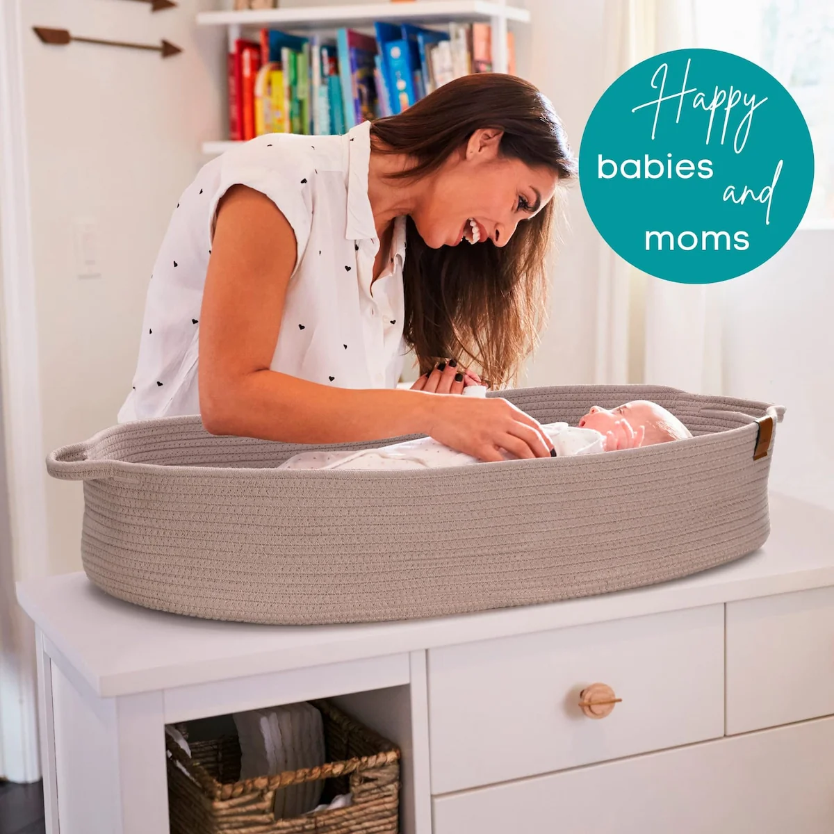 SOFT AND SUPPORTIVE STRUCTURE: This changing tray for dresser top is lightweight, durable, and has a beautiful design with thick walls that stand upright. Our changing basket is handwoven using natural cotton rope. Our large changing basket measures 29.5' x 16.1' x 5.5'