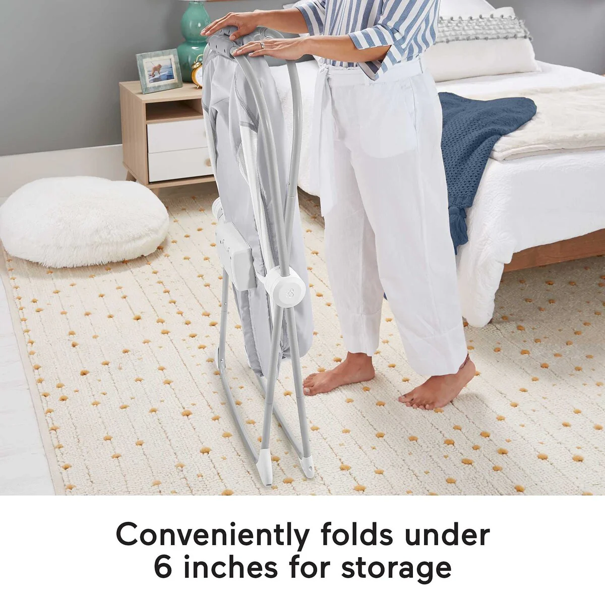 Bassinet has lightweight frame and slim fold (under 6 inches), so it's easy to take along or stow away