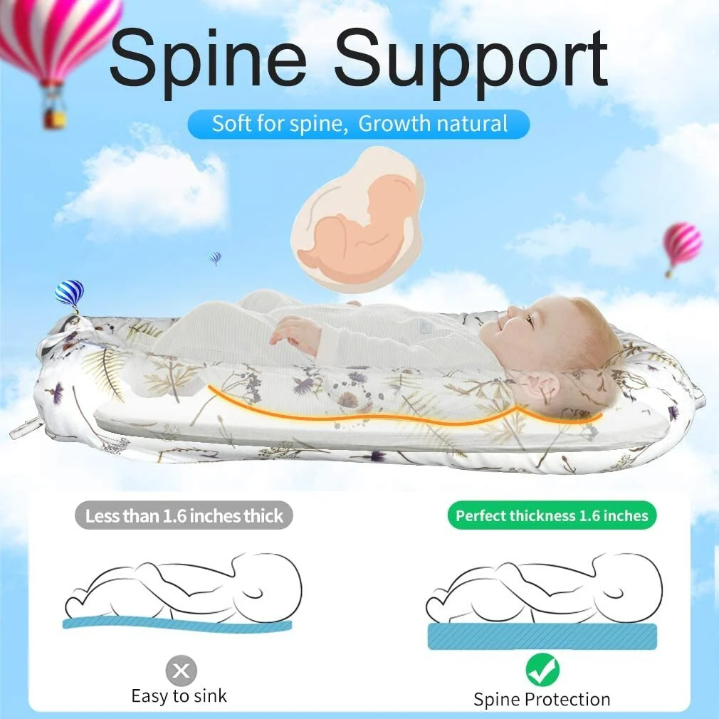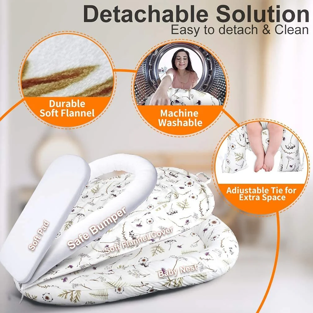 🌞【All for Child Safe & Comfortable】Breathable Flannel Fabric - Our portable baby lounger adopts super soft pearl fabric & 3D polyester as the filling's material. Upgraded polyester skin-friendly material touch silky and care for the baby's sensitive skin gently.