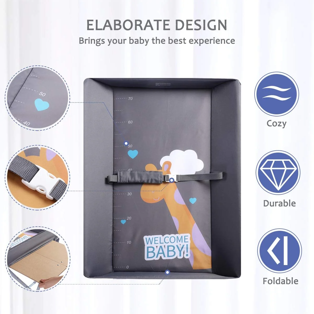 ❀[SAFE & STABLE CONSTRUCTION] - The baby changing station is uniquely built for sturdy durability and long-lasting use. Safe and skin-friendly OXFORD FABRIC and high grade rust free STEEL FRAME with powdered antistatic coating forbid static electricity to ensure your baby safety. Meanwhile, the Built-in Foldable MDF SUPPORT, the SAFETY BELT and the 4-Side PROTECTIVE FABRIC PLATES provide absolute security for your babies