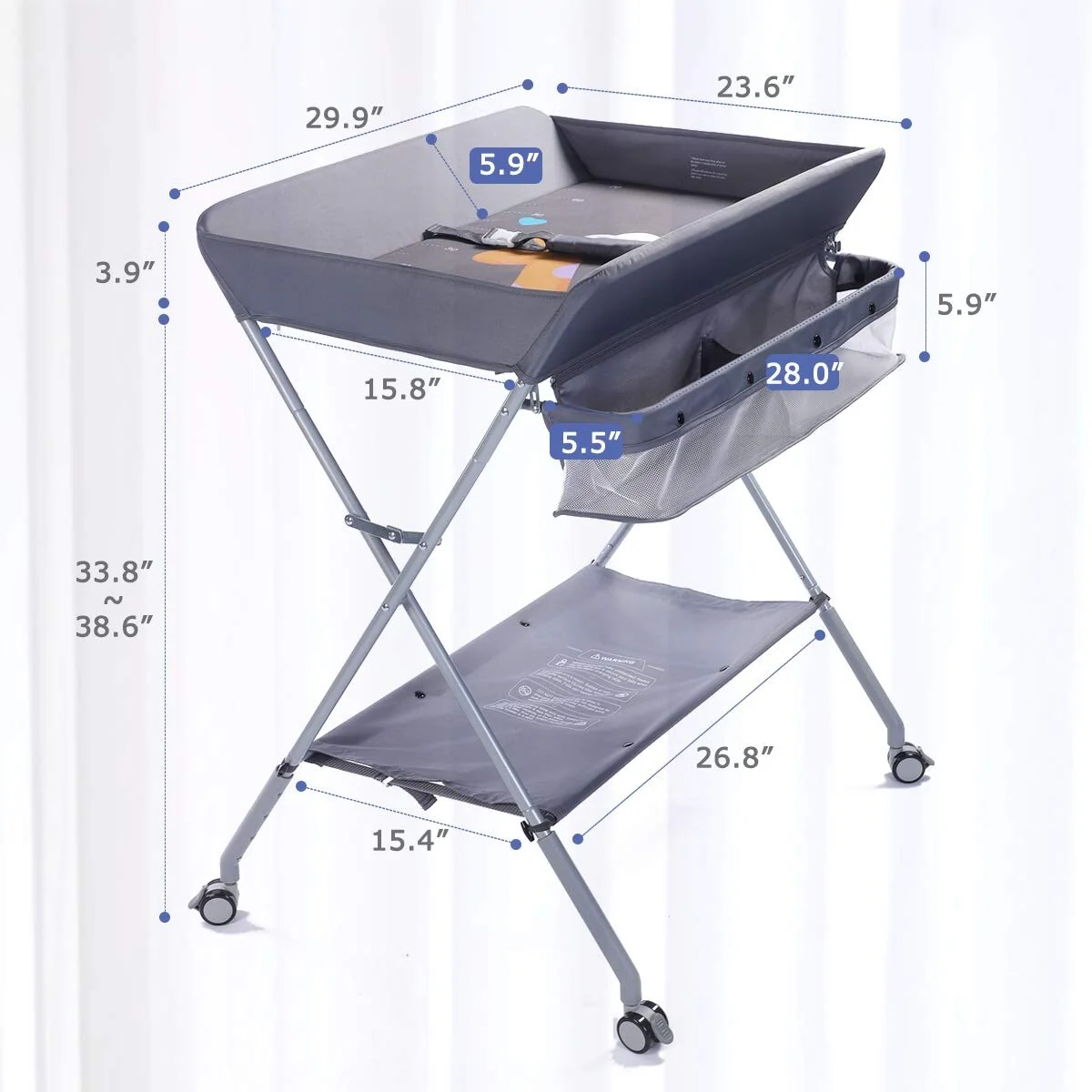 ❀[CERTIFICATION AND WARRANTY] - nursey changing table has proudly and honorably passed the strict CPC Certification to meet all safety standards set by ASTM, which means our changing station is absolutely qualified for every single detail from oxford fabric, iron frame, safety belt to lockable wheels and care warnings labels. The diaper table enjoys LIMITED TWO YEARS' WARRANTY TIME for fabric and frame. If you received damaged, please feel free to contact us to get replacement or refund See more product details