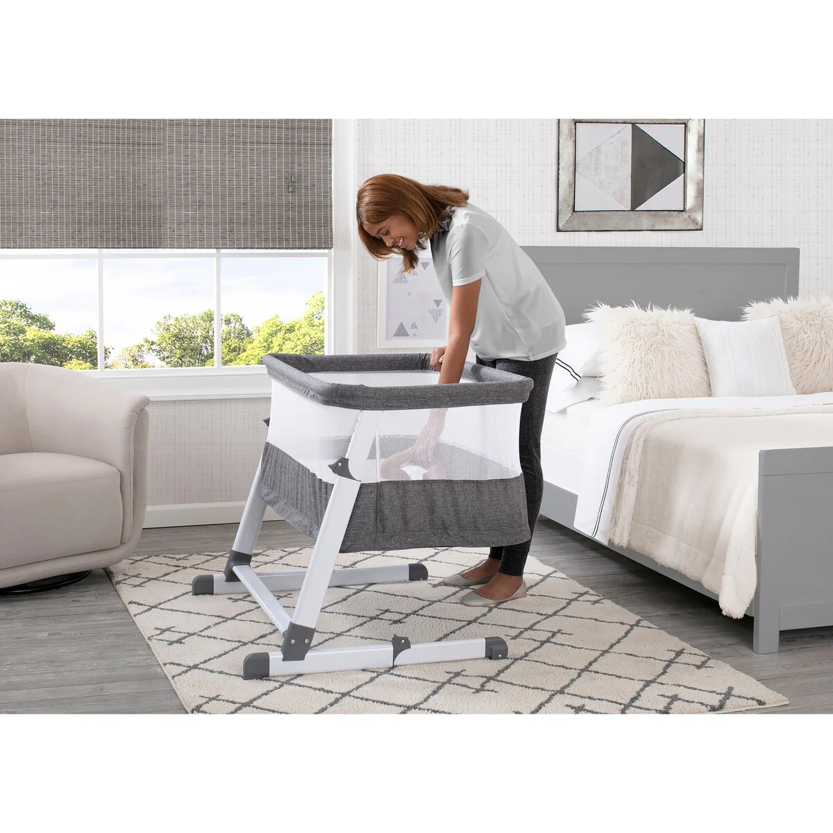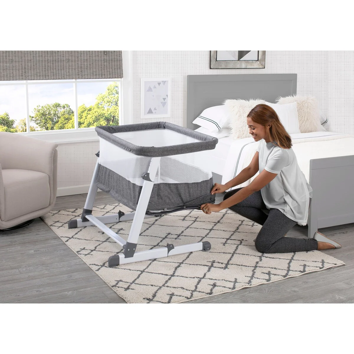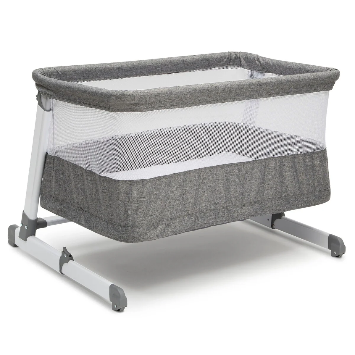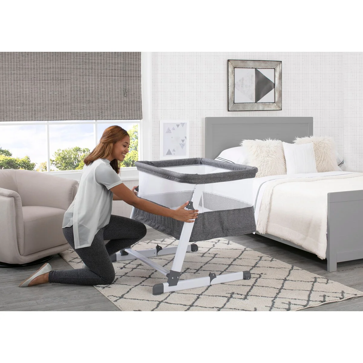 The Room2Grow Convertible Bassinet/Sleeper from Beautyrest® is there for your baby as they grow. Making it extremely easy and safe to room share with your little one from birth to 12 months, this newborn bassinet and infant sleeper combo features two stages that allow you to lower the unit as your baby matures. Use the bassinet mode for newborns (up to 15 lbs.) In the bassinet stage you can easily adjust the height so your baby is close by and within reach, which makes it easier than ever to soothe or feed your little one. For infants (up to 25 lbs.) use the sleeper mode. The sleeper mode allows you to lower the unit to the floor to ensure your growing baby has the safest sleep environment while still being near by. The included mattress pad offers a firm, comfortable surface to sleep on while mesh sides provide a clear view of Baby and help air circulate. A must-have for new parents, the Room2Grow Convertible Bassinet/Sleeper helps make the first year with your baby stress-free by providing a safe room-sharing option for your family. The removable mattress cover is machine washable for easy cleanup. 2-in-1 design features bassinet mode for newborns and sleeper mode for infantsBassinet mode holds up 15 lbs. (0-5 months); Sleeper mode holds up to 25 lbs. (0-12 months)Keep your baby close for a longer period of time thanks to this bassinet's stable frame that features adjustable height positions + a sleeper height that's on the floor to accommodate your growing childMesh sides provide a clear view of Baby and help air circulateIncluded mattress pad cover is waterproof and machine washableJPMA certified to meet or exceed all safety standards set by the CPSC & ASTMGive the gift of peace of mind, this bassinet and sleeper combo provides new parents a safe, separate sleep space for their babyAssembled dimensions (in inches): 24.8 (width) by 26.4 (height) by 35.4 (depth)Product weight (in pounds): 23.4Shipping dimensions (in inches): 4.7 (width) by 37.4 (height) by 26 (depth)Shipping weight (in pounds): 26.9