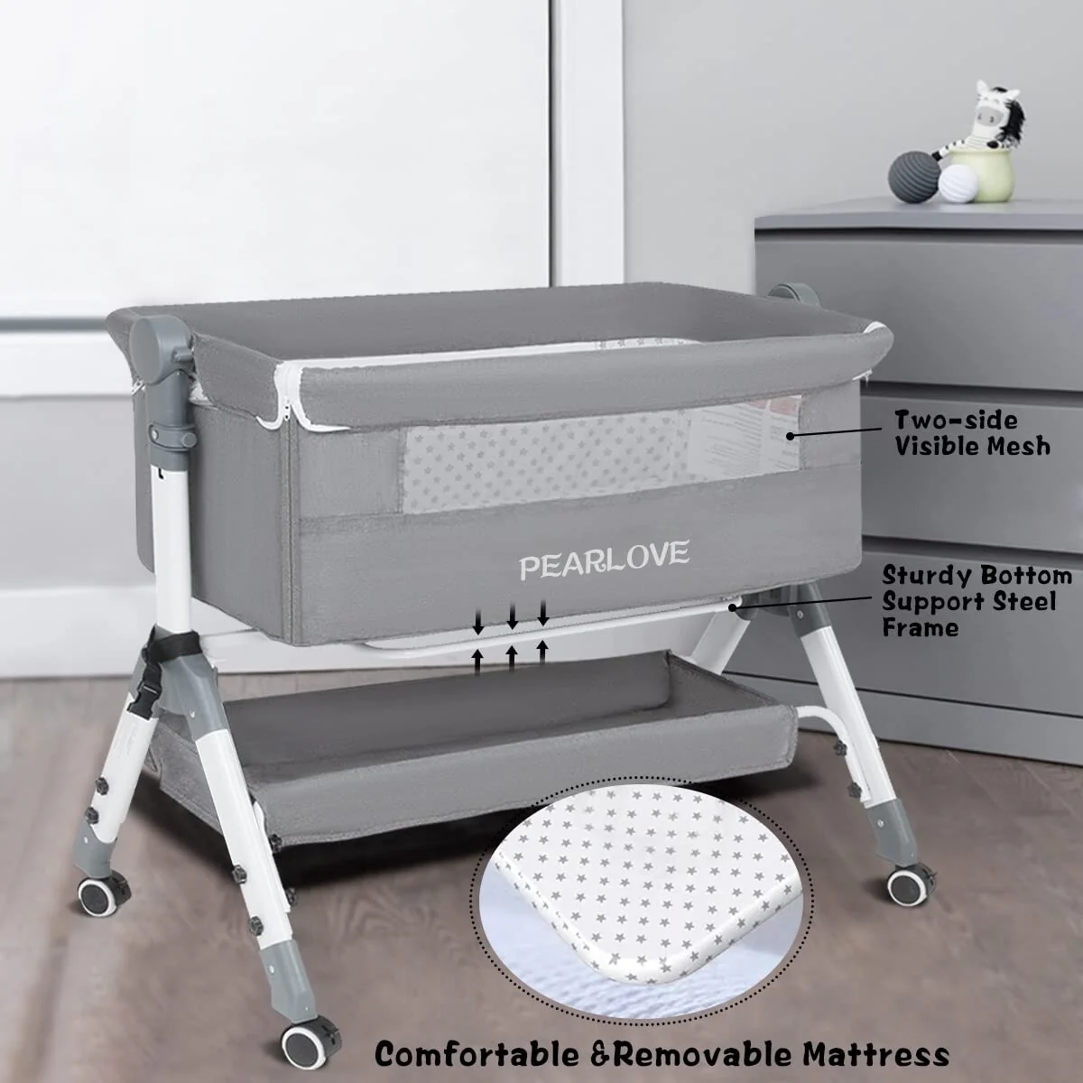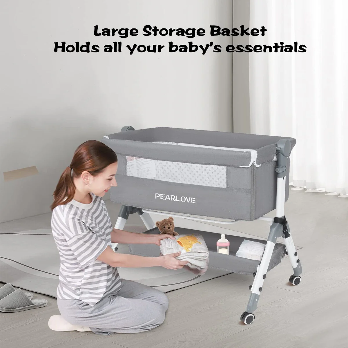 🍼 Skin-Friendly Material & Comfortable Mattress: The baby bedside crib is made of a premium durable metal frame and is lightweight and firm. Skin-friendly fabric and soft mattresses protect baby skin, allowing your baby to have a nice sleep. The large storage basket on the bottom is convenient for diapers, feeding supplies, toys, etc. Recommended for 0-6 months newborn babies or infants up to 33 lbs.