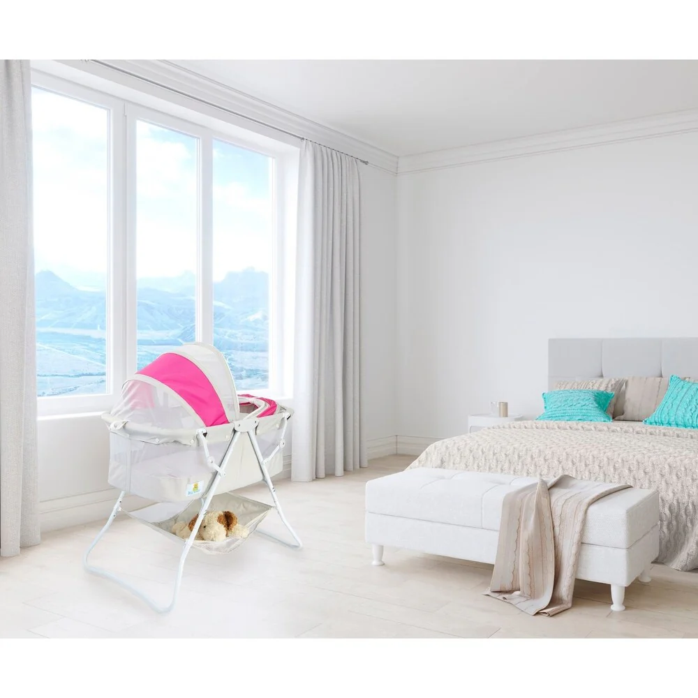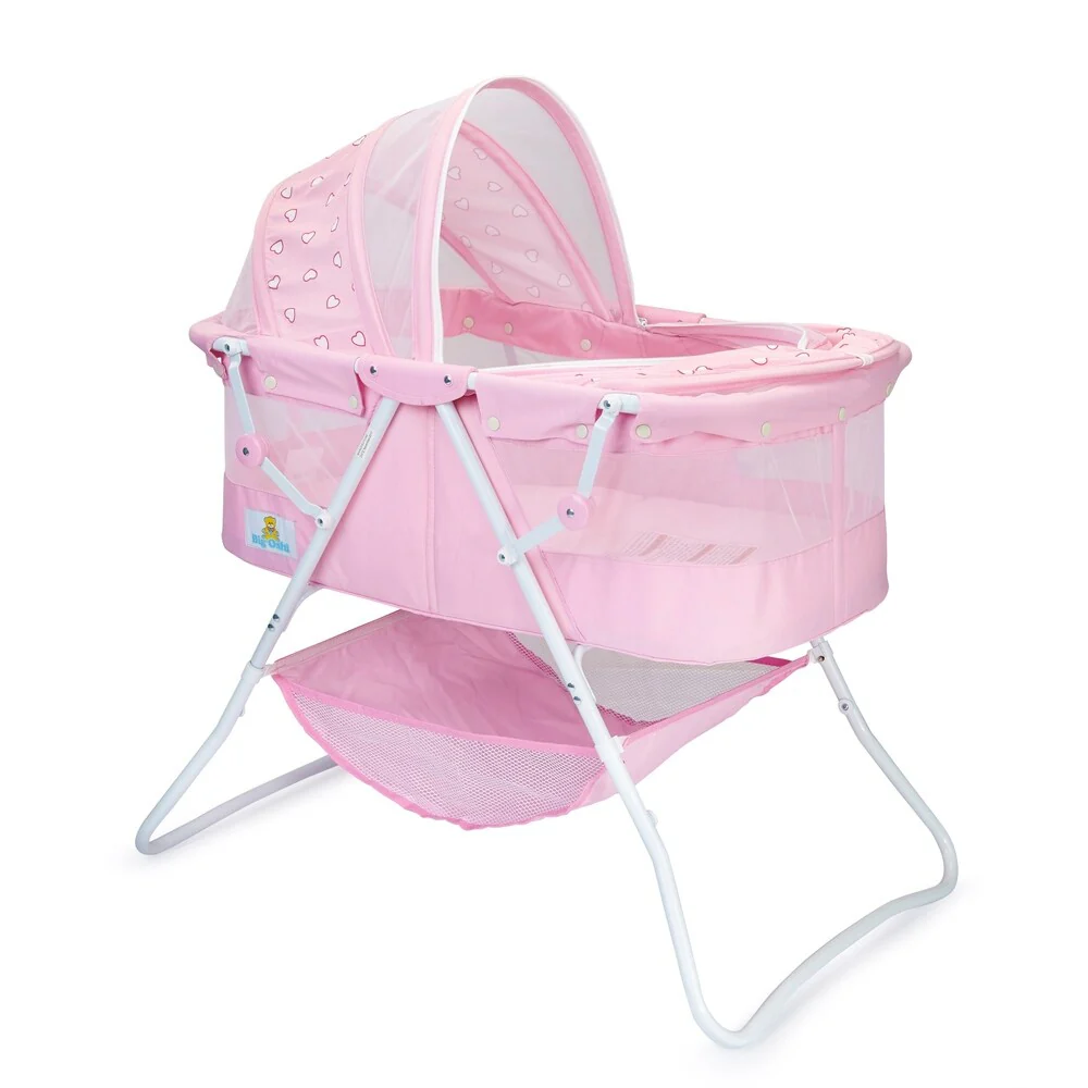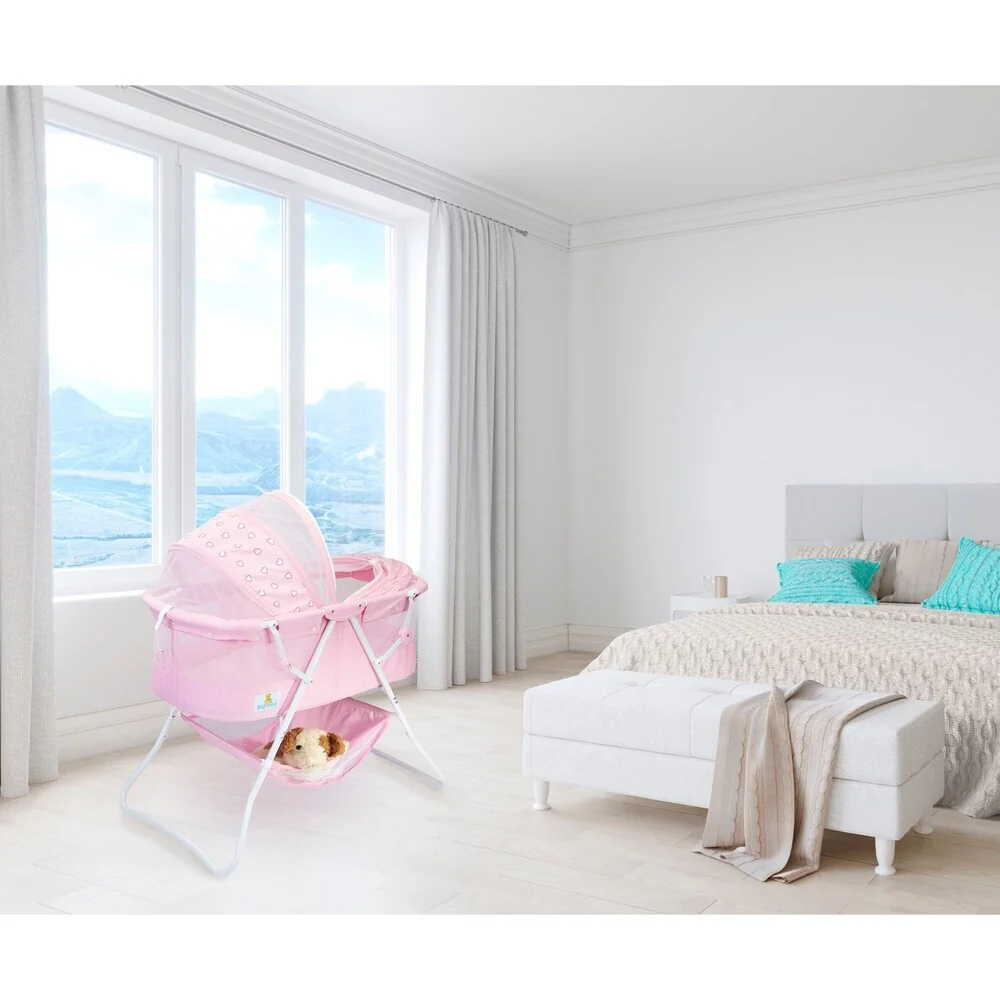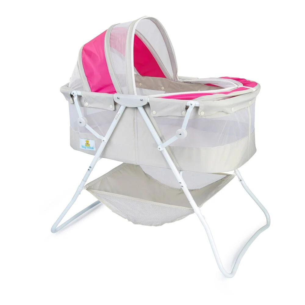 Big Oshi Emma Newborn Baby Bassinet - Portable Bassinet for Boys or Girls - Perfect for Bedside, Indoors, or Outdoors - Lightweight for Travel - Canopy Netting Cover - Wood Bed Base