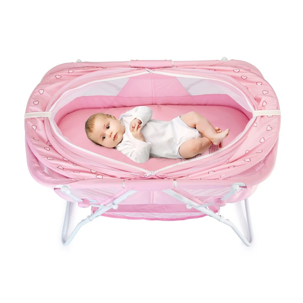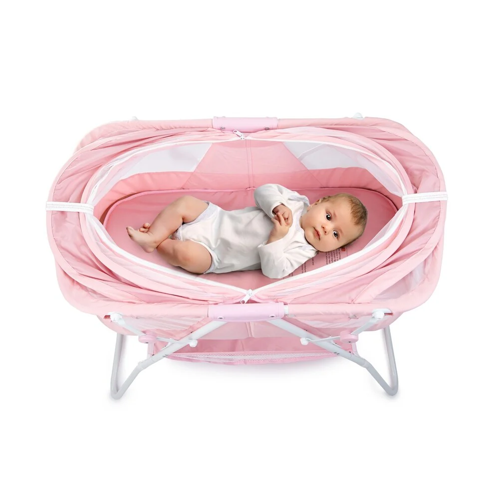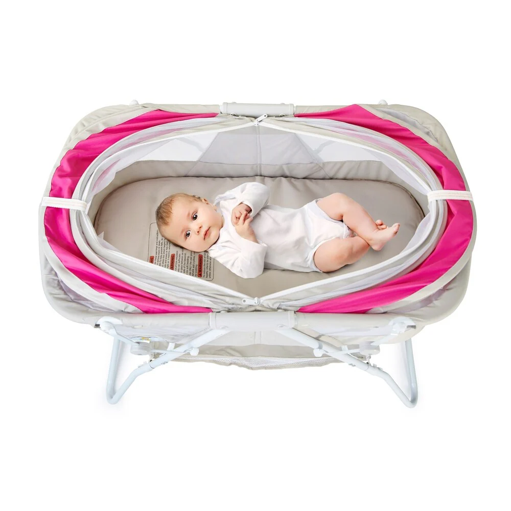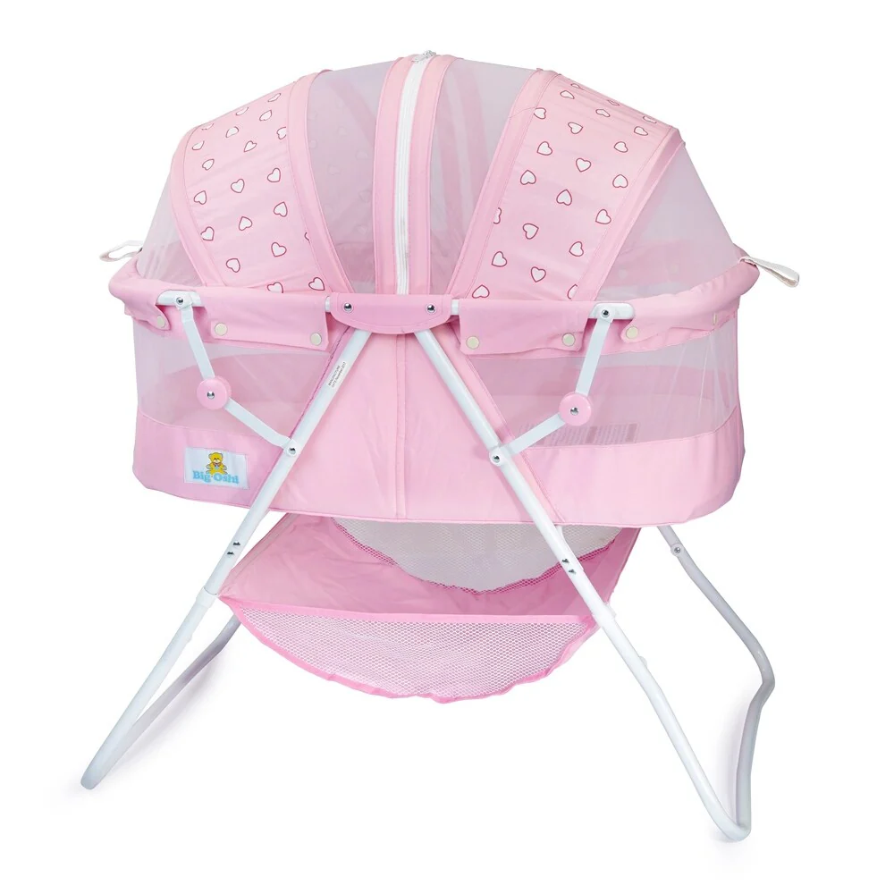 Big Oshi Emma Newborn Baby Bassinet - Portable Bassinet for Boys or Girls - Perfect for Bedside, Indoors, or Outdoors - Lightweight for Travel - Canopy Netting Cover - Wood Bed Base