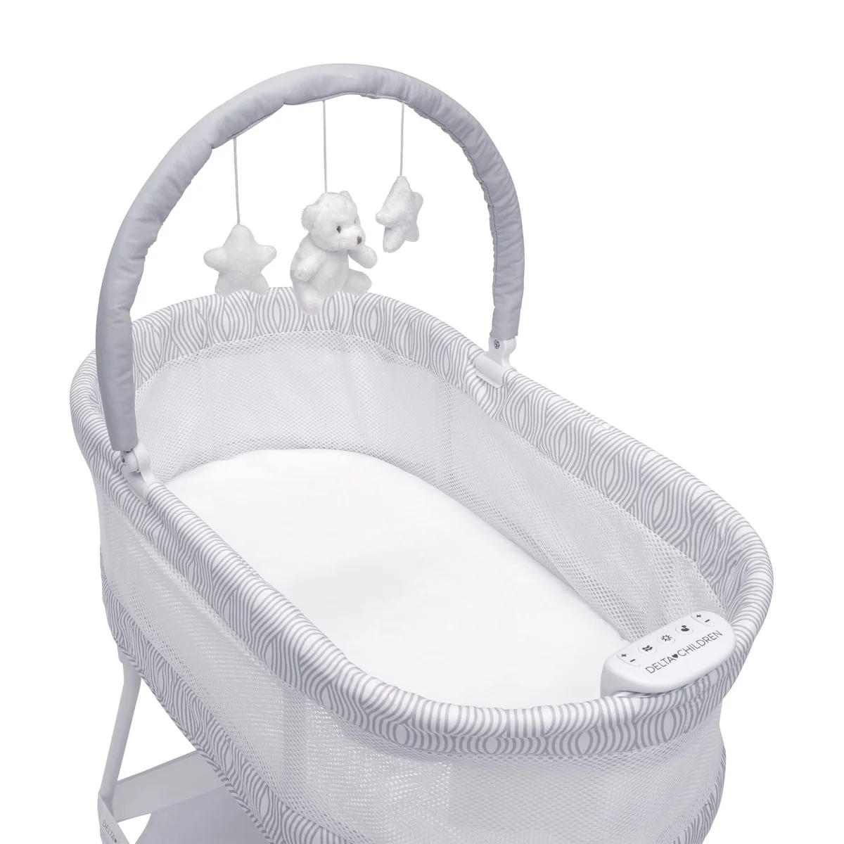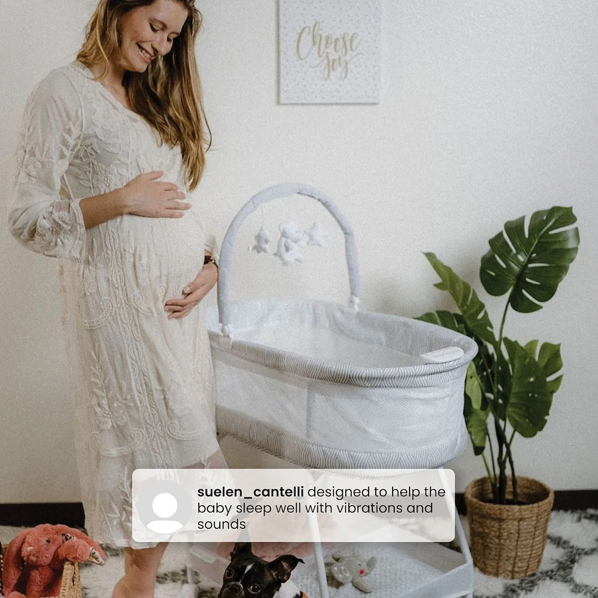 SOUNDS, VIBRATION & NIGHTLIGHT: Front control panel turns on soft vibrations, plays calming music and sounds, plus features a soft glow nightlight | Requires 4 AA batteries (not included)