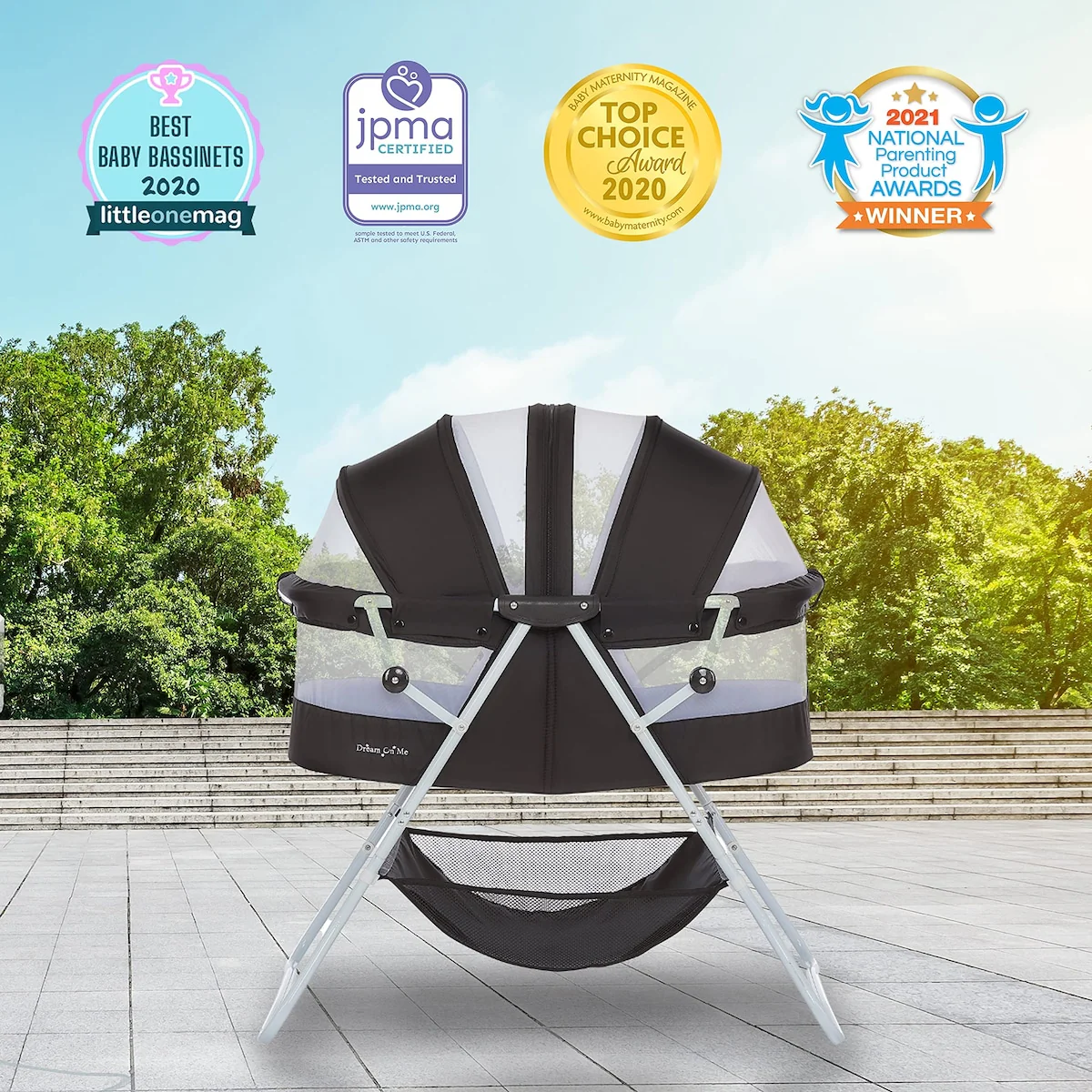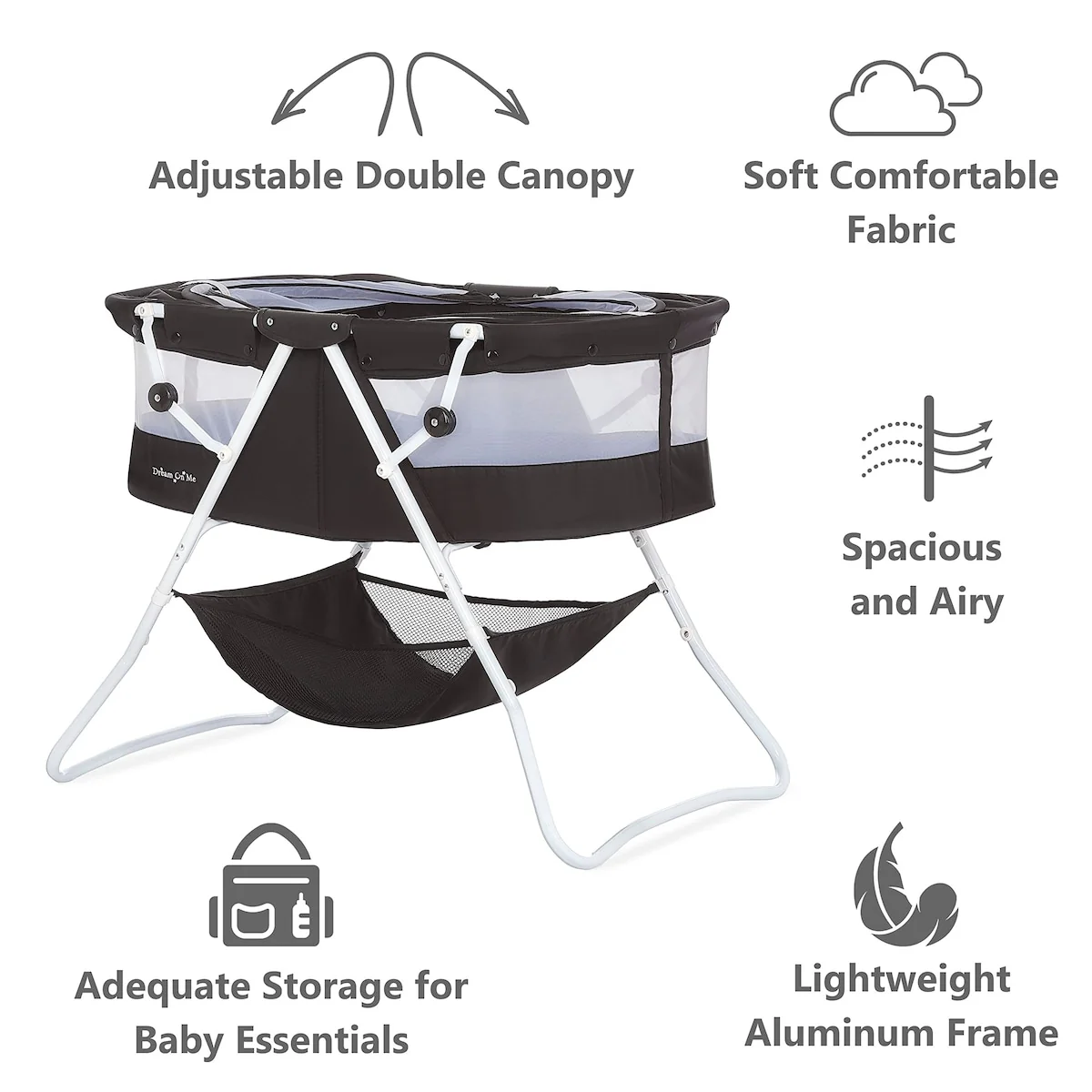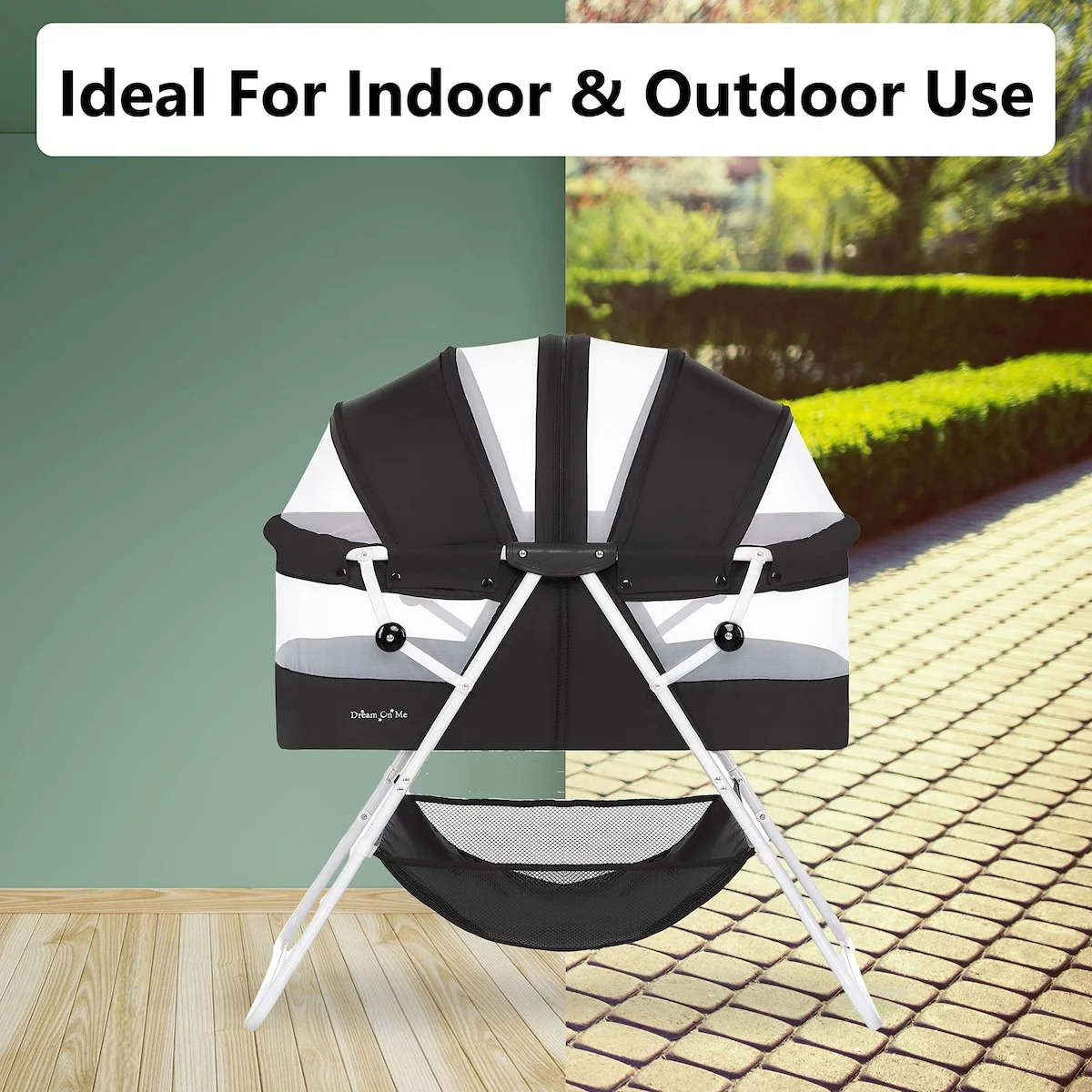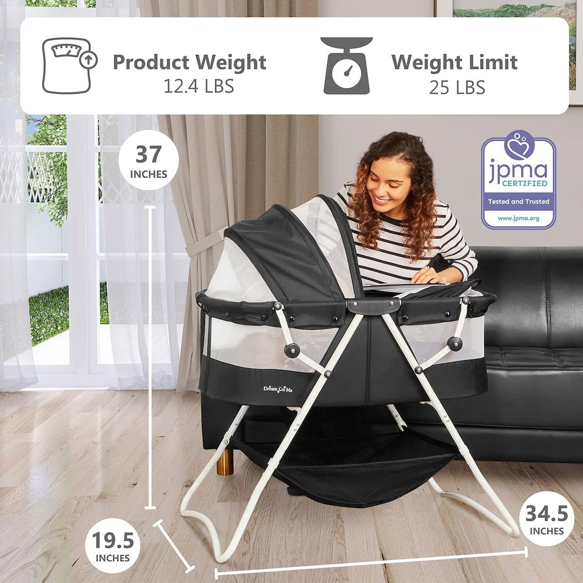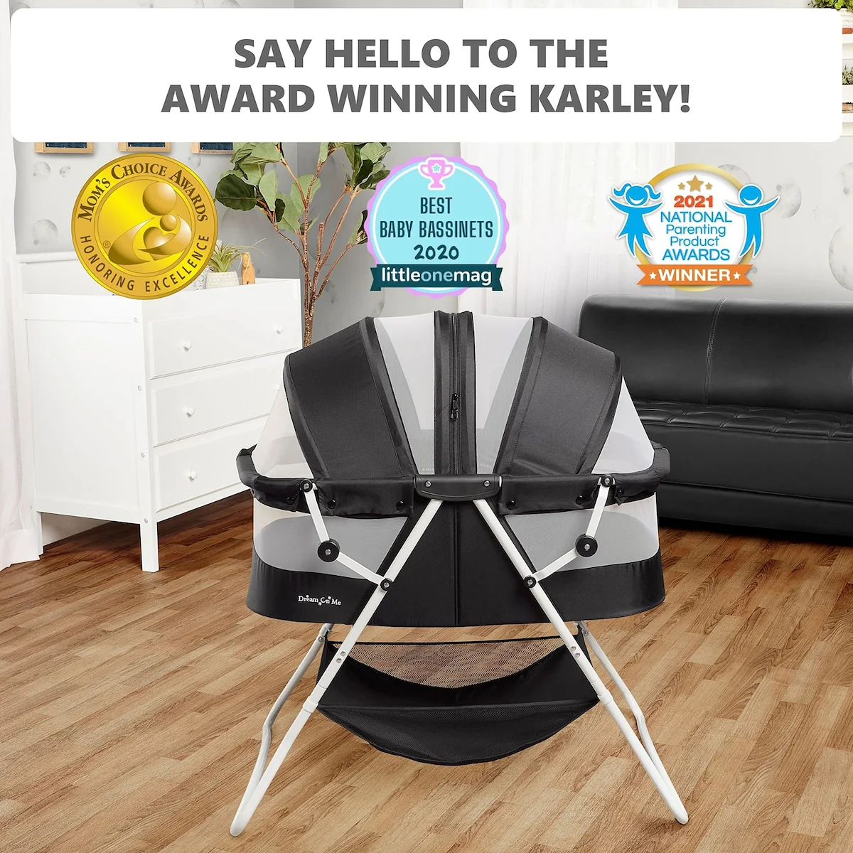 LIGHT and VERSATILE:The Karley Bassinet is designed with a lightweight aluminum frame that allows you to move it easily from room to room. It comes with a no-tool assembly and quick-folding mechanism. Use it indoors and carry it outdoors without any hassle