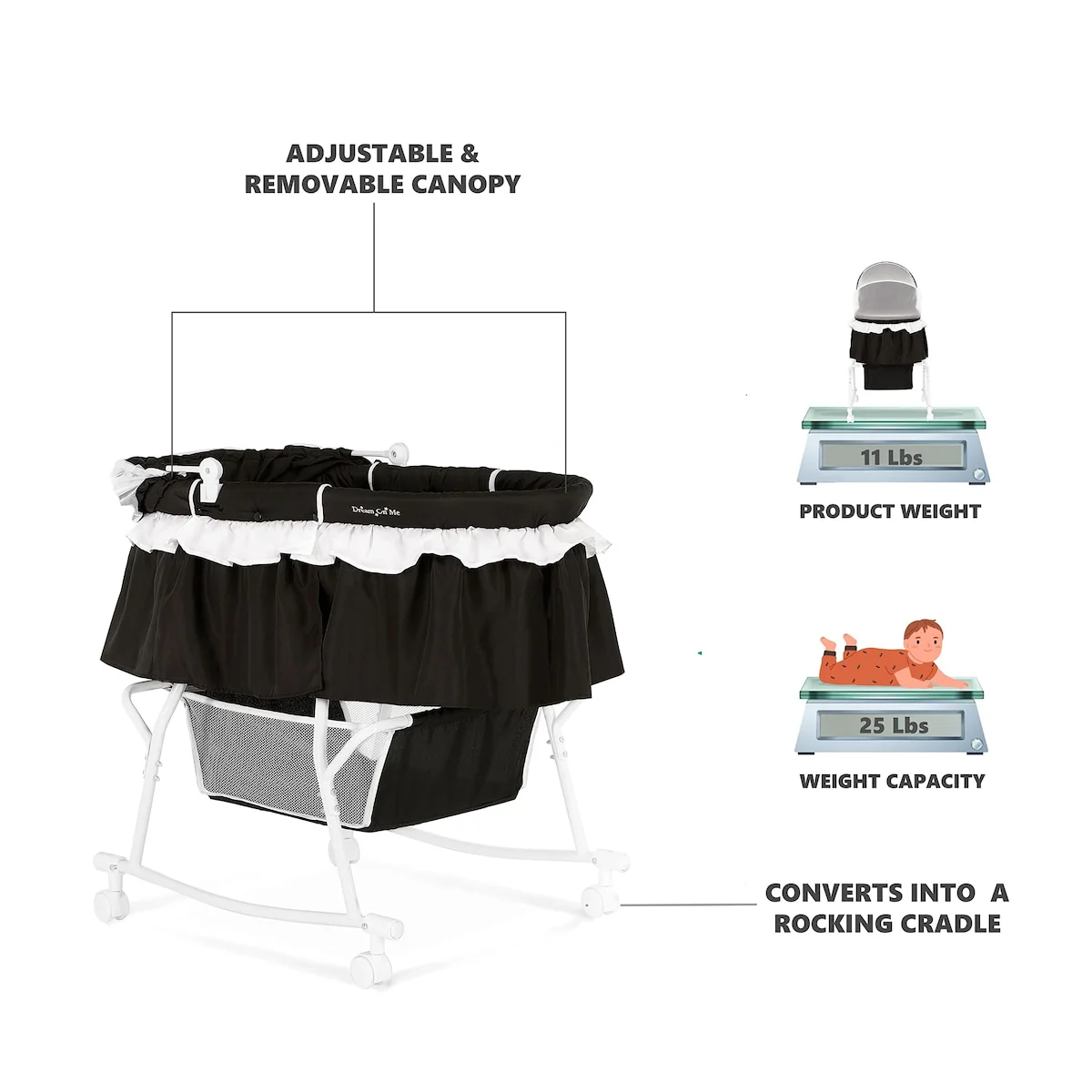 DUAL USE: Spacious and roomy, the Lacy is the ideal bassinet for your new born. And when LO needs soothing, rotate its wheels upwards to convert the Lacy into a rocking cradle. Use from birth till 25 lbs/until baby can push-up/roll over unassisted