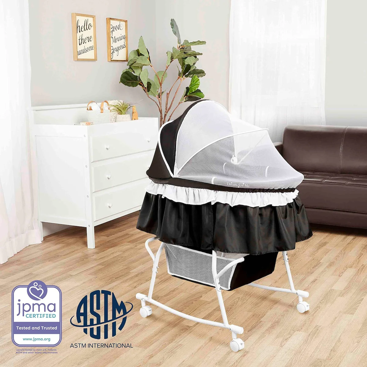 FUNCTIONAL FEATURES: The handy storage basket below the bassinet allows you to keep baby essentials at hand. The Lacy features a multipurpose full canopy that is part mesh part fabric and also helps keeps bugs and insects at bay
